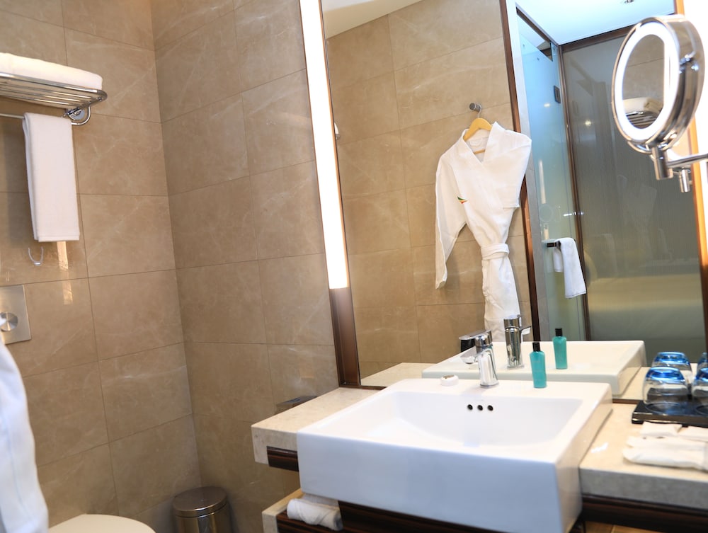 Very impressive property until you dig beyond appearance. Spent 6 hours there during. a long layover in Addis Ababa airport. New and shiny but with some basic problems in our room. To begin, the large TV would not show any programs or movies. Then tried to shower and found NO HOT WATER. Sucked it up and showered but then found NO HAIR DRYER! Started to shave but found the SINK DID NOT DRAIN!