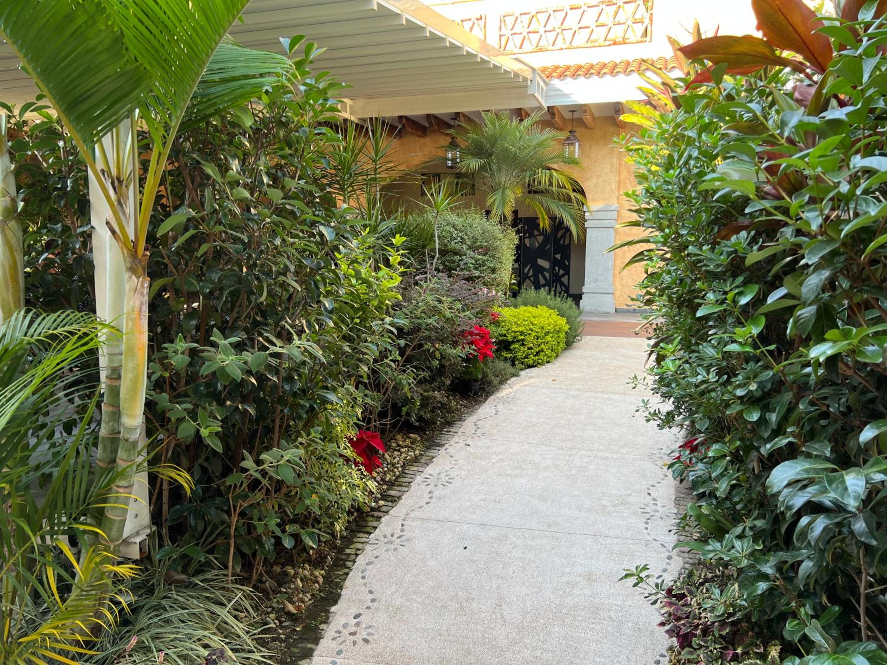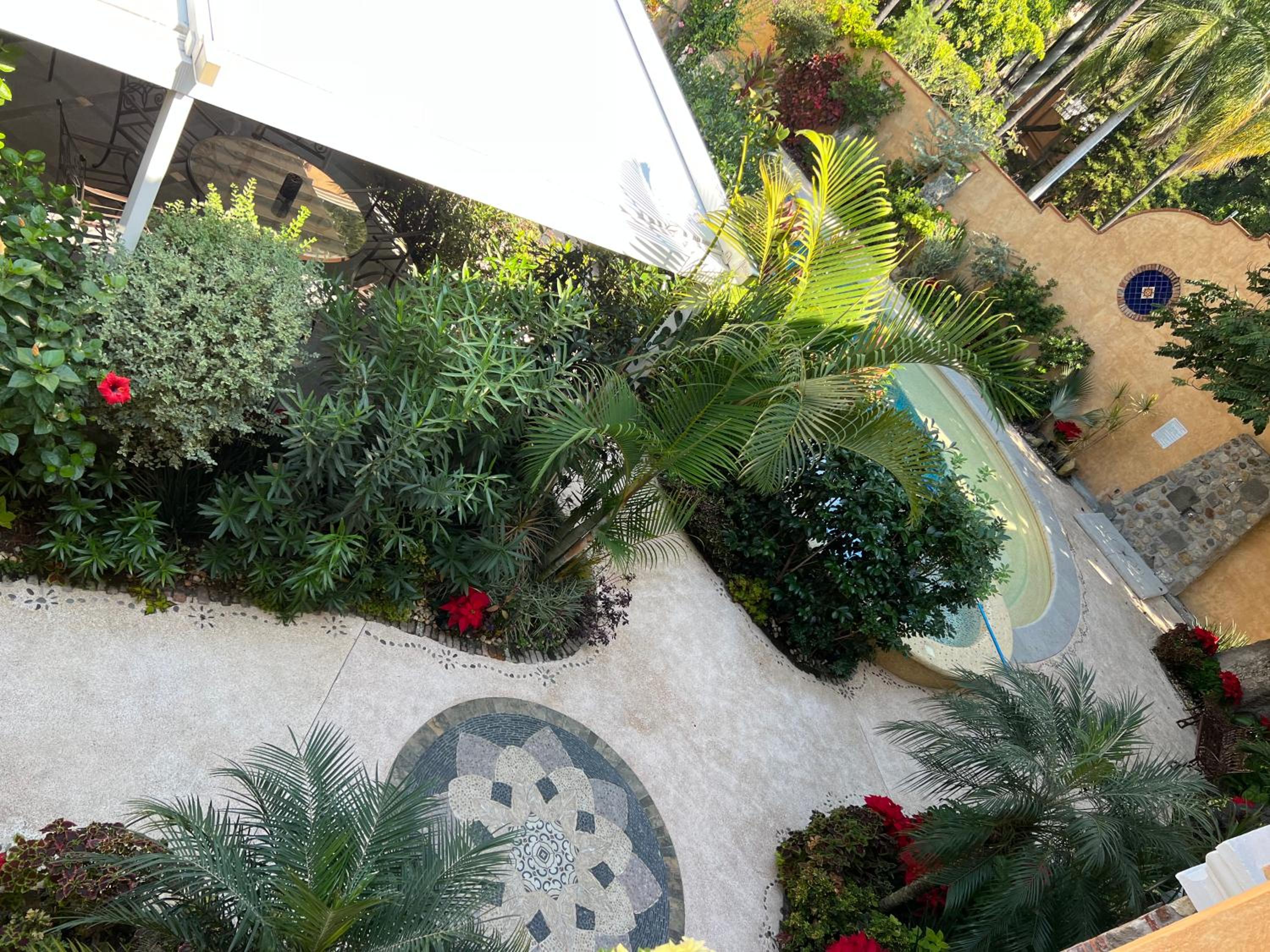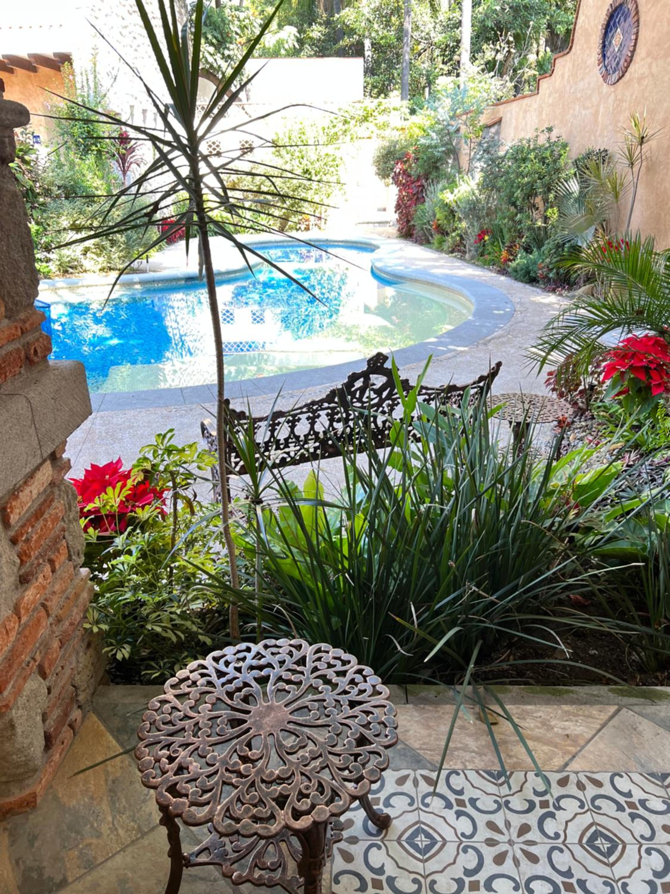 alberca climatizada, jardines, habitación limpia, personal muy atento en todo momento,