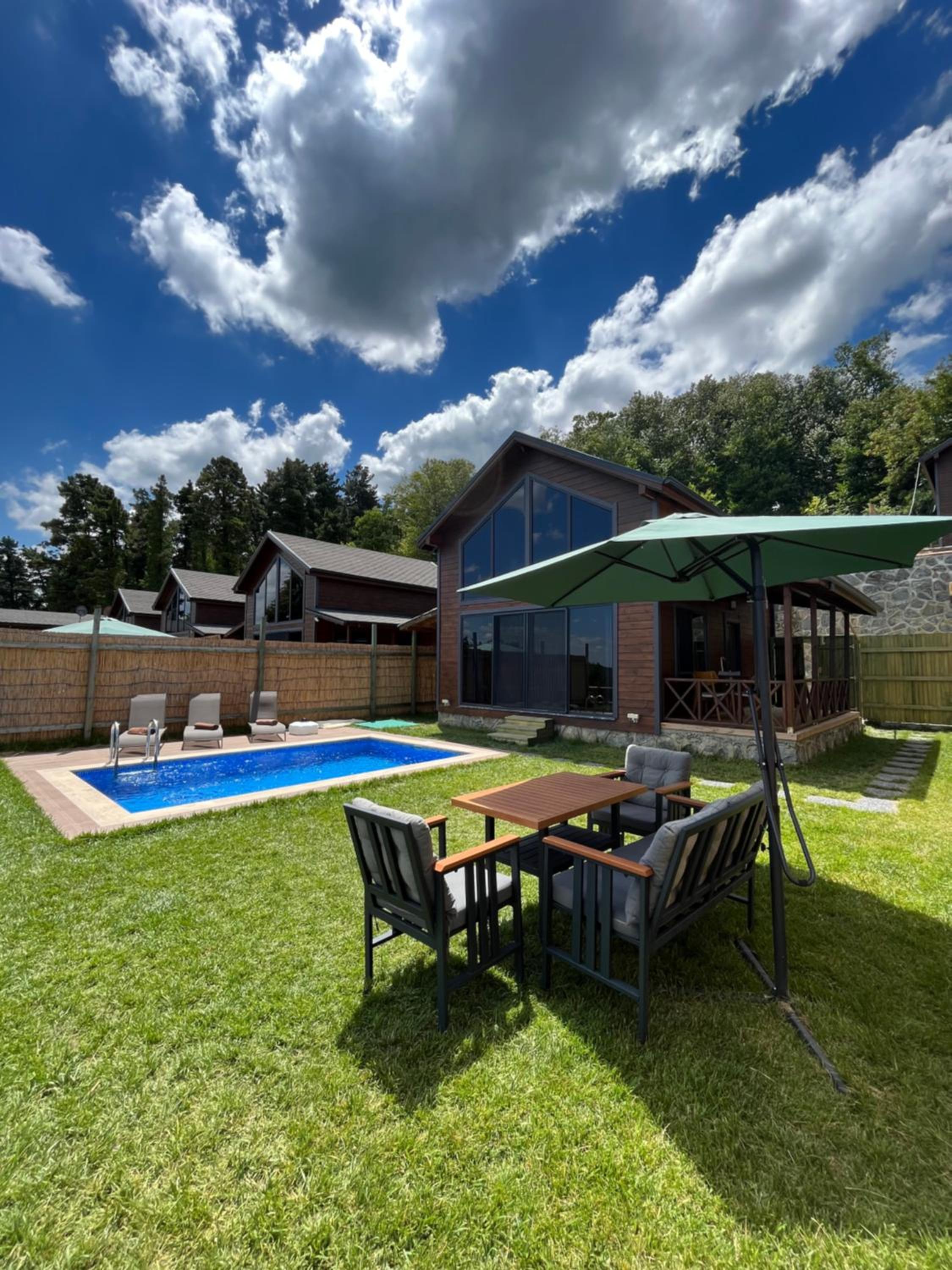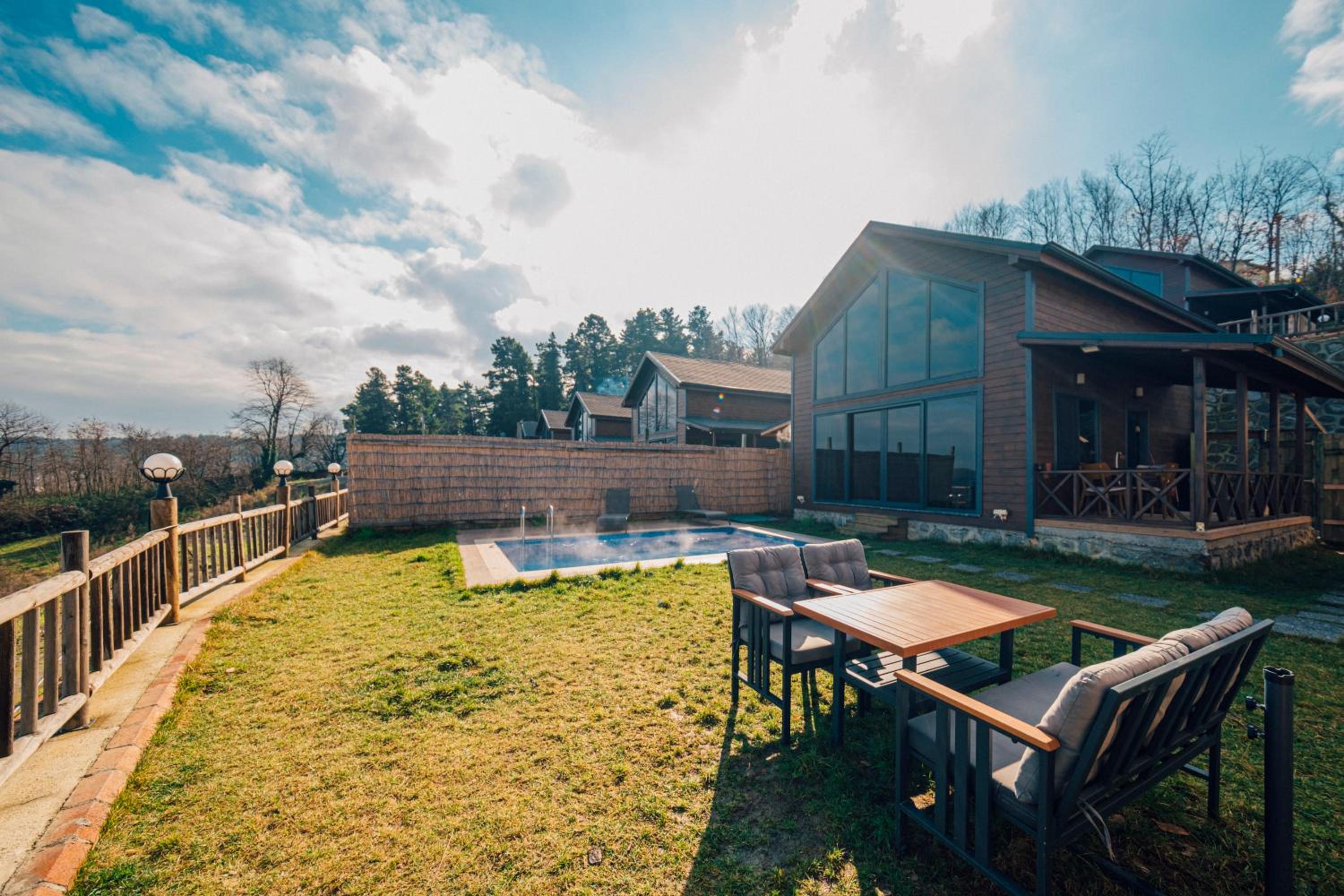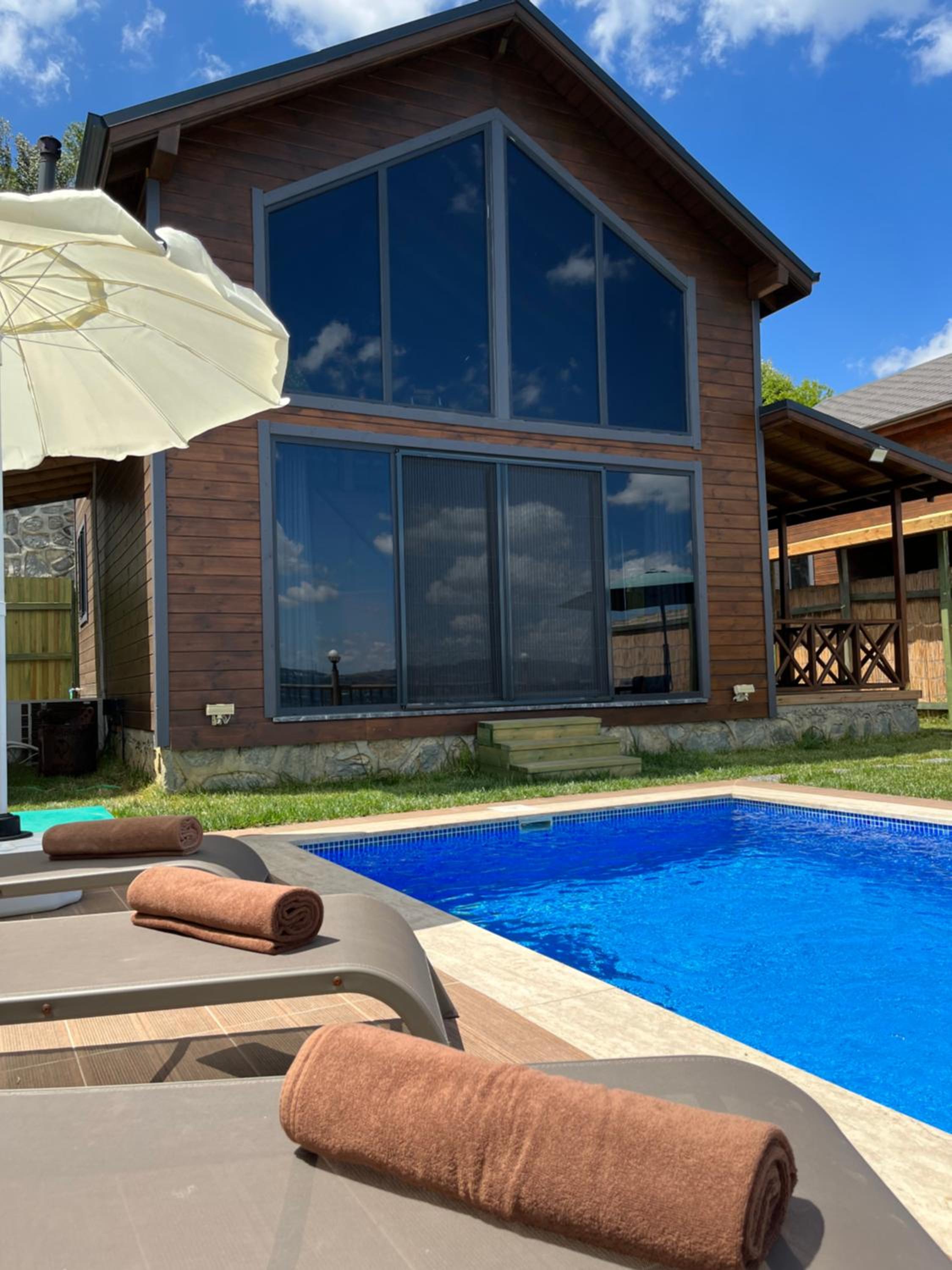 وصلنا إلى الموقع وكان الكوخ نظيف ومرتب، الغرفتين وصالة الجلوس على نظافة. المسبح يوجد فيه نظام تدفئة يصل حرارته إلى 25-26 درجة مئوية. الجلسة الخارجية كانت جداً جميلة. استمتعنا في الاستجمام والاستراحة في هذا الكوخ لمدة 3 ايام. الزيارة لهذا المكان كانت مستحقة بجدارة. من الضروري أن تكون لديك سيارة أو وسيلة تنقل خاصة بحيث أن الموقع يبعد قليلاً من كل شيء. يوجد افطار كانوا يحضرونه يومياً الساعة 9:30 صباحاً ويقومون باستلامه الساعة 12:00 ظهراً