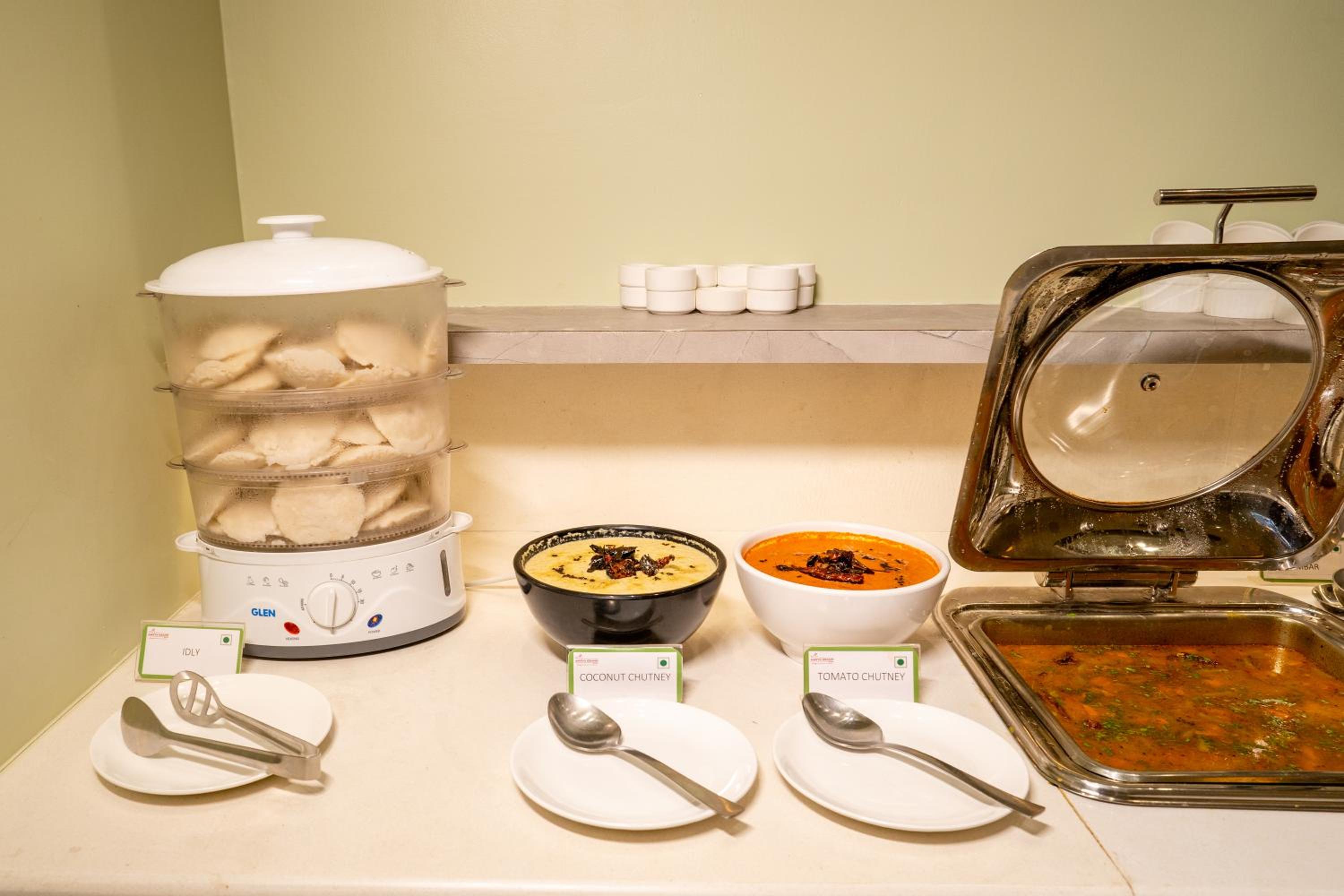 Dirty tea kettle with tea mugs. No bell boy to help with luggage. Even the staff at reception didn't help with the opening of the door while pulling our luggage. No hand towels in bathroom. In house restaurant inadequate to handle more than 2 guests. Delay of 1 hour to serve dinner. Also inspite of taking order for vegetarian meals, was served non vegetarian order of other guest to us. Hot and sour soup was made in a rush with excess spices, making it unpalatable. On bringing to their notice, they didn't charge us for the same.