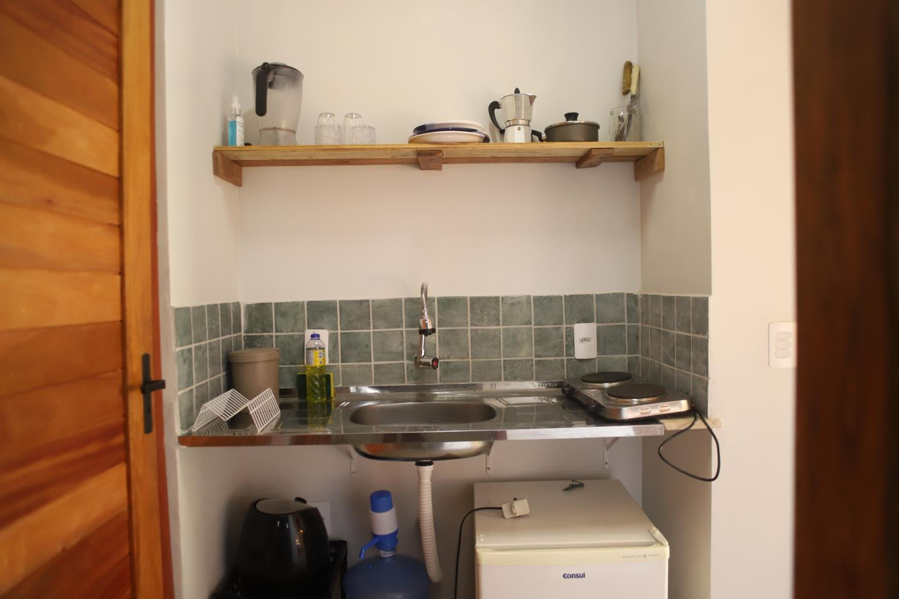 Embora tudo seja muito bom na pousada tenho 3 sugestões: Coloca um ar-condicionado na cozinha, pois lá tem uma cama extra que não recebe o gelo do ar existente no quarto principal. No quarto principal colocar edredons e o chuveiro do banheiro não é bom. Agua fria e espalhada. Mas a pousada é tão boa que isso se torna até irrelevante. É só sugestão de melhoria, afinal sempre podemos melhorar.