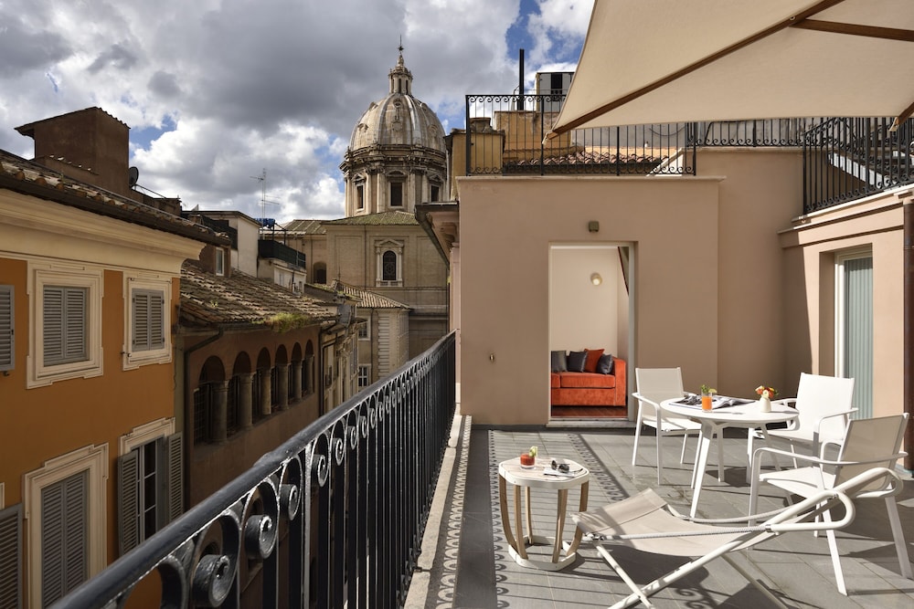 A wonderful hotel in the heart of Rome. We walked everywhere. Delicious morning breakfast served on the roof in the morning and wonderful cocktail bar up there at night. I would stay here again.