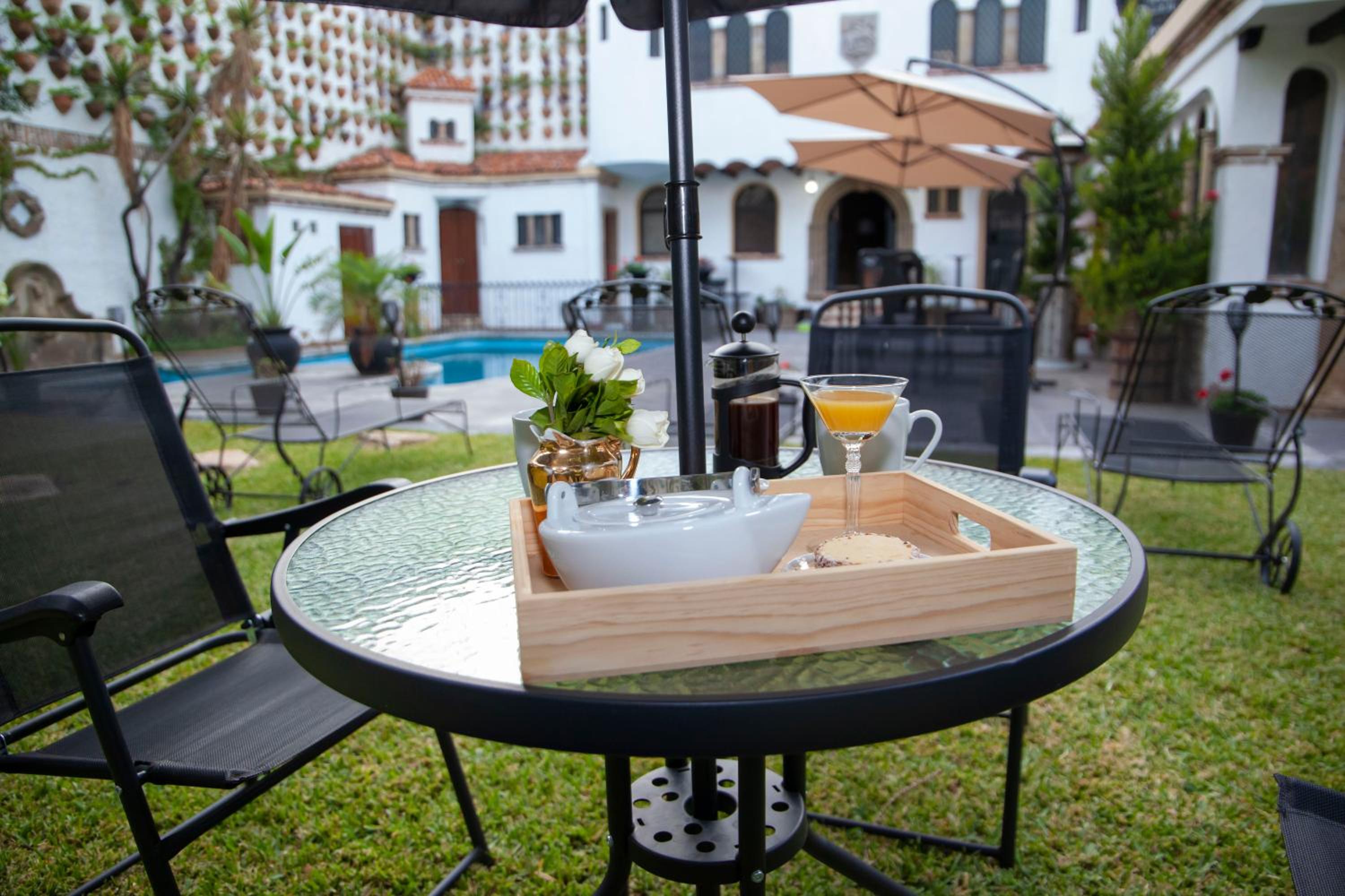 Outdoor Swimming Pool and Terrace: Hotel Boutique La Mansión Guadalajara boasts an inviting outdoor swimming pool, perfect for a relaxing dip under the sun. Unwind on the terrace surrounded by lush gardens, offering a tranquil escape from the bustling city.