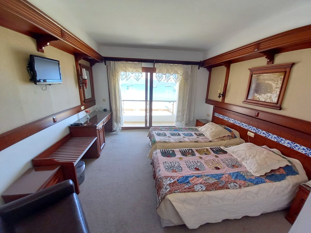 Konumundan dolayı 2 günlük tatilimizde seçmiştik ancak tam bir hayal kırıklığı yaşadık. Otel merkezi konumda ancak otoparkı veya anlaşmalı bir yeri yok telefonla arayıp aracı ne yapabiliriz dediğinizde ilgisiz şekilde ücretli otoparka bırakıp yürüyerek gelmemizi söylediler. Bodrumda en uygun bulabileceğiniz otopark ücreti 700 liradan başlıyor. Kendi imkanlarımızla bir şekilde ulaştığımızda da ilgisiz ve kaba bir tavırla karşılaştık. Nostaljik dekorasyonunu fotoğraflardan sevmiştik ancak herşey bir süre sonra kaşıntı yapmaya başladı. Ayrıca odası barlar sokağına baktığı için sürekli aydınlık ve inanılmaz bir gürültüsü vardı. Denize sıfır olmasına rağmen kendine ait bir beach bulunmuyor. Kahvaltısı açık büfe ama çok çeşit beklemeyin. Yine de tüm olumsuzluklara rağmen idare eder bir kahvaltıydı. Bir daha asla gitmeyi düşünmüyoruz, kimseye de tavsiye edemiyoruz.