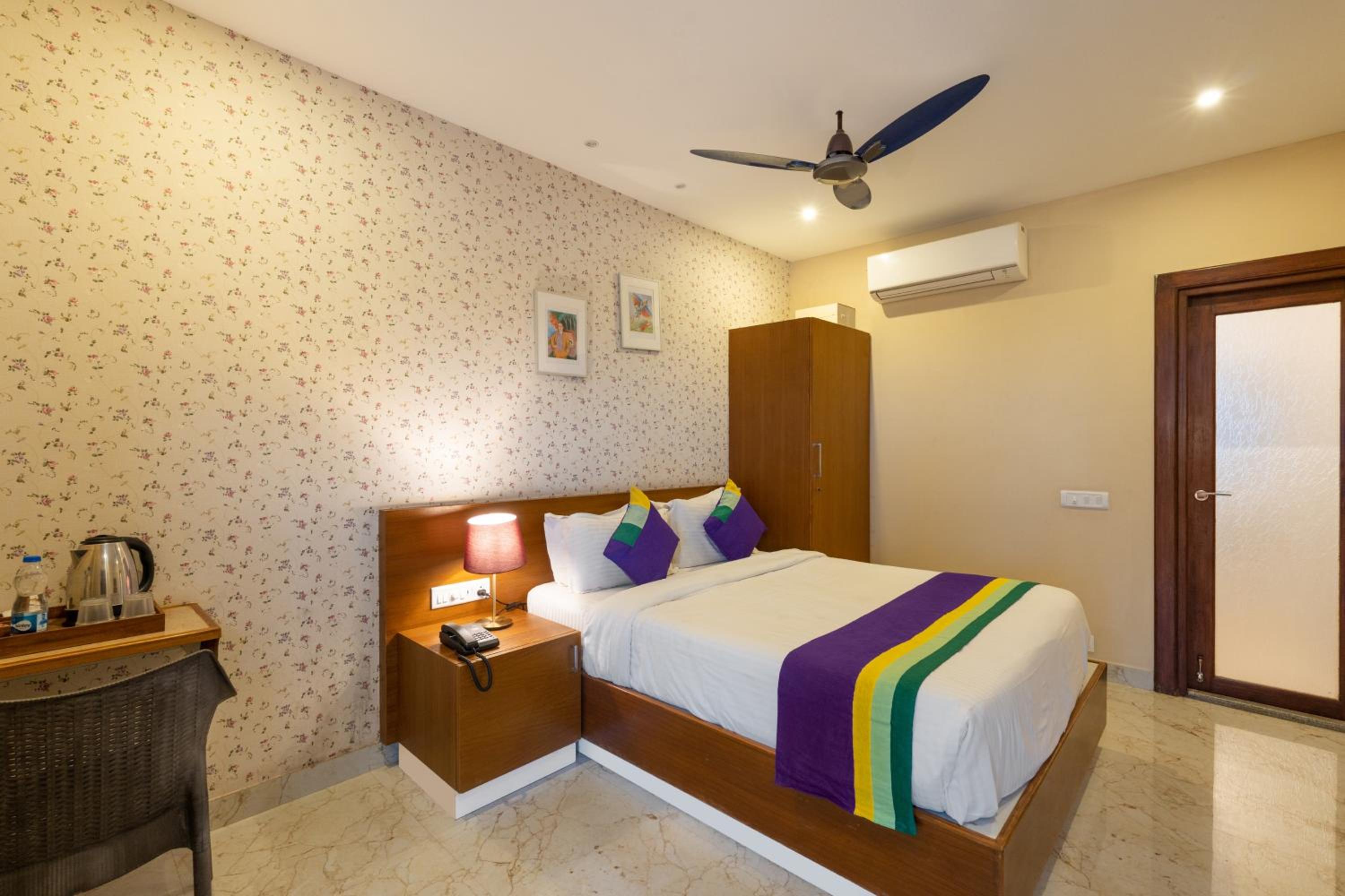 Simple but clean and pleasant guest house. During mid-week in February, the guest house was quite empty of guests, and therefore quiet. It is isolated, but the staff at the front desk quickly found me a motor scooter rental. So ALL places I wished to visit were within a several minute scooter trip. There is no restaurant here, but a lovely Indian-style breakfast was served to my room each morning on a tray. Very satisfying.