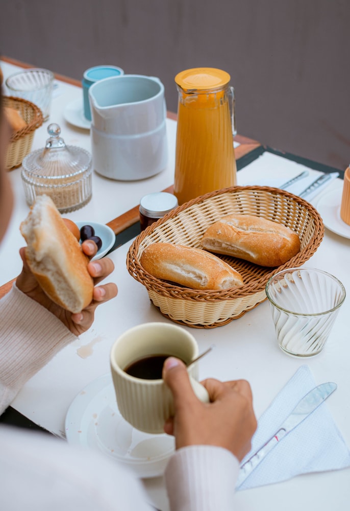 Café da manhã... uma vergonha: 2 pães (velhos e duros) e 1 bola de manteiga. Zero proteína. Tive que ir a uma cafeteira comprar um desayno decente.