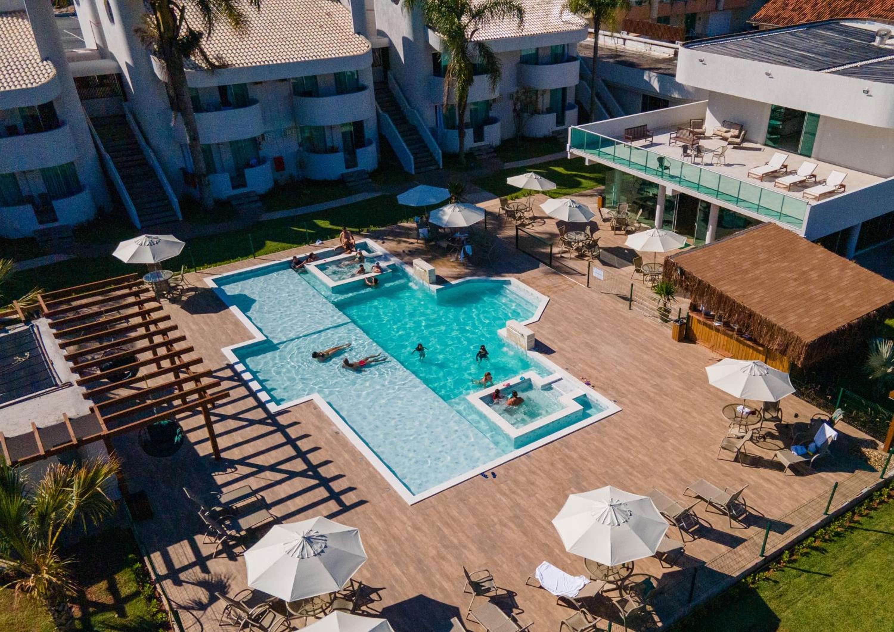 Primeiro que não é exatamente um Resort. Houve falta de água em dois dias do período da hospedagem, com demora para restabelecerem. Isso é um absurdo. No café da manhã, não há preparo de nenhum alimento na hora. Logo, sem chances de conseguir um omelete, ovo frito, tapioca ou qualquer outra comida, mesmo que a cozinha esteja totalmente ociosa. Pela quantidade de hóspedes, isso é um absurdo, porque fica nítido que, após servido o café, não há muito o que fazer, além de abastecer frutas. O ovo mexido é ruim. Pedimos pra fritarem ovo na hora e mesmo não havendo duas senhoras na cozinha, sem nada para fazerem, recusaram-se a fritar sob a alegação de que era norma do hotel. O garçom até foi bem solícito e, muito constrangido, tentou explicar que não poderiam nos atender. Foi a primeira vez que vi a ausência desse serviço num “Resort”. O local é pequeno. Não há área verde, apenas um pequeno gramado, nem quadras. Não vi academia. O valor cobrado pela diária não corresponde a um serviço com tantas falhas.