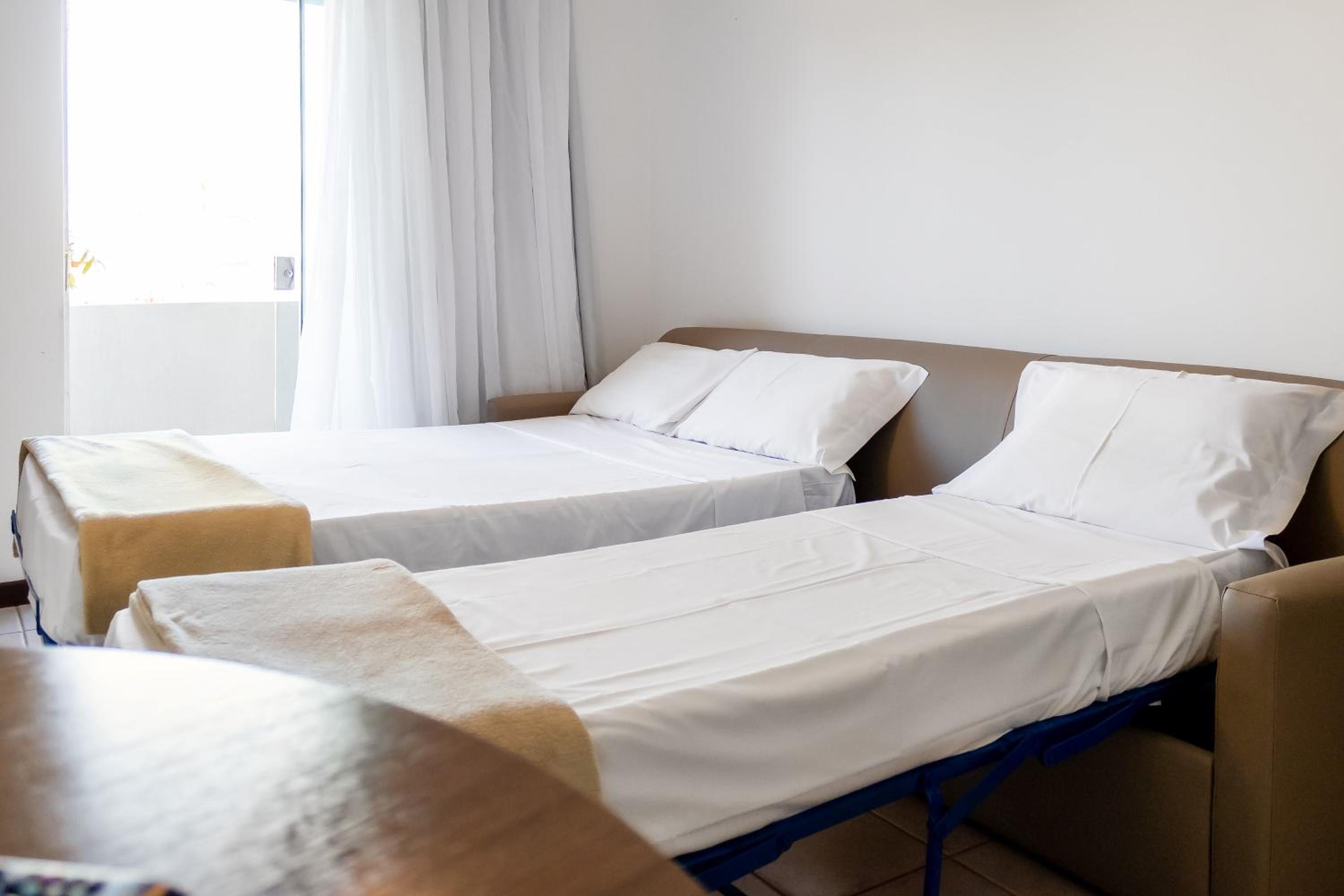 As unidades precisariam de uma atualização com sistema de ar condicionado split na sala e no quarto e tv também no quarto. Falta ducha higiênica no banheiro. Houve alguns problemas com queda do fluxo de água nos chuveiros mas foi resolvido pela recepção.