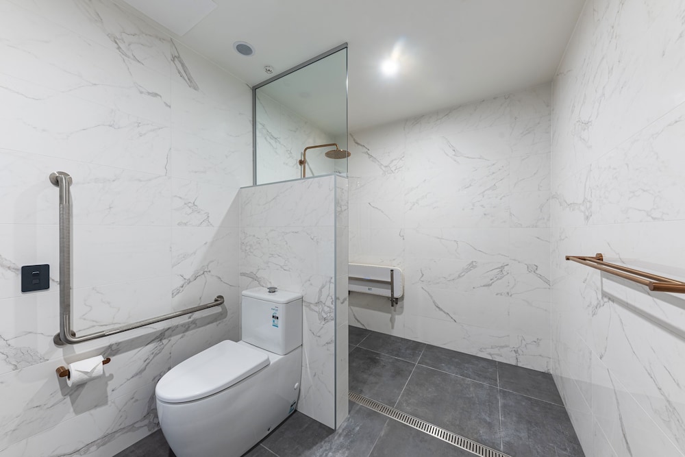 The hotel is modern and sleek designed with spacious room and bathroom, kitchen utensils and pots are a bit worn, the breakfast is really good with a wide range of choices, the only thing that annoys is there is no YouTube.