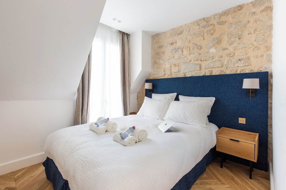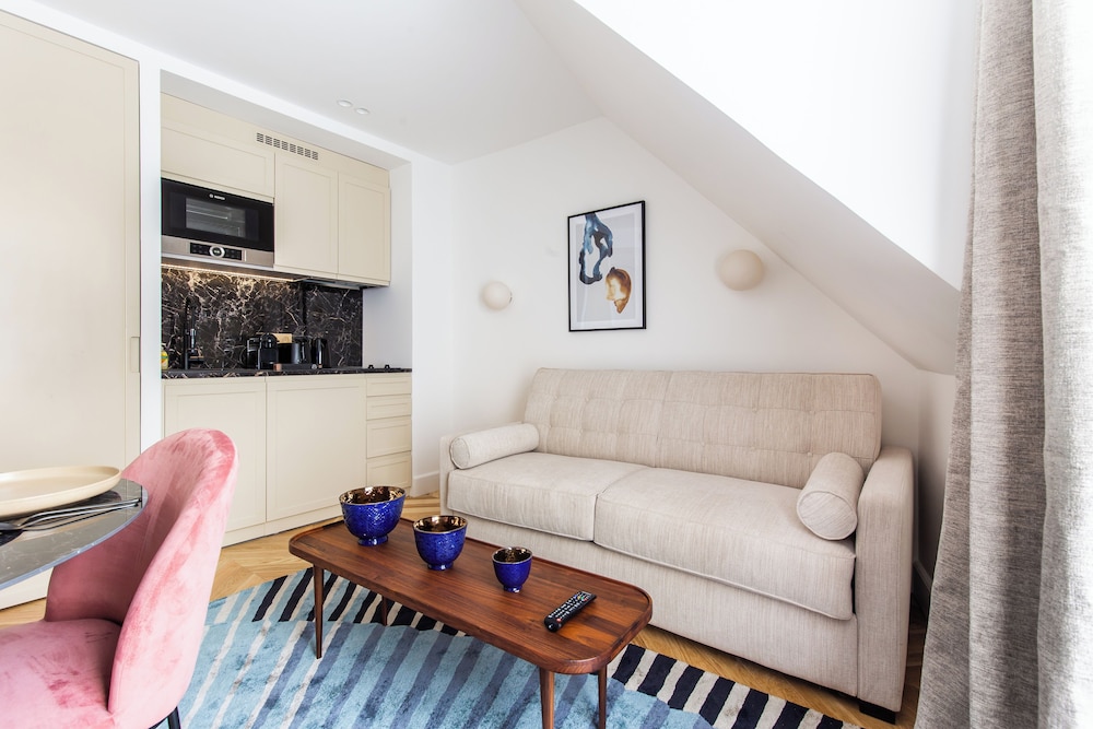 This met all our expectations. The neighborhood is adorable and quintessentially Parisian. The staff was very nice and helpful. The apartment was cozy but quiet, clean, comfortable and had all that we needed. Including great AC, and a sweet view. I actually loved the pillow in particular - best hotel pillow ever! My teens liked having their own beds - one in the second bedroom and one on the pullout couch. There are multiple restaurants right outside the hotel door, on the courtyard. A bakery is steps away, and the St. George’s metro is close too. Highly recommend this fantastic hotel if you’re taking your family to Paris!