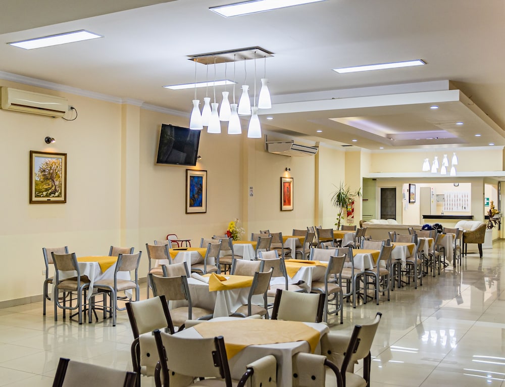Hotel bom para quem esta de passagem com garagem. Café da manhã razoável. Não tem restaurante e muito barulho, quando passam no corredor!