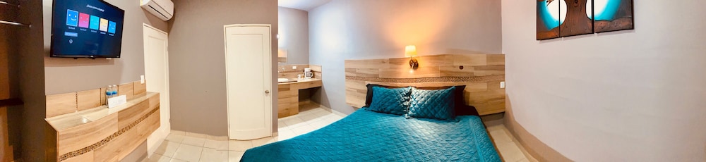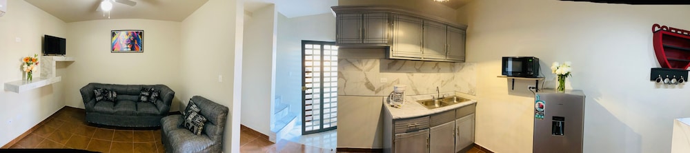 My booking actually didnt go through but said they had suite which worked out my uncle and aunt got the other room. The staff when booking said the room is so mamy pesos we asked him what is it in dollars. He said $150 25 for deposit. We gave them $175.00 dollars. He said we would get the deposit back after the key return. Then in the next morning we went to get the deposit back it was $14s dollars we got back. Flat lie. That is number 1 mistake. For asuite, it should have spoons, forks, at least a coffee maker and all they had was 2 coffee cups .dont book there.