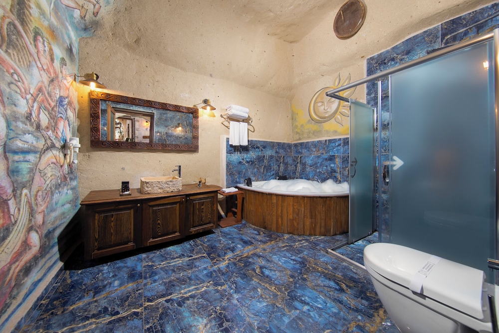 Esimle evlilik yildonumu icin ozellikle magara otel ariyorduk. Odalar cok genis konforlu jakuzi icerisinde. Oda onunde avluda cayinizi icip muhtesem ortahisar kalesi manzarasini seyredebilirsiniz. Otel sahibi cok ilgili beyfendi. Kahvalti fazlasiyla yeterli ve kaliteli idi. Kesinlikle tavsiye ederim. Otel sahibinin cevreyle ilglili onerileri de muhtesemdi.