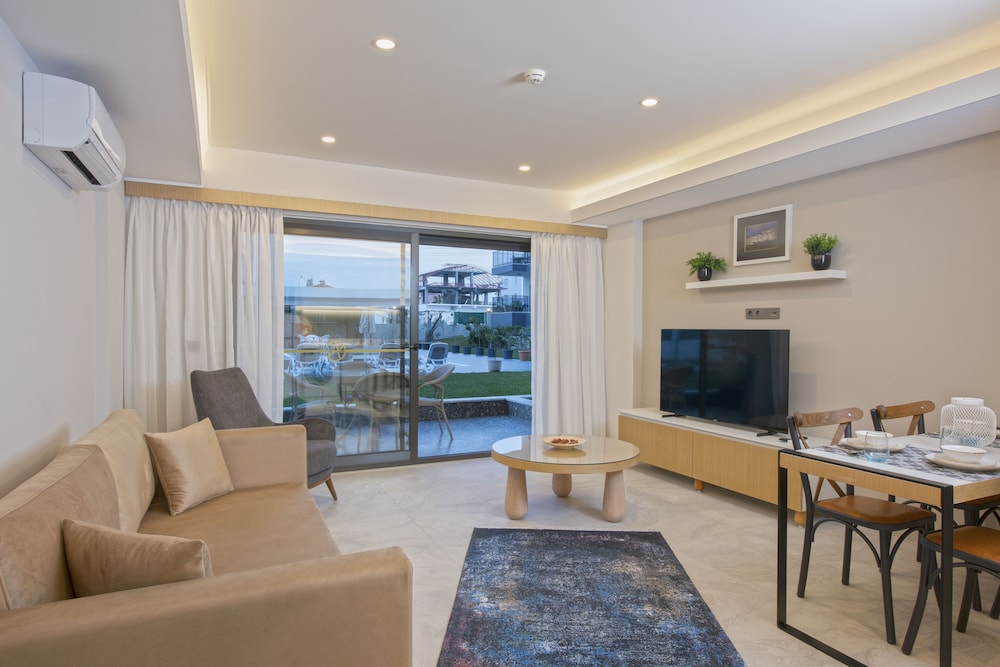 Leilighetene var fine å moderne. Alle leilighetene hadde veranda mot basseng. Kort vei til severdigheter med god mat. Busser går konstant til gamlebyen som er verdt et besøk. Hyggelig betjening. Gratis strand med god mat og renslige forhold som toalett å solsenger. Vil bestille samme hotell hvis det blir en ny tur til Side.