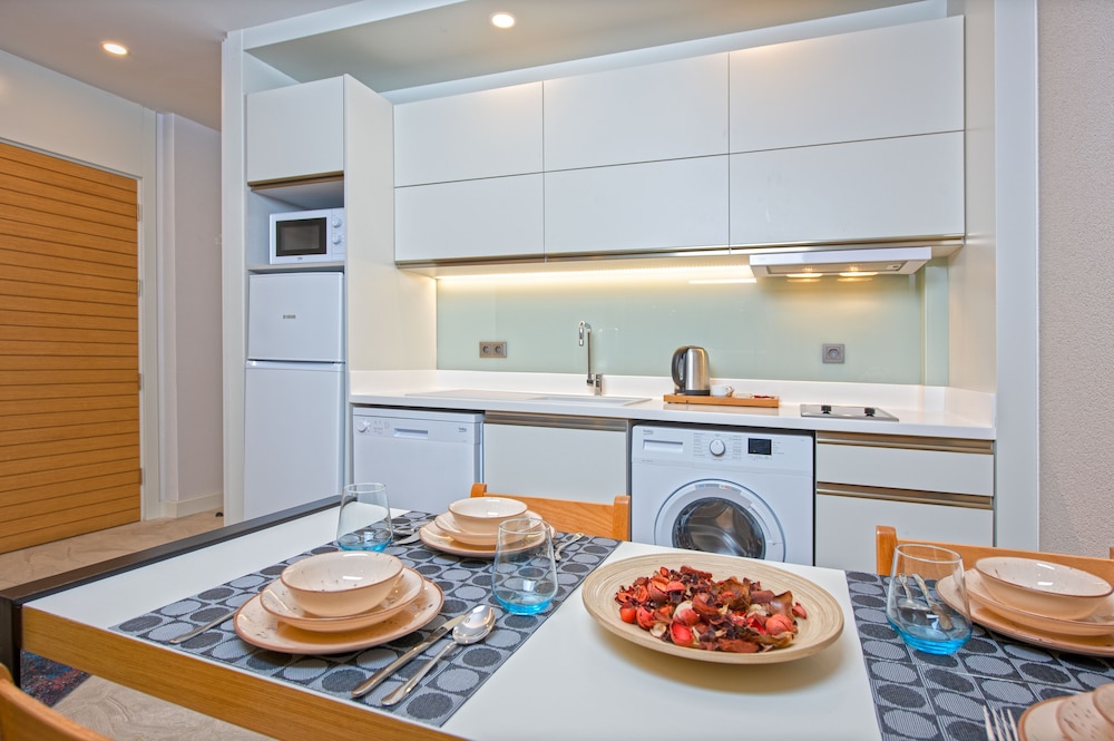 The apartments are beautiful and well equipped. All areas are immaculate and staff very helpful. Teenage daughter said fold down bed very comfortable and appreciated excellent wifi signal. Local restaurants Crown, Umit and Kayes all very good and do take away if you have a night in. We plan to come back in Spring.