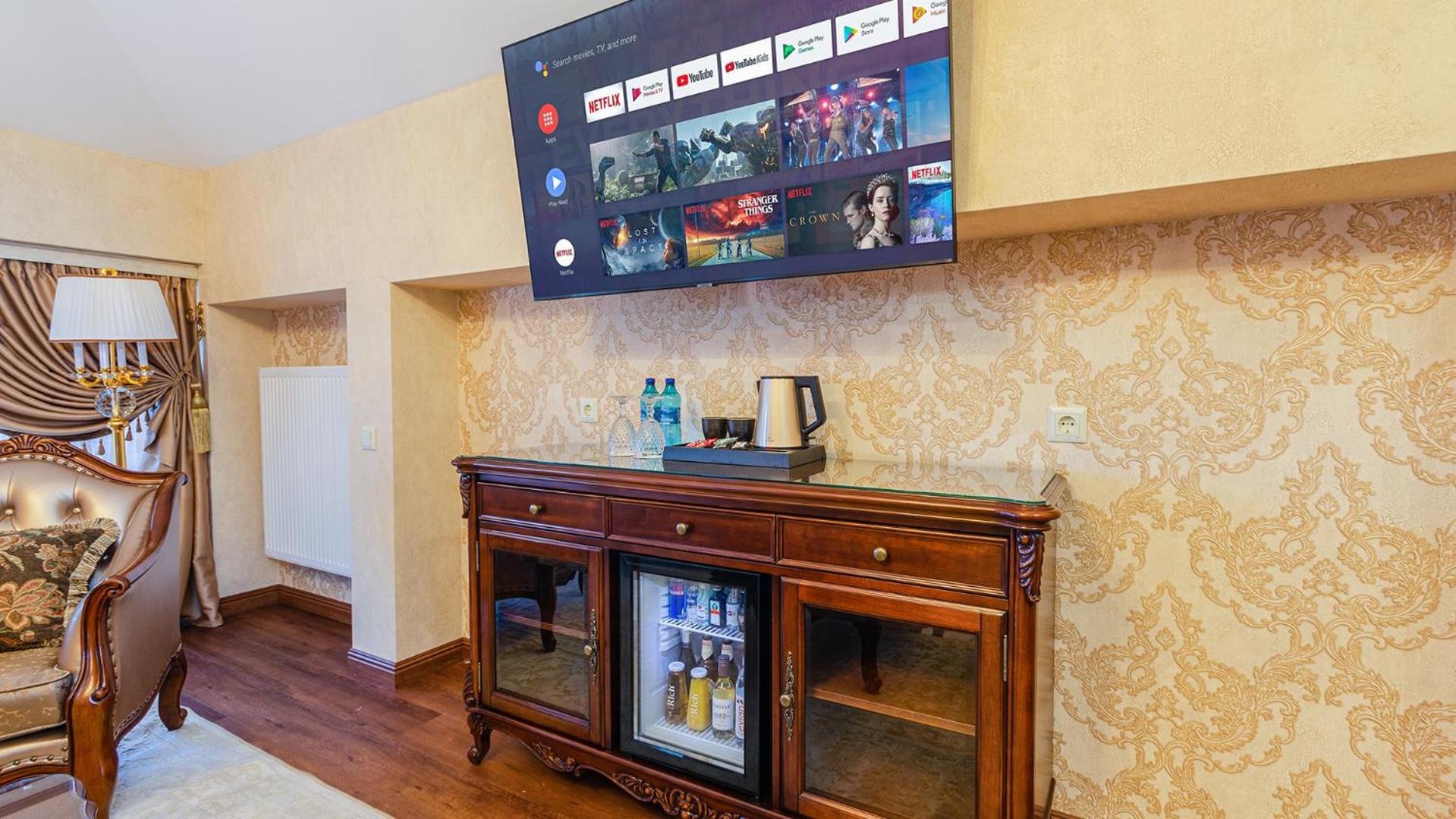 GREGORY Boutique Hotel Chisinau offers elegant 5-star rooms equipped with modern amenities like flat-screen TVs, air conditioning, and private balconies in select rooms. Guests can also enjoy complimentary WiFi and room service during their stay.