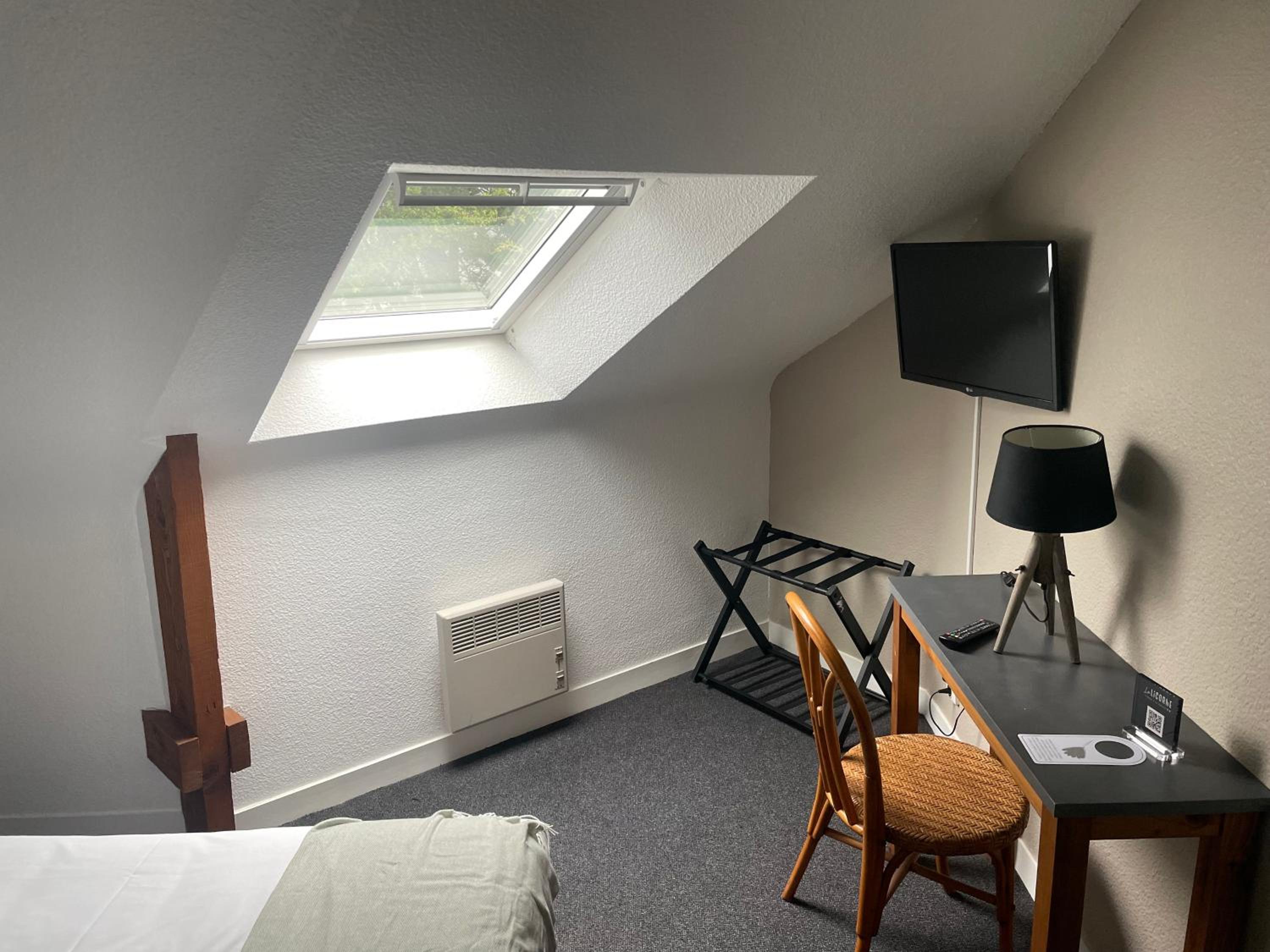 Comfortable Accommodations: The guest rooms at Hotel La Licorne feature modern amenities such as a private bathroom and a flat-screen TV with a USB point, ensuring a comfortable stay for all guests.