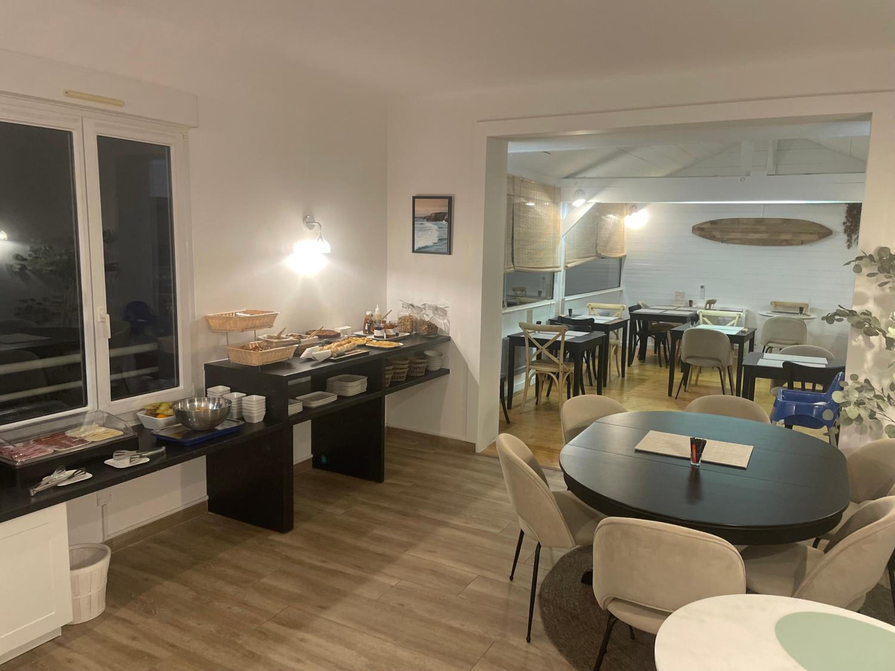L’accueil du personnel, petit parking à l’arrière de l’établissement , déjeuner copieux et varié, emplacement proche de la plage et des mégalithes