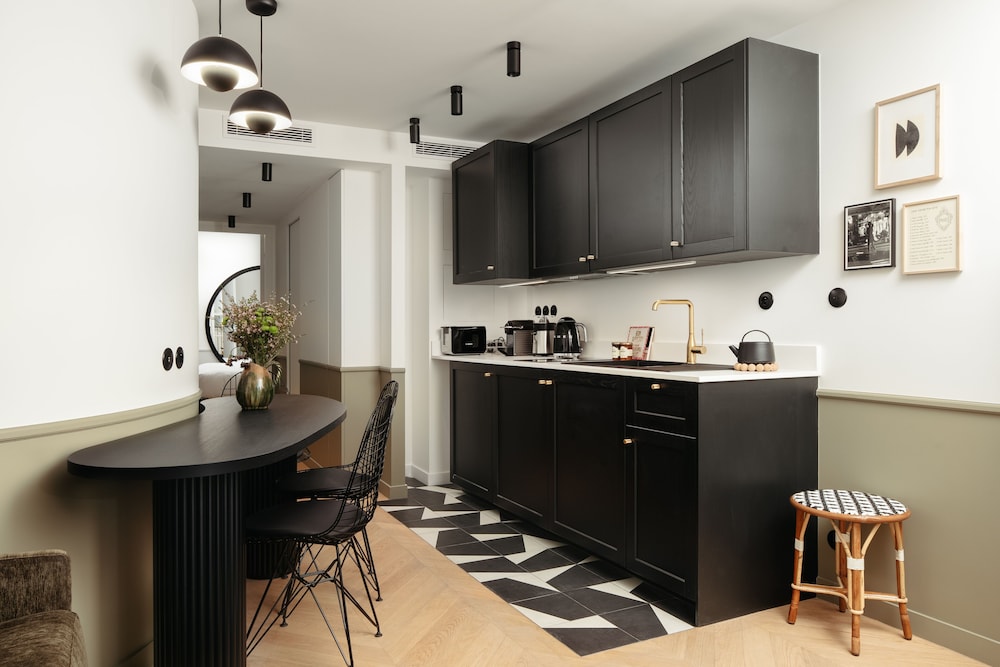 We had everything we needed in the unit; peace/privacy, great pull-out couch bed, dishwasher, washer/dryer!!, fantastic AC to luxurious bedding. Oh! I adore their Chevron natural wooden floor! The bathroom color scheme could use some rework, but stocked with incredibly fluffy large towels! It was the perfect space for the 3 of us, allowing us to make a healthy breakfast before heading out for 20K+ steps in Paris! There are so many options spanning from restaurants, grocery stores, cafes to transportation! We LOVED riding LIME bikes throughout the city - pricey but efficient! We would definitely return & recommend this hotel!