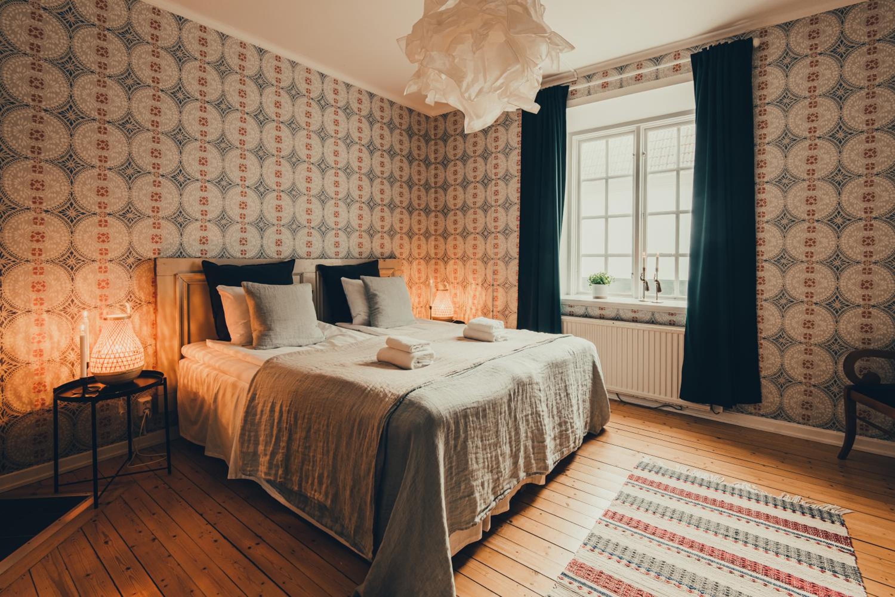 Den tillmötesgående och trevliga personalen, läget, de vackra miljöerna, de underbara tapeterna från byggnadsvården, de mysiga och stora rummen, den goda frukosten och den vedeldade bastun. Hela familjen gillade allting!