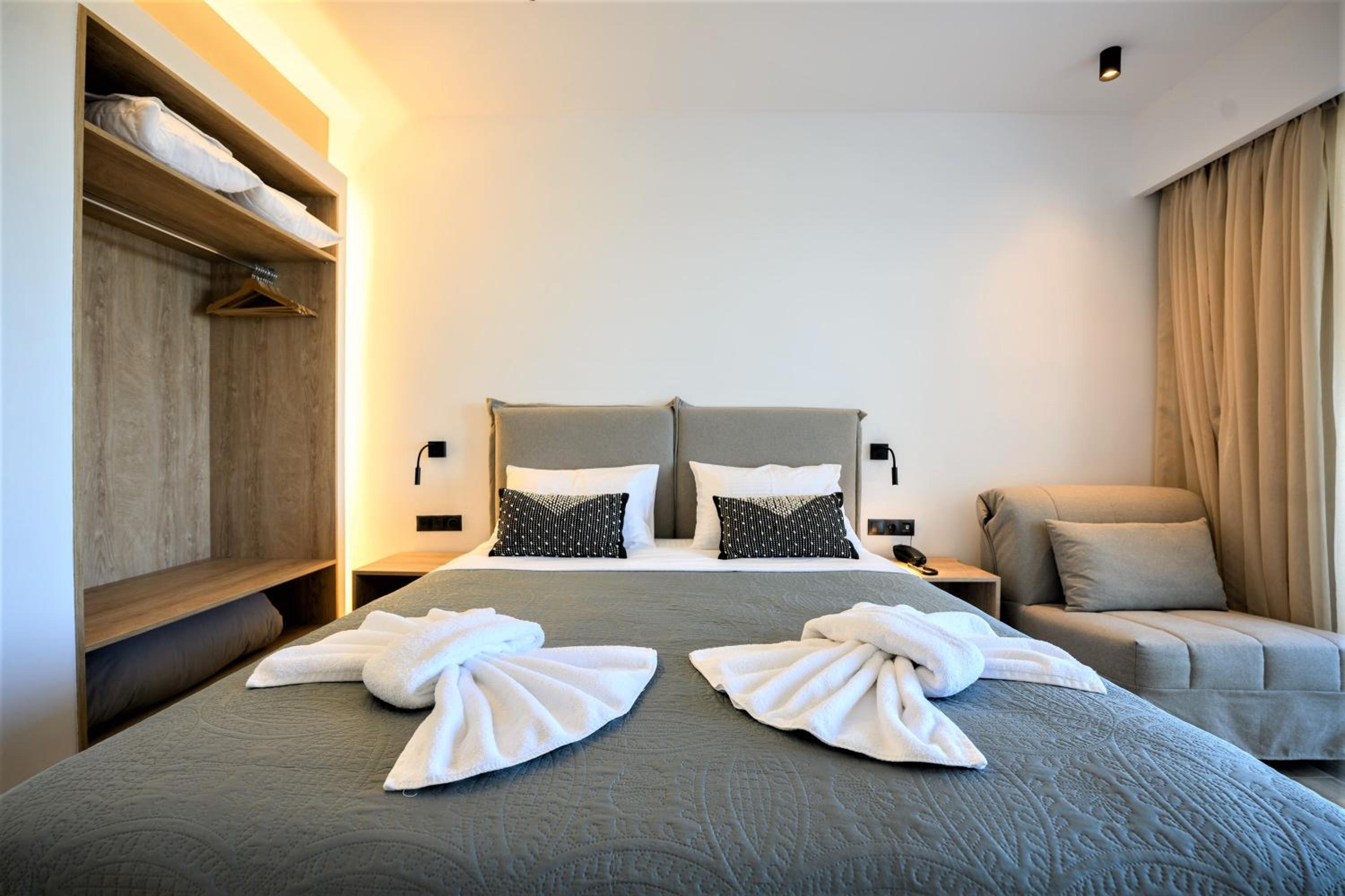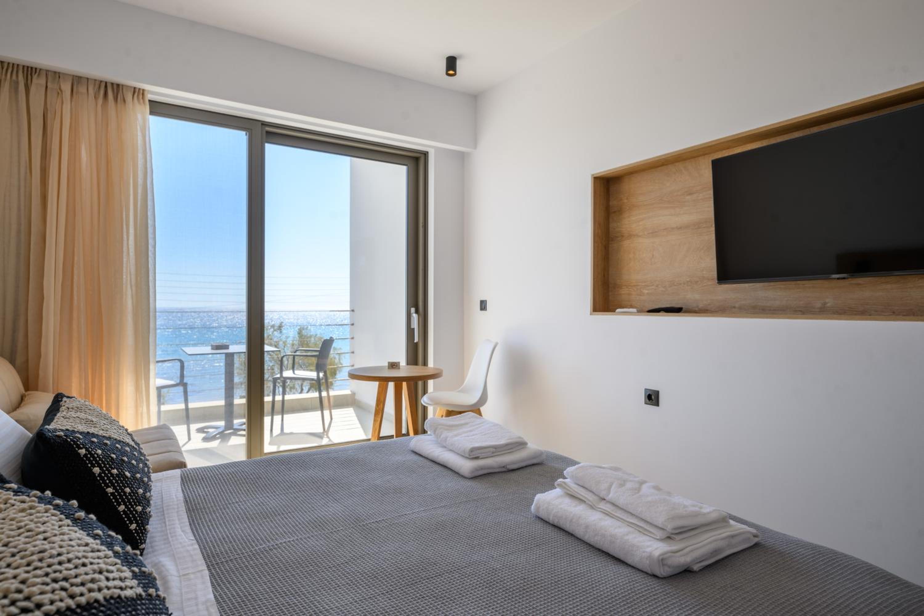 Close to the airport, gorgeous view of the Aegean, lovely room, wonderful staff, on-site parking.