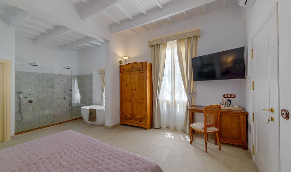 Seranova is undoubtedly a very nice hotel right in the heart of Ciutadella, literally 50 paces from the cathedral and incredibly handy for restaurants and shops. The reception closes for "comida" 14.00 to 17.00 but our entry during this closure was totally fine thanks to clear instructions sent beforehand. The hotel has few rooms (7/8?) and our room (3) was the only one which exited on to the terrace/pool. This sounds good, and is OK, but the voices of anybody in that area are generally audible in the room. The pool is very very small and more for cooling off than swimming. The room itself (#3) is good, with an enormous bed, free standing wardrobe, bathroom with double shower (almost impossible not to have a small puddle of water on the bathroomn floor after a shower!). There is a kettle and tea/coffee. A nice touch is a small fridge full of free soft drinks and the local pomada (gin/bitter lemon). A mirror in the bedroom would have been useful (there is of course one in the bathroom). There's a large screen TV too. Our price included breakfast in the basement dining room (although you are welcome to take it on to the terrace). This is an excellent buffet style offering with additioinal hot items like bacon, eggs, pancakes available to order from a friendly staff member who cooks it in a little mini kitchen in the corner of the room. Ciutadella is an absolute delight with lots of leisure boats in the harbour. Nearby buses take you to local beaches and the capital, Mao.