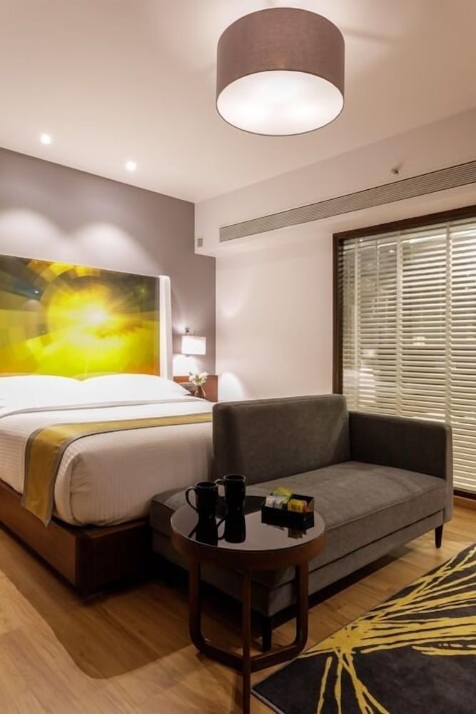 Lovely hotel with huge rooms and all the facilities and amenities of a 5-star, yet at vaue-for-money prices. Located half a km inside from highway, the location is quiet and peaceful, and the property has nice views over green belt. I had lunch at their restaurant and enjoyed the freshly prepared buffet served on the table, and ordered in room dining for dinner. Though it took little while for food to arrive, but it was served piping hot and delicious. Also tried the spa, pool, and fitness centre. Overall, enjoyable stay and best part is that total bill was only about Rs.10k.