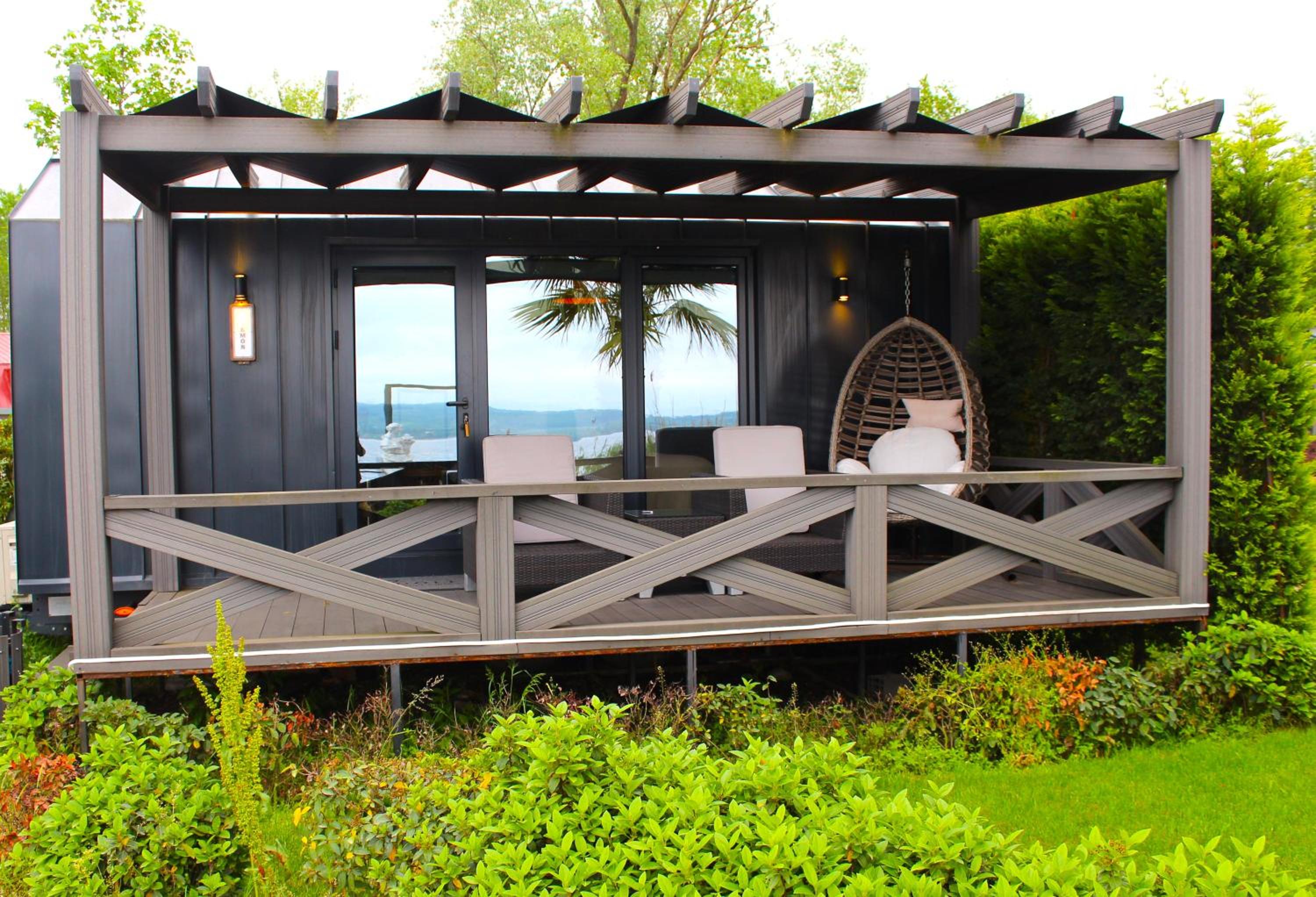 Loved the location right on the lake and good proximity to sightseeing. The staff was friendly and helpful. Room was basically a tiny house and the bed was very close to the ceiling which has its pros and cons, otherwise very adorable. Loved the egg swing chair on the front porch but the shower floor needs to be more tilted for the water to drain properly. Also there were no large towels for the shower. Additionally it takes a long time to get the cab for pick at this location.