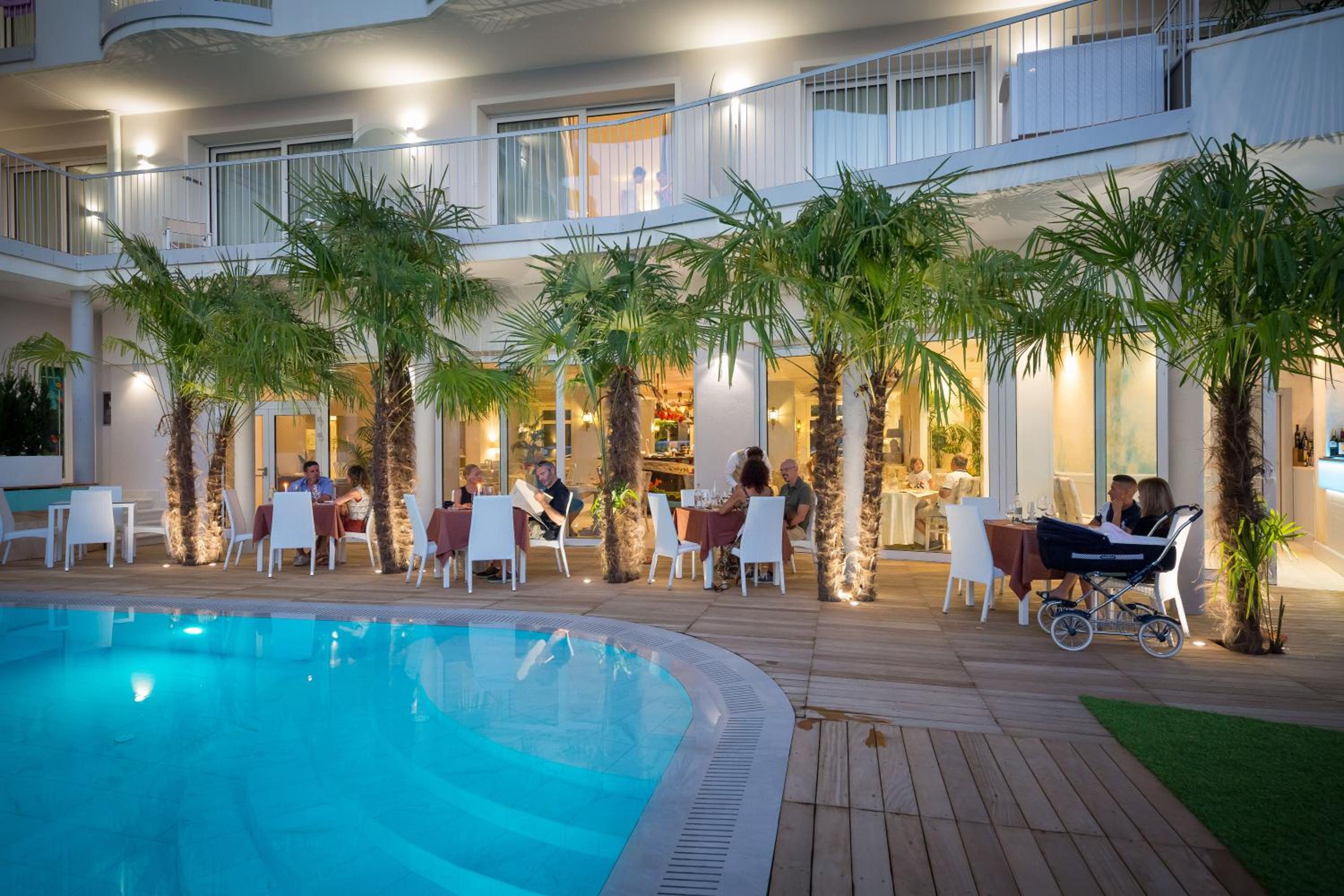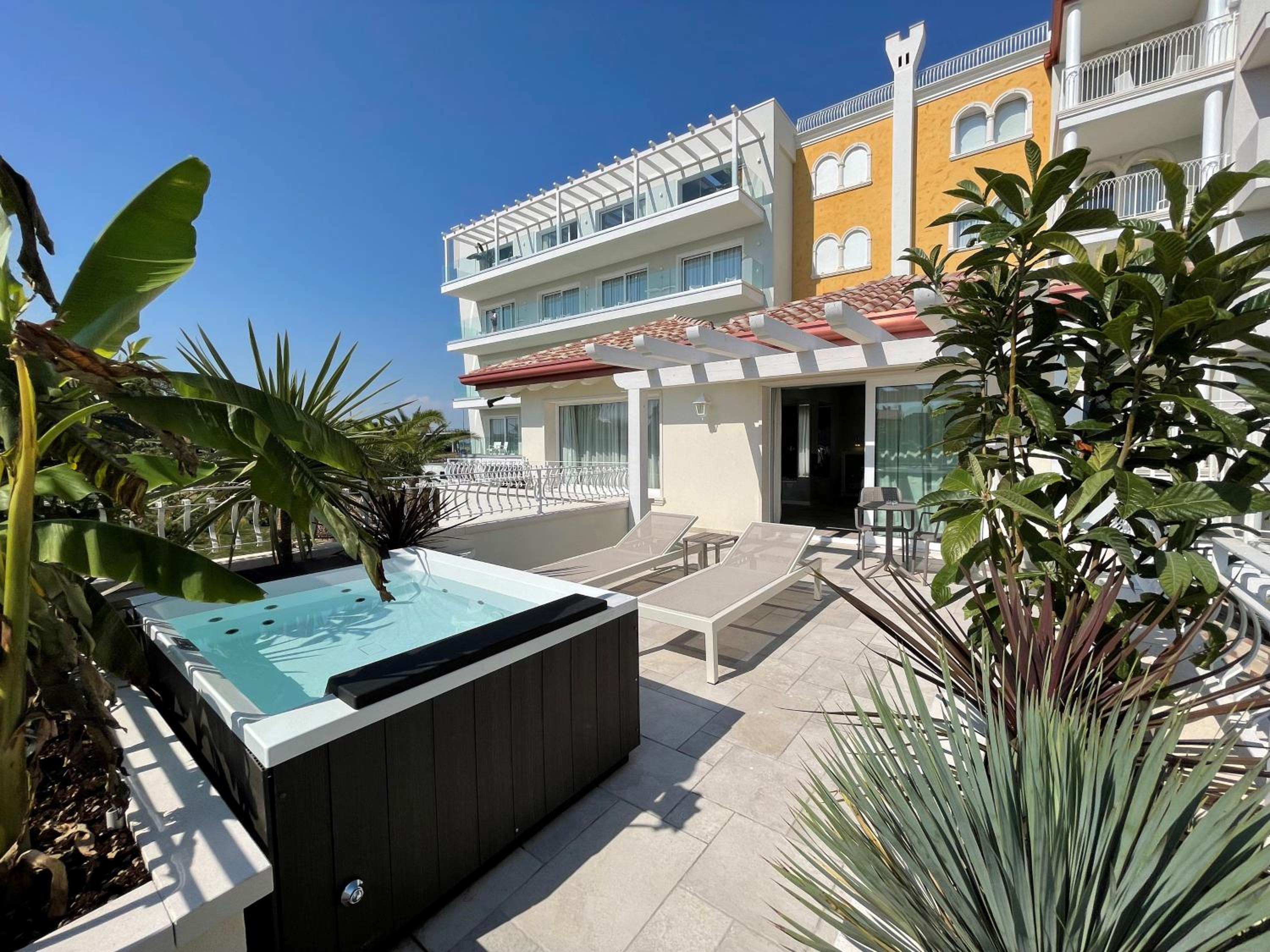 AQA Palace, nestled in a serene location just a short stroll from the beach and historic Caorle center, offers a tranquil retreat. Indulge in the seasonal outdoor pool, garden, and free WiFi. Unwind in the adult-only indoor pool and wellness center, available for an additional fee.