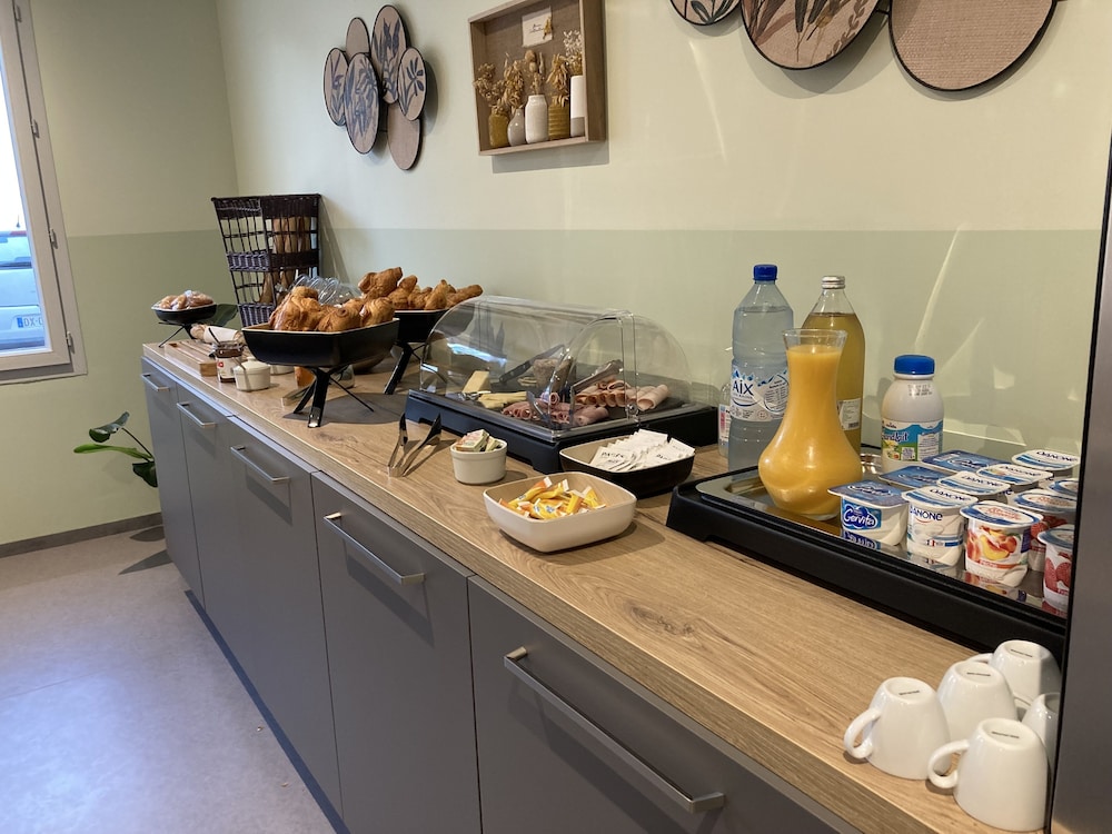 Possibilité de diner sur place (un petit peu cher) mais tellement pratique quand on n'a pas envie de sortir ! Petit déjeuner complet. Je recommande.