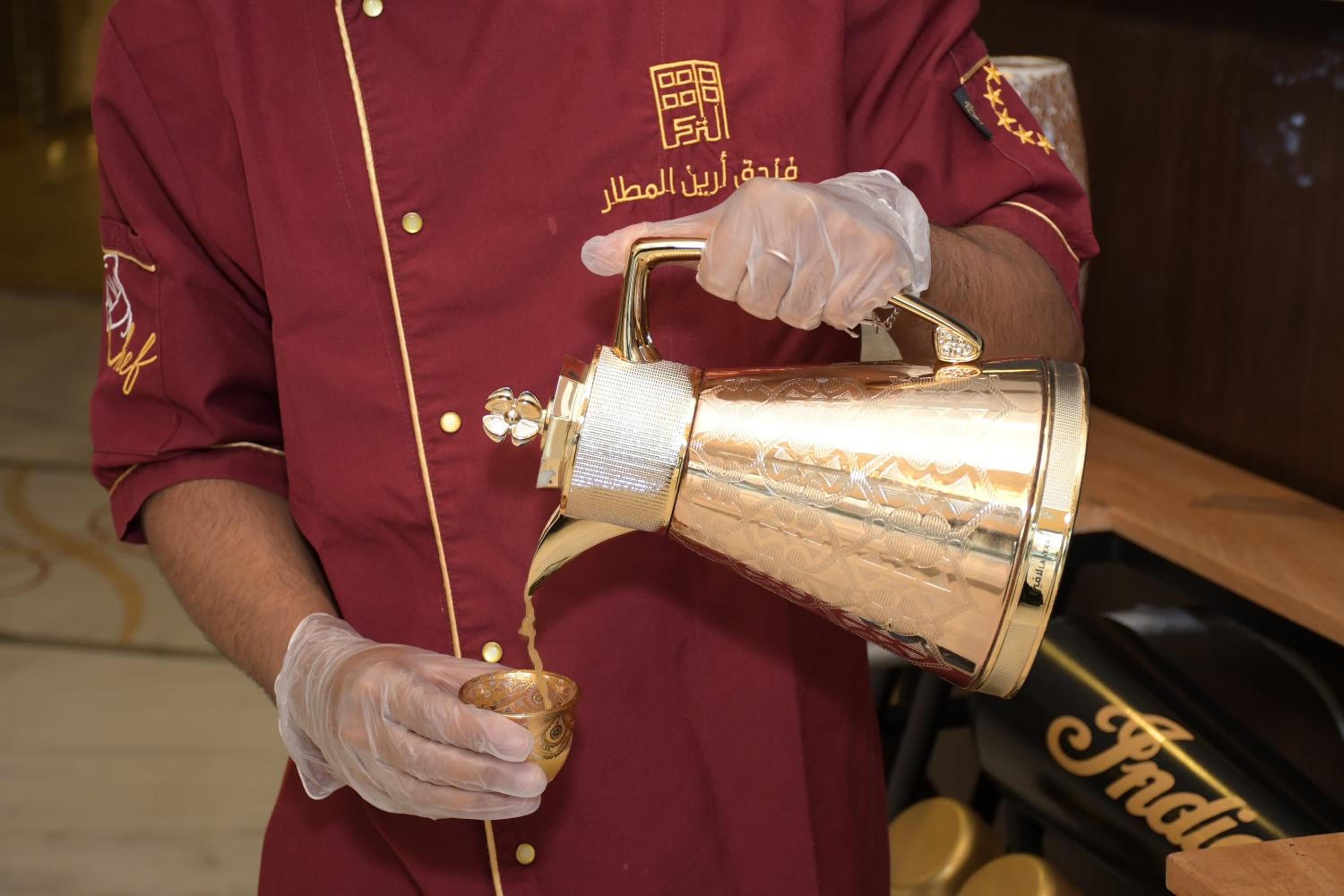 قربه من المطار، وفيه مغسلة، وقهوه