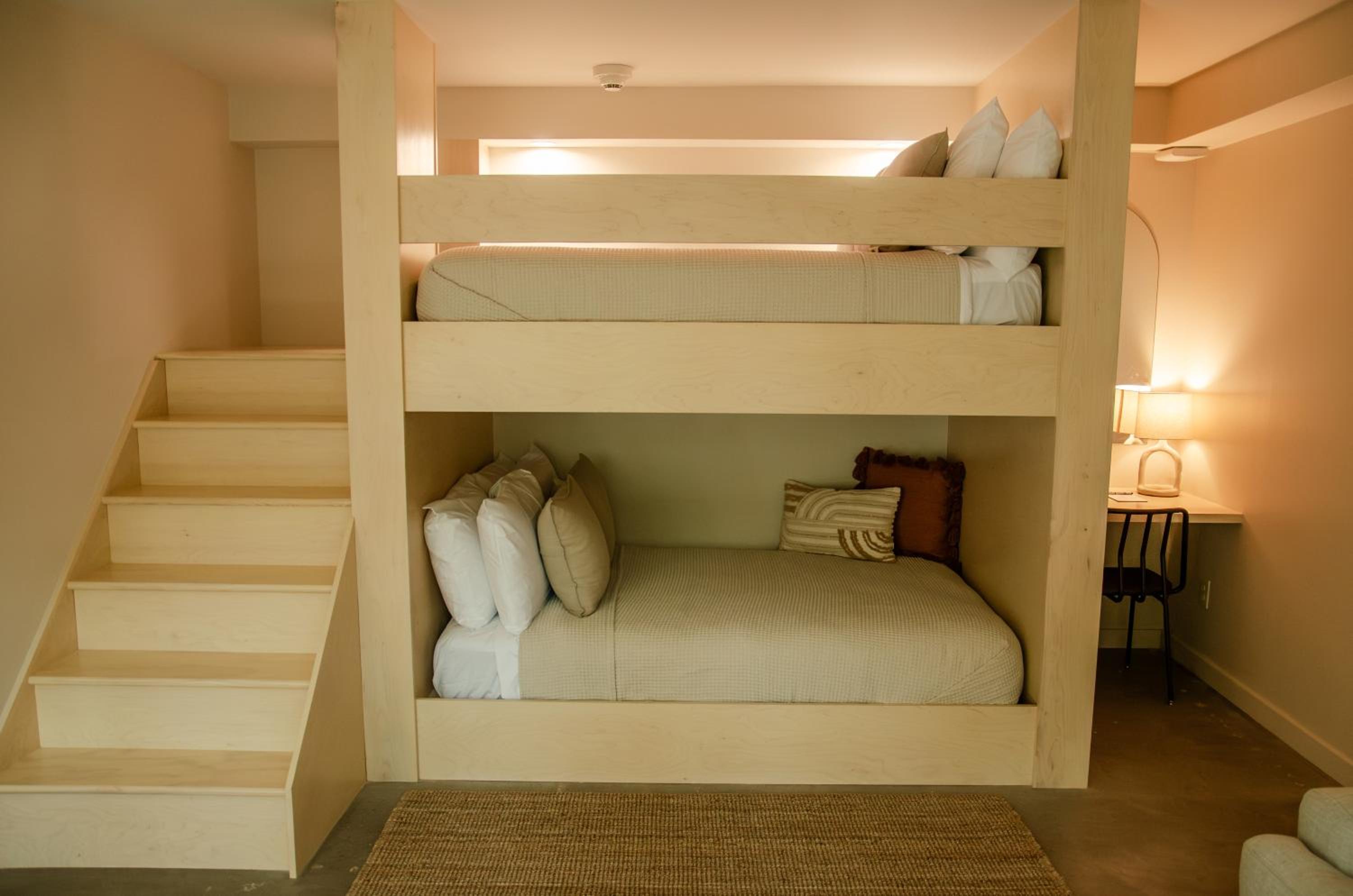 The step up platform to the beds. Easy to trip or fall. Didn't like the bamboo coffee stirs.