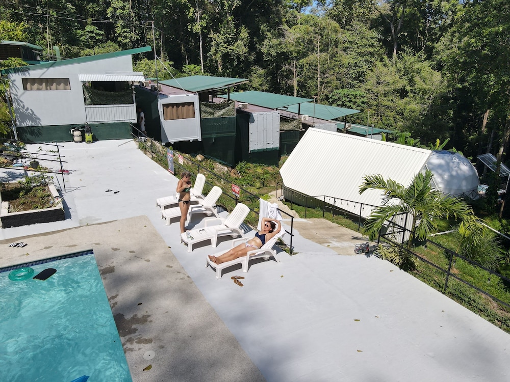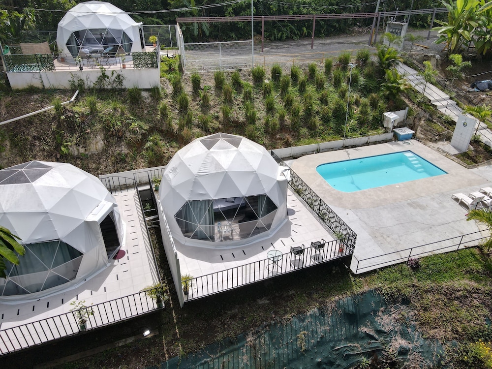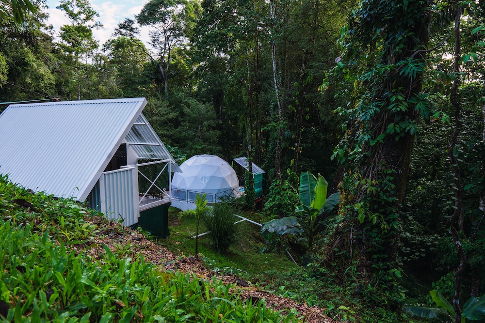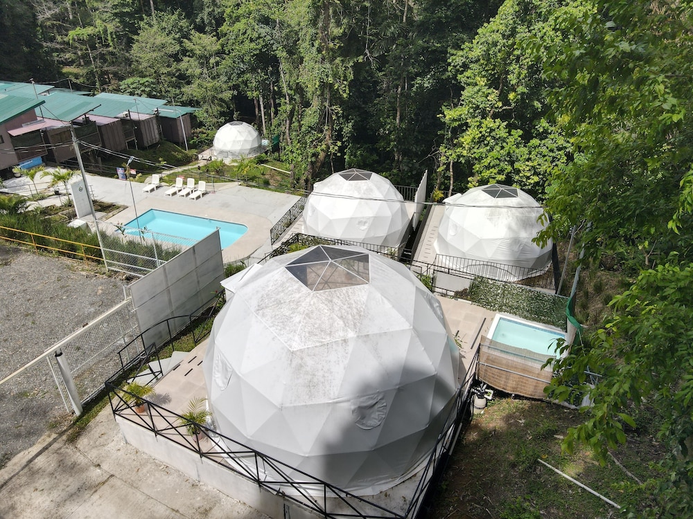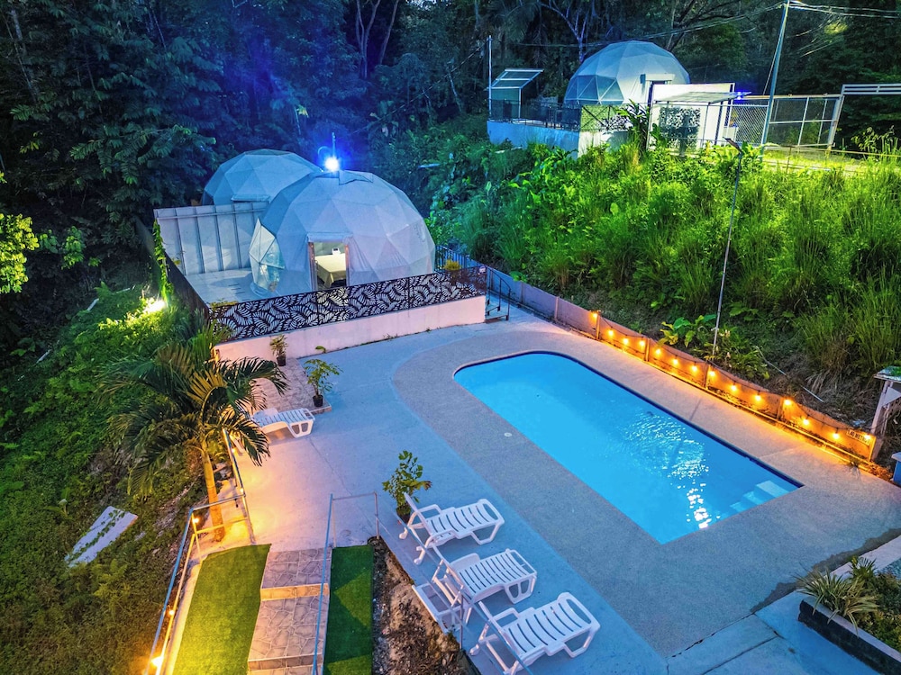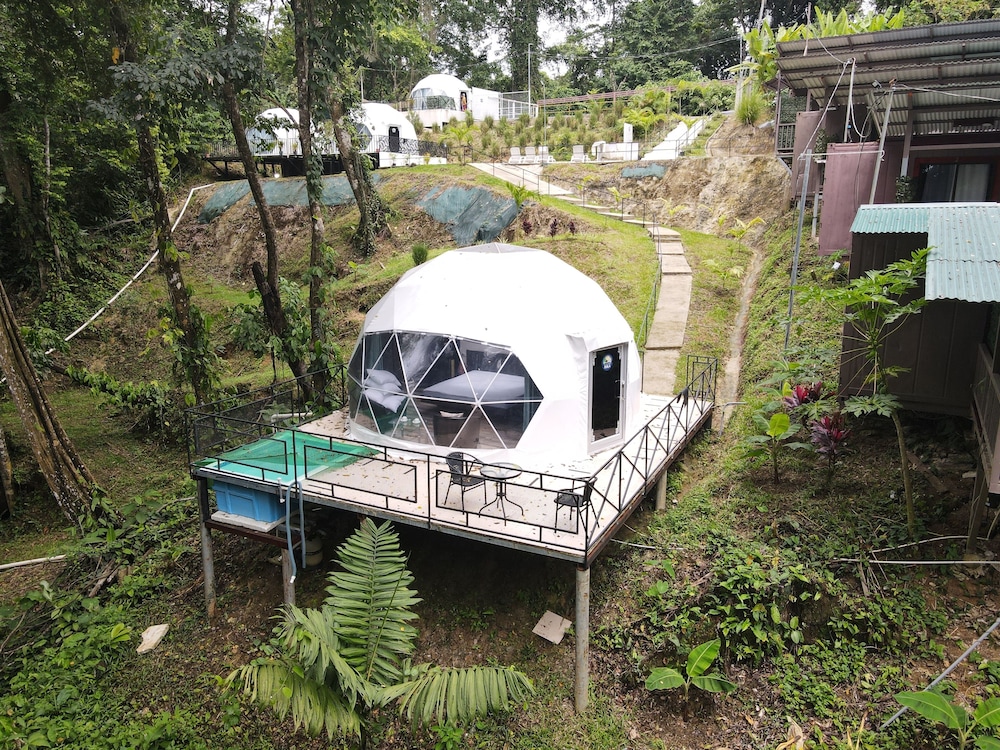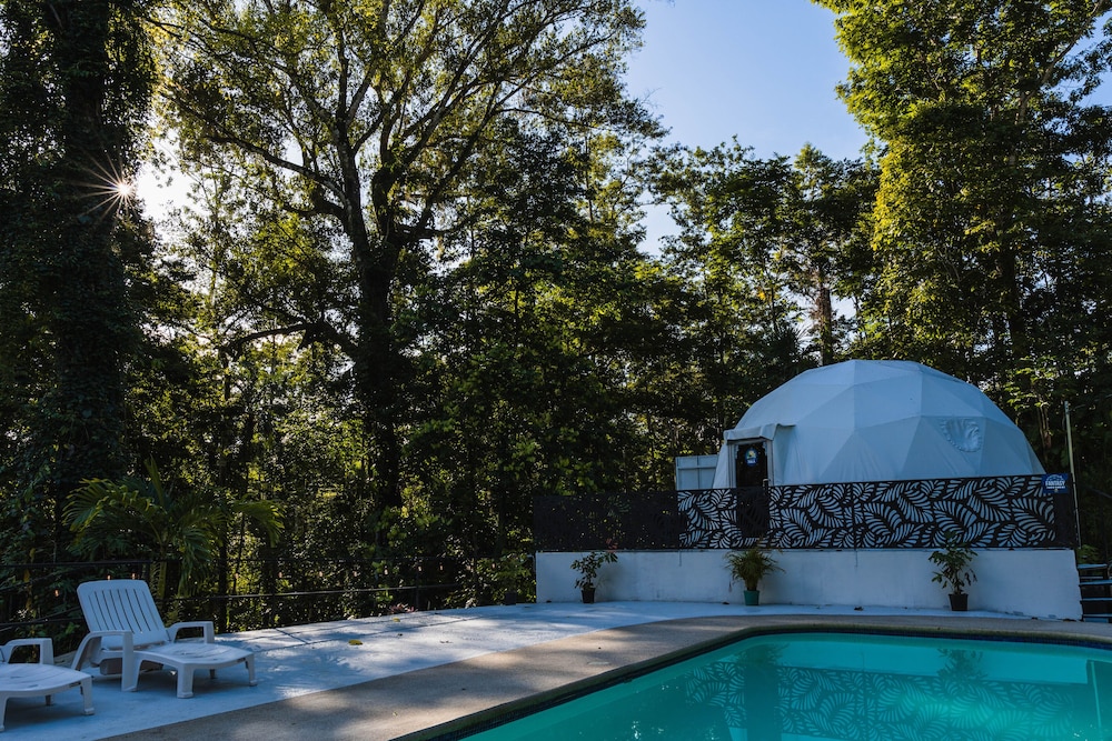 When we arrived we couldn't find any staff for about 15 minutes. They came from the direction of our dome and gave us a key. We didn't do a formal check in or check out, they just gave us the key and showed us to the room which had black hair all over the bathroom, in the bed, as well as crumbs in the bed wrinkles and stains like the sheets had been used and not changed. There were several LARGE insects in the room under the table which seemed to have been missed by the staff. The shower head only was a trickle and leaked and the water temperature fluctuated a lot. The pool was FULL of very large bugs. I understand Costa Rica has bugs and I don't mind, but the state of the room was upsetting to say the least.