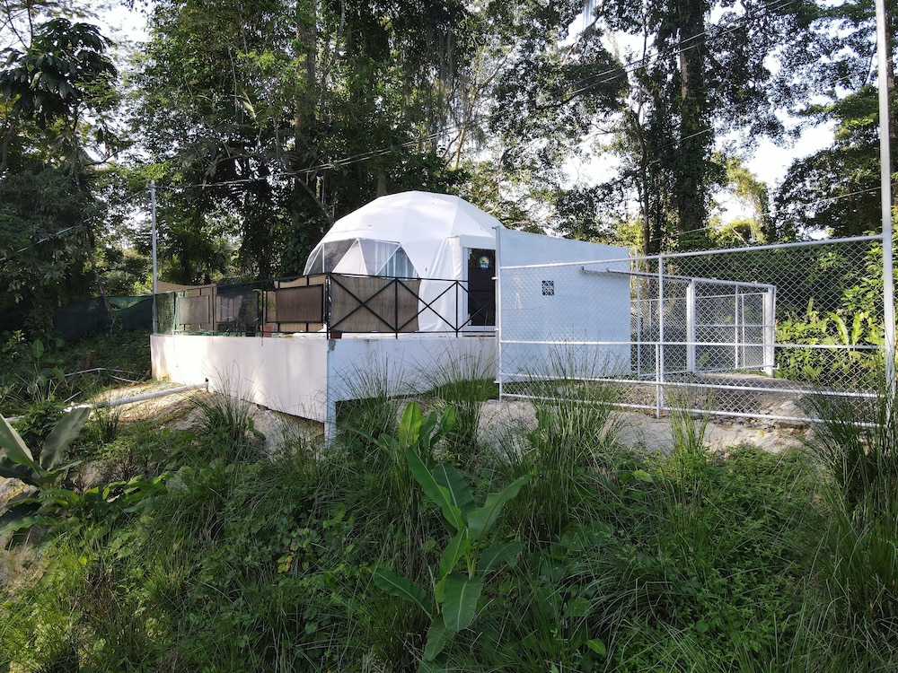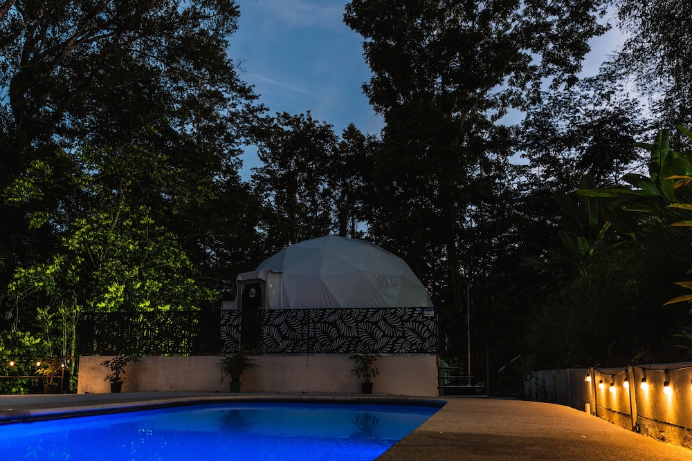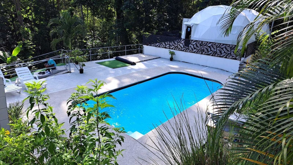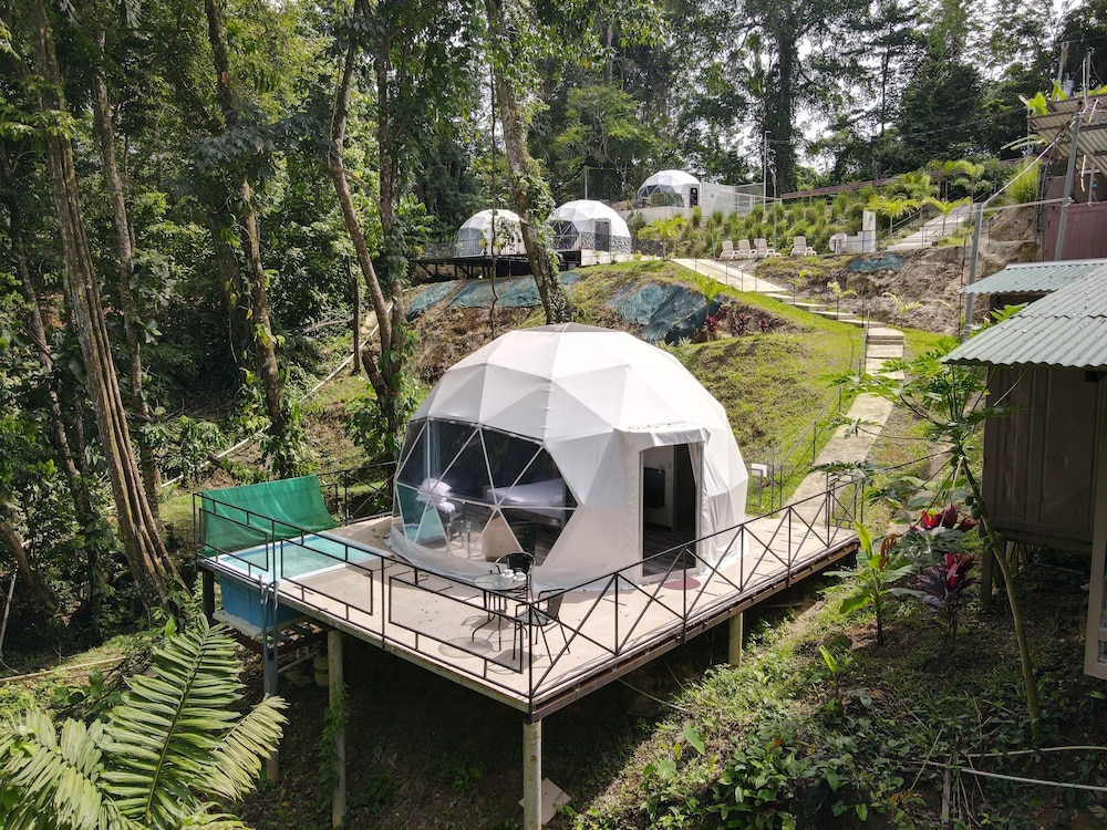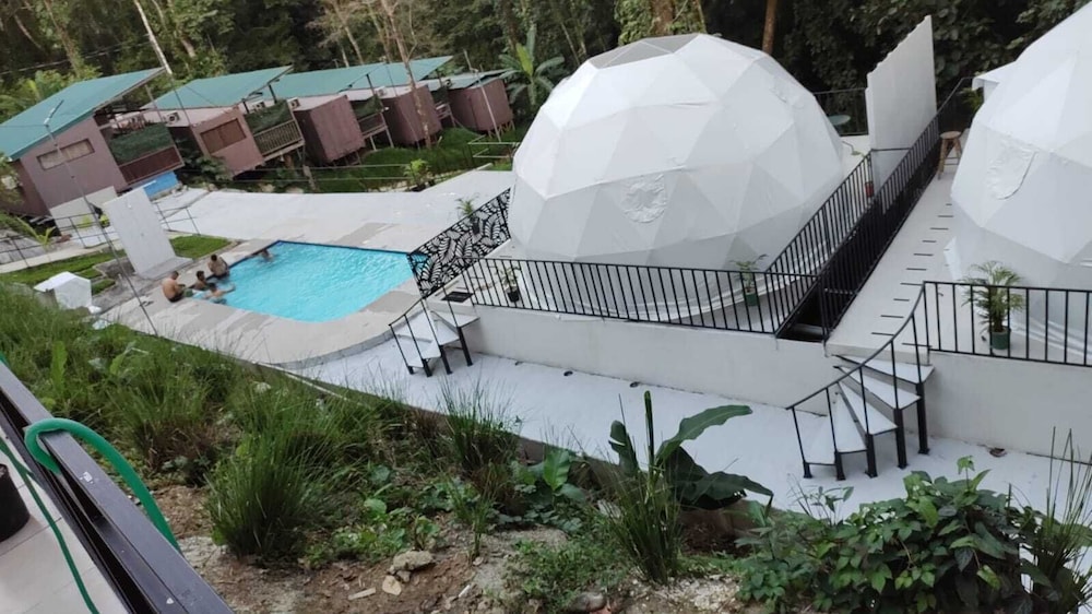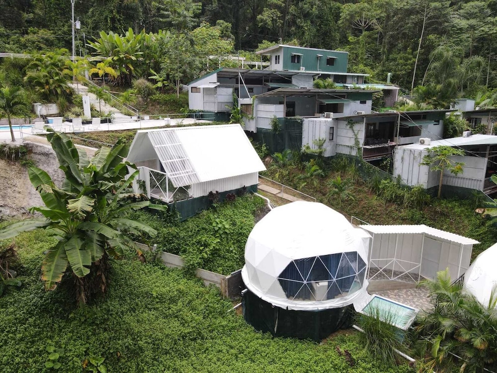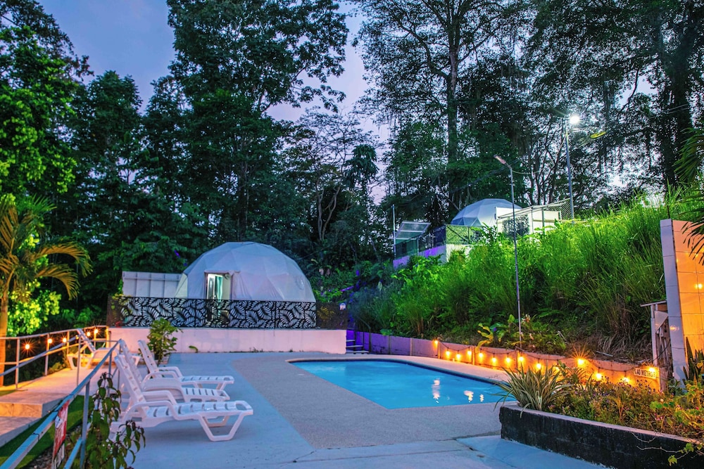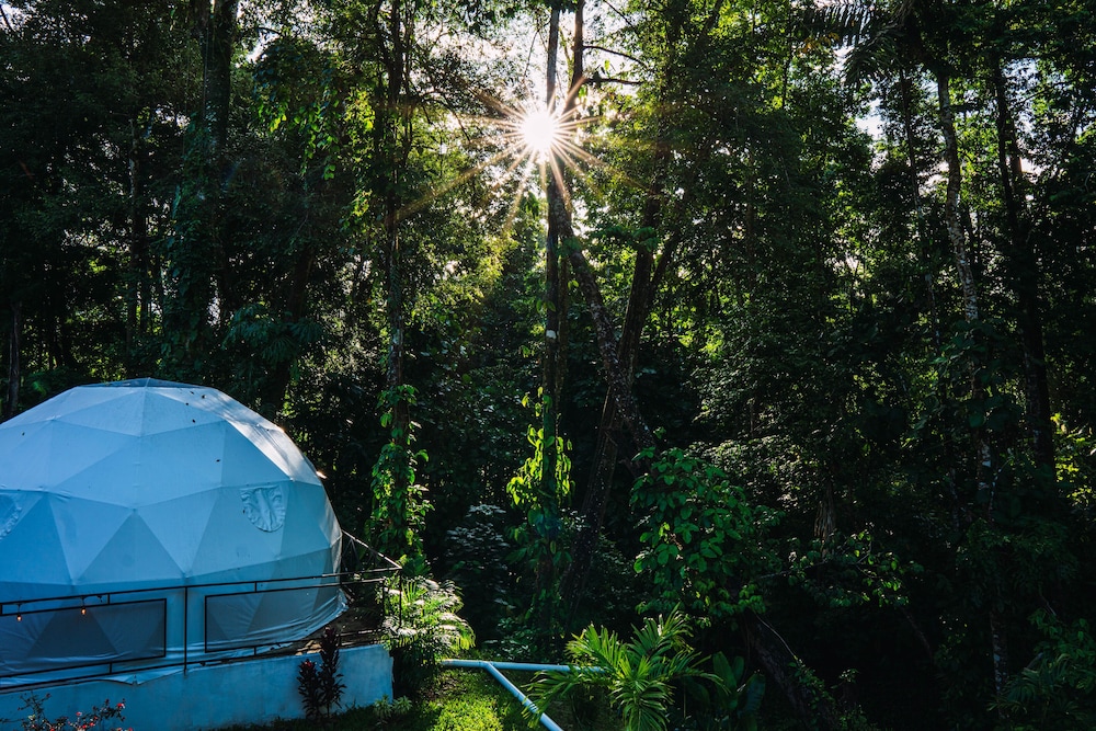 When we arrived we couldn't find any staff for about 15 minutes. They came from the direction of our dome and gave us a key. We didn't do a formal check in or check out, they just gave us the key and showed us to the room which had black hair all over the bathroom, in the bed, as well as crumbs in the bed wrinkles and stains like the sheets had been used and not changed. There were several LARGE insects in the room under the table which seemed to have been missed by the staff. The shower head only was a trickle and leaked and the water temperature fluctuated a lot. The pool was FULL of very large bugs. I understand Costa Rica has bugs and I don't mind, but the state of the room was upsetting to say the least.