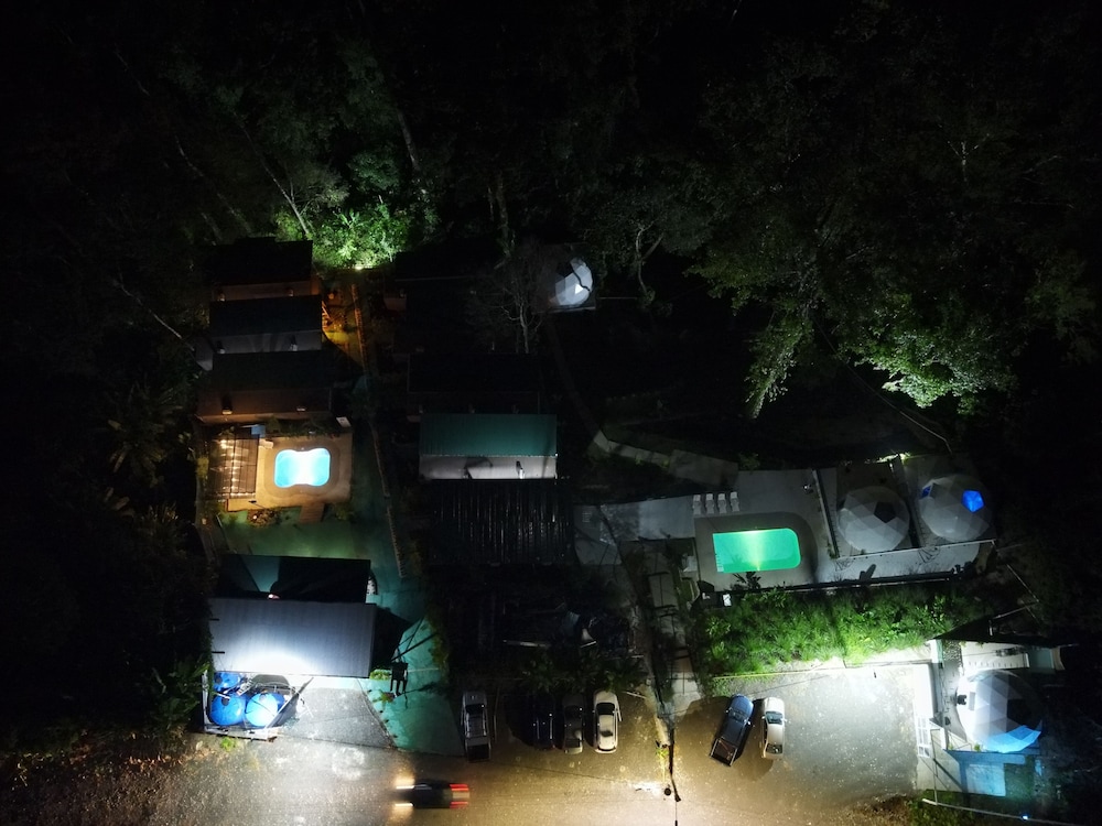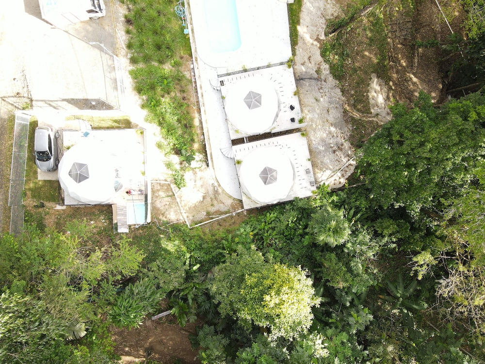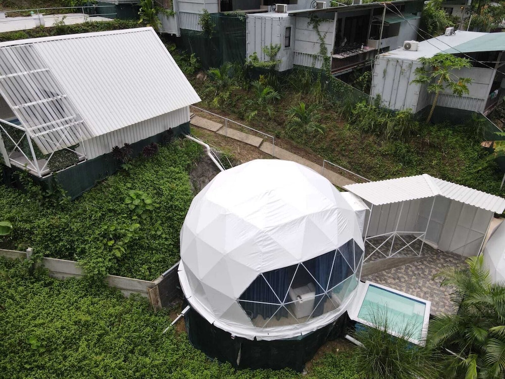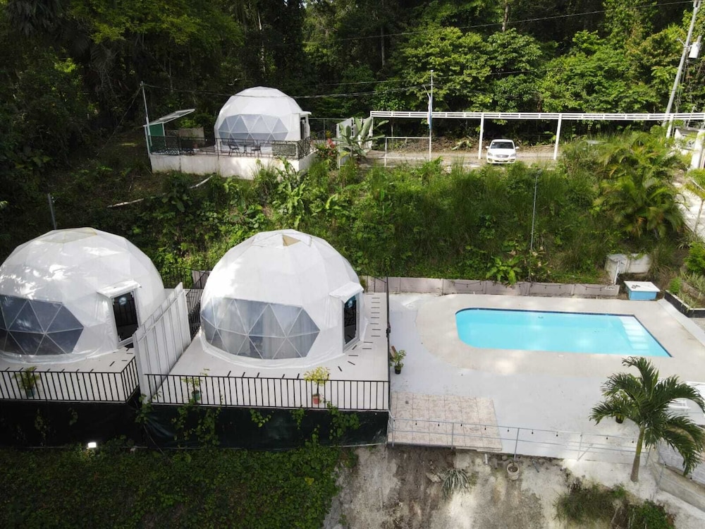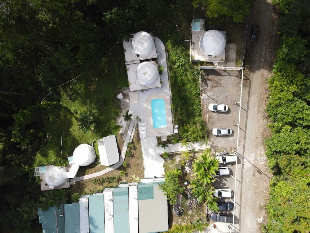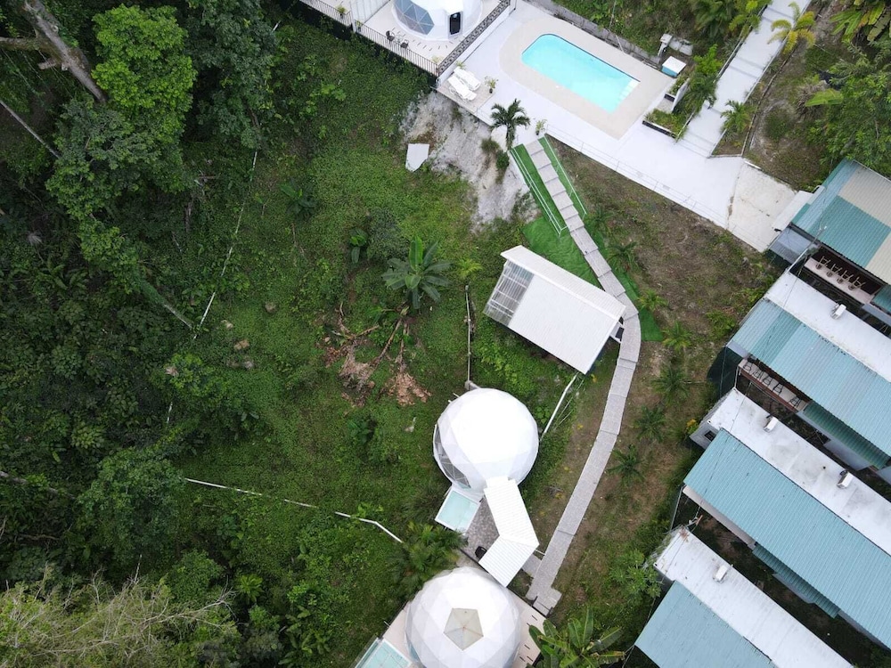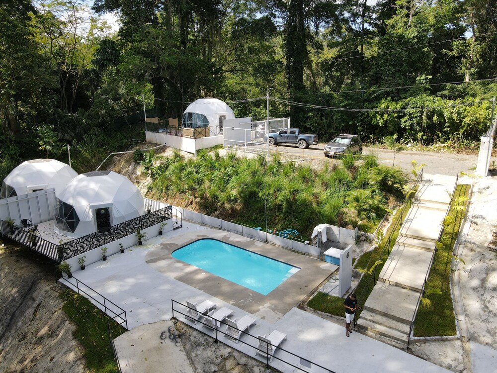 When we arrived we couldn't find any staff for about 15 minutes. They came from the direction of our dome and gave us a key. We didn't do a formal check in or check out, they just gave us the key and showed us to the room which had black hair all over the bathroom, in the bed, as well as crumbs in the bed wrinkles and stains like the sheets had been used and not changed. There were several LARGE insects in the room under the table which seemed to have been missed by the staff. The shower head only was a trickle and leaked and the water temperature fluctuated a lot. The pool was FULL of very large bugs. I understand Costa Rica has bugs and I don't mind, but the state of the room was upsetting to say the least.