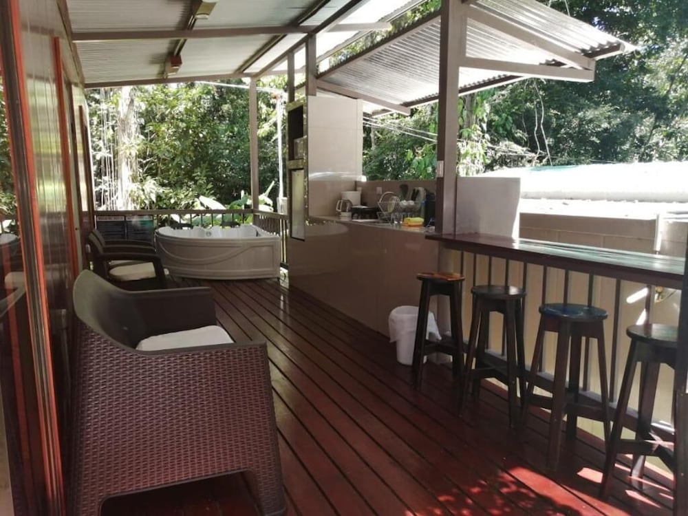 The owner was great - friendly, helpful, entertaining. Villas are spacious, bathroom is in a great condition, pools have colourful lights at night, you are surrounded by the nature, there are several supermarkets and the beach within a walking distance of the property