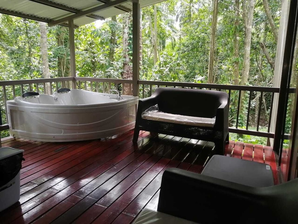 I loved being in the jungle. It is on a very steep hill so if you have any handicap, you absolutely must be able to walk a Very steep hill down and up. To steep for an electric wheelchair. At the time we went no one spoke English but we had to use translator. There was some communication issues. They also say that they have down comforters and nice toiletries. There was no soap or shampoo in the shower at all. But overall we loved it and would recommend.