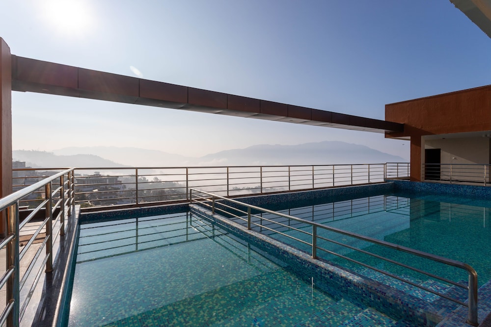 Lovely modern hotel with lift and rooftop pool Situated just below Gorkha palace Nice restaurant with inside and outside dining options.