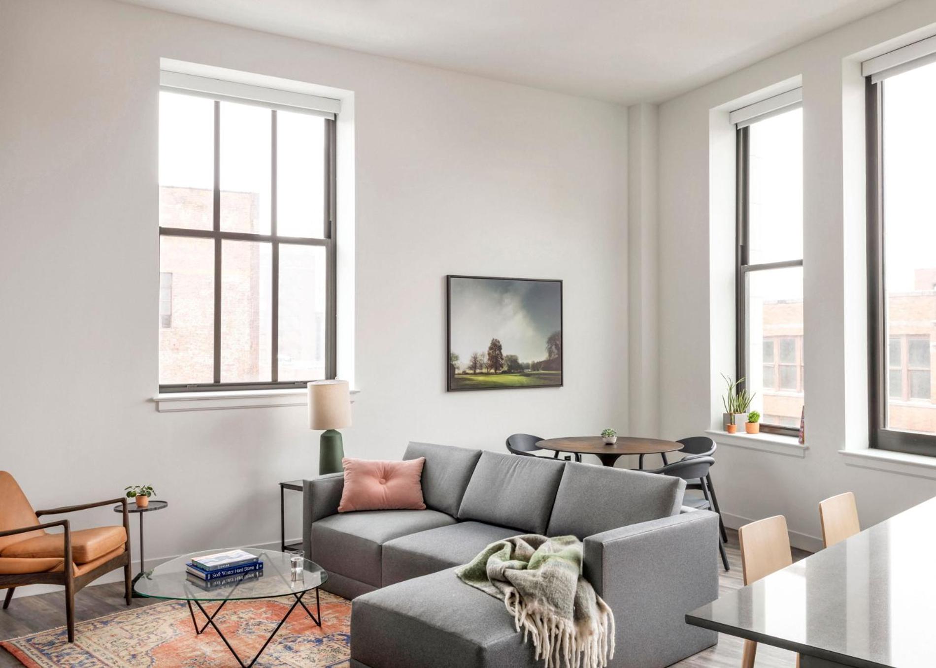 Enjoy the convenience of family rooms, fully equipped kitchens, and modern amenities like flat-screen TVs and free WiFi during your stay at ROOST Cleveland.