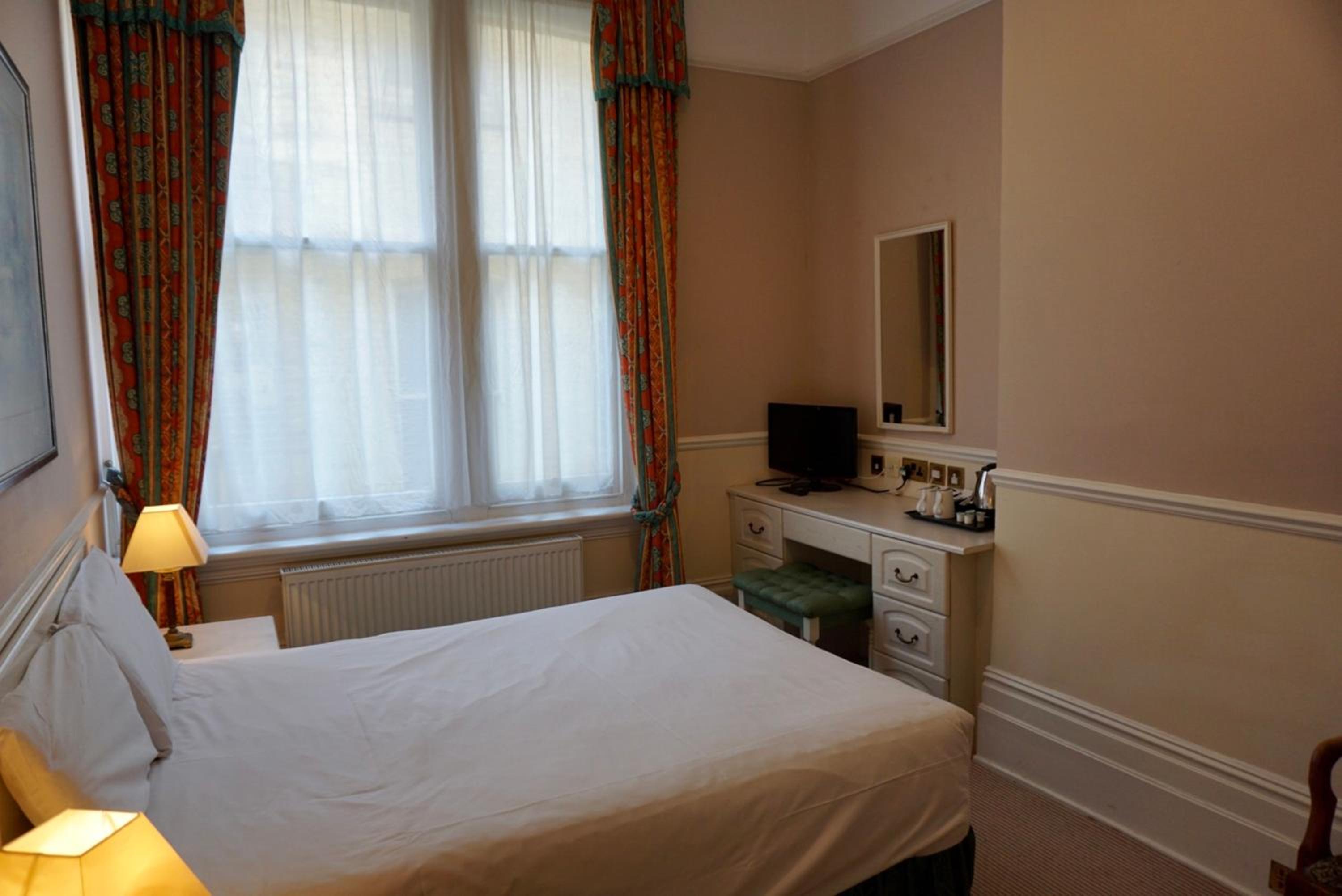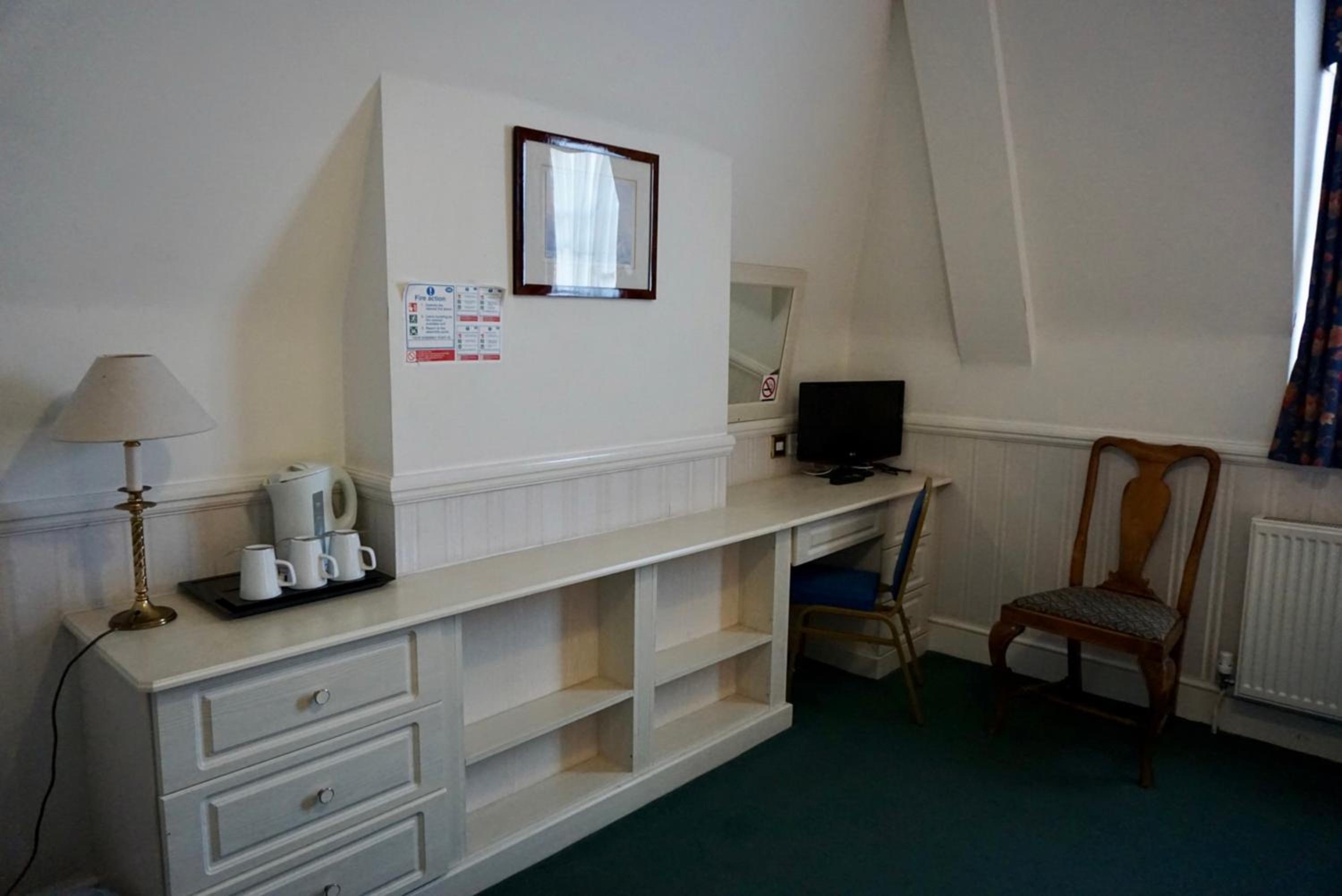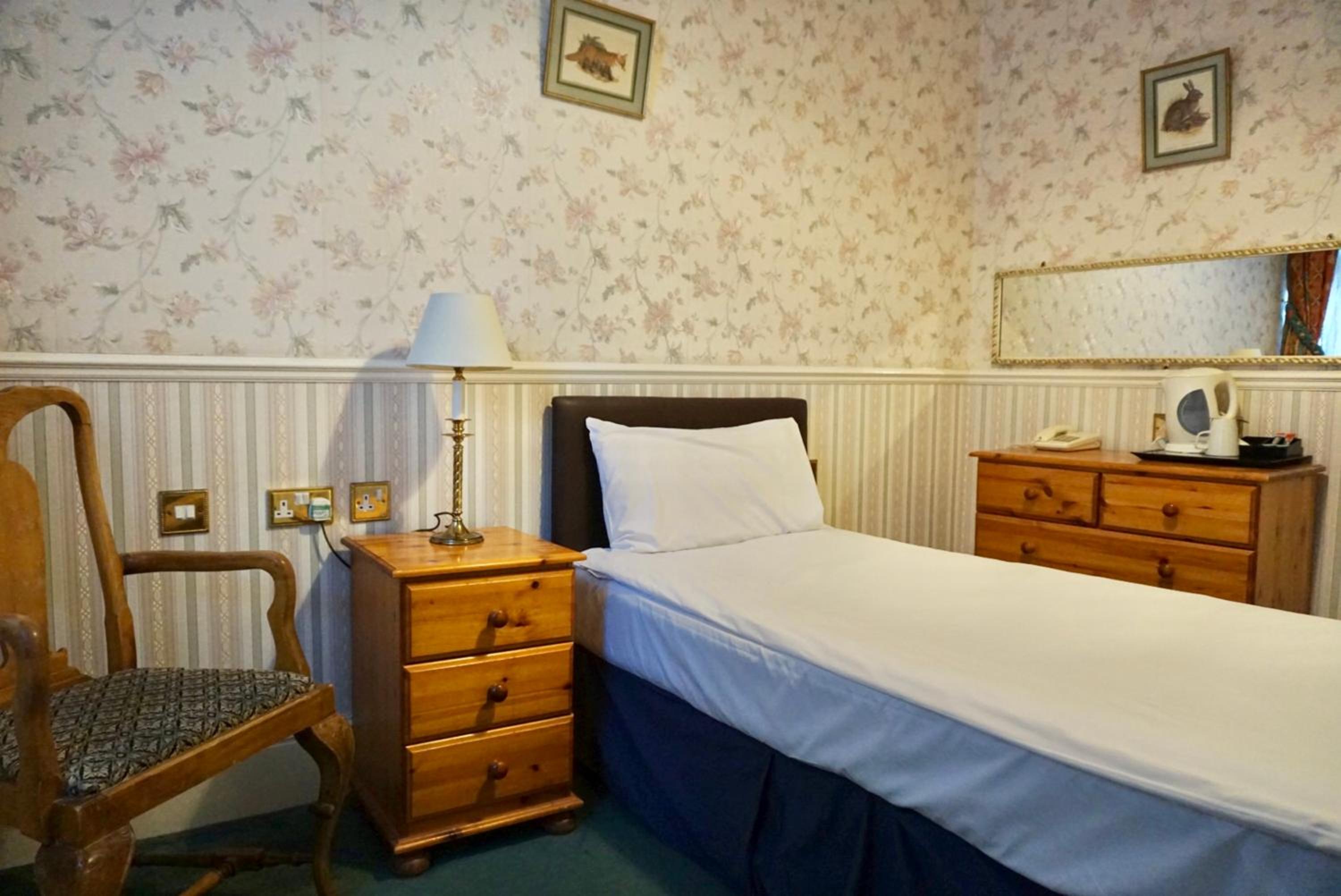 Dated and scruffy furniture, carpet and bathroom. An unpleasant smell in the room which I think came from old cloth surrounding the 4 poster bed. The worst mattress we have encountered, so painful were the springs that we slept on top of the duvet to protect ourselves. Heat in the bathroom was stifling as towel radiator would not turn off. Virtually no water from cold water tap in basin. Amusingly we were upgraded to this room which was the bridal suite, other rooms may be better.
