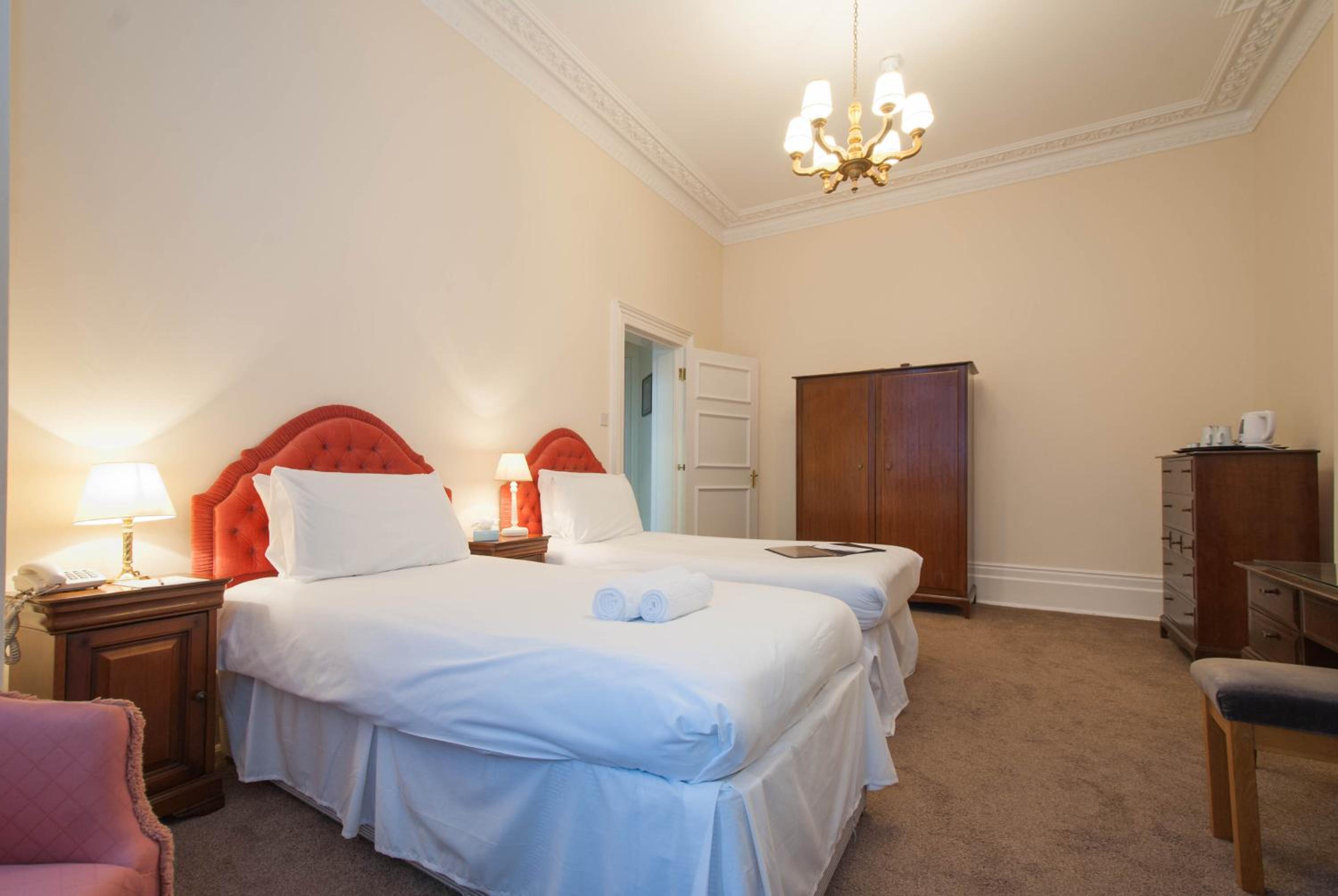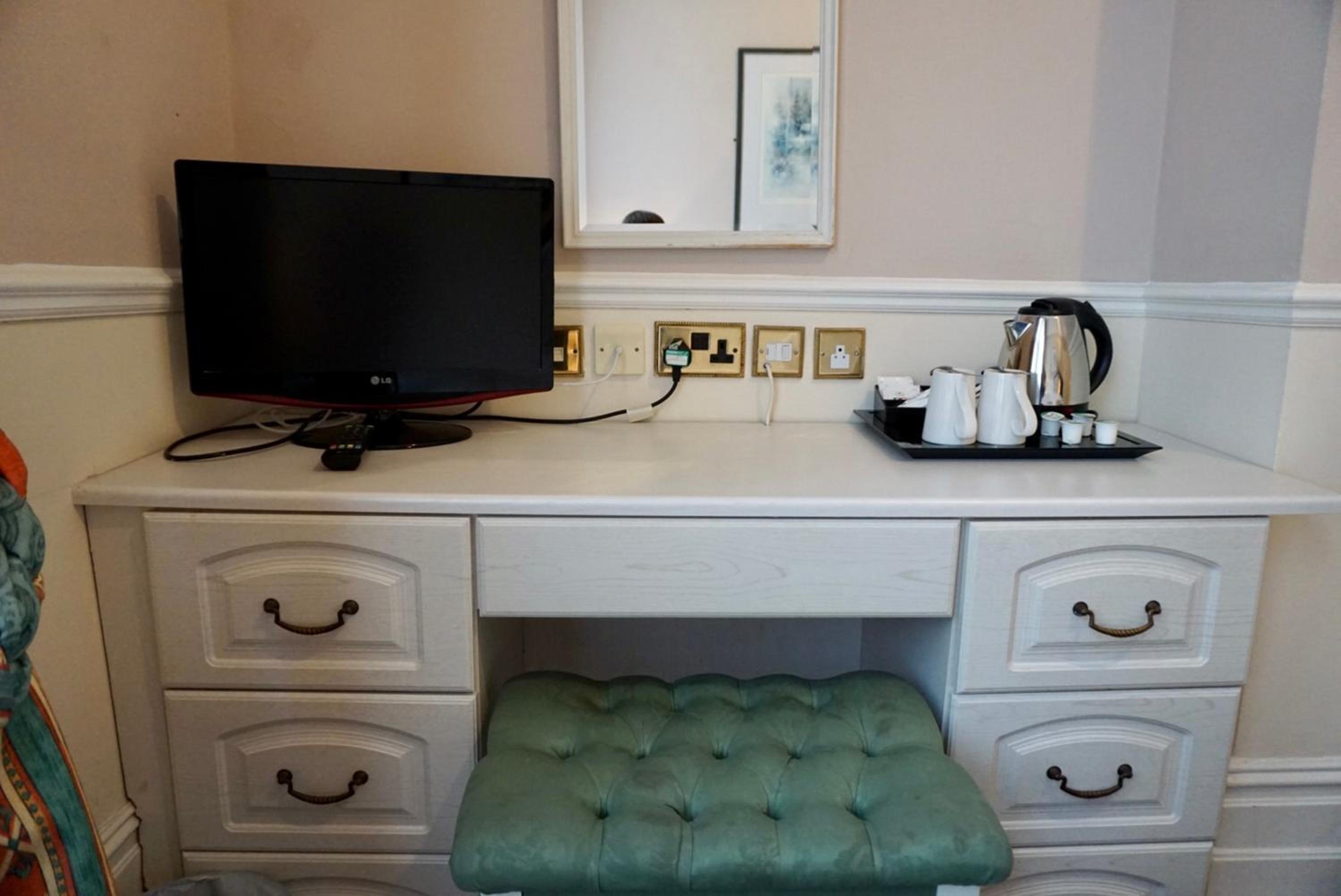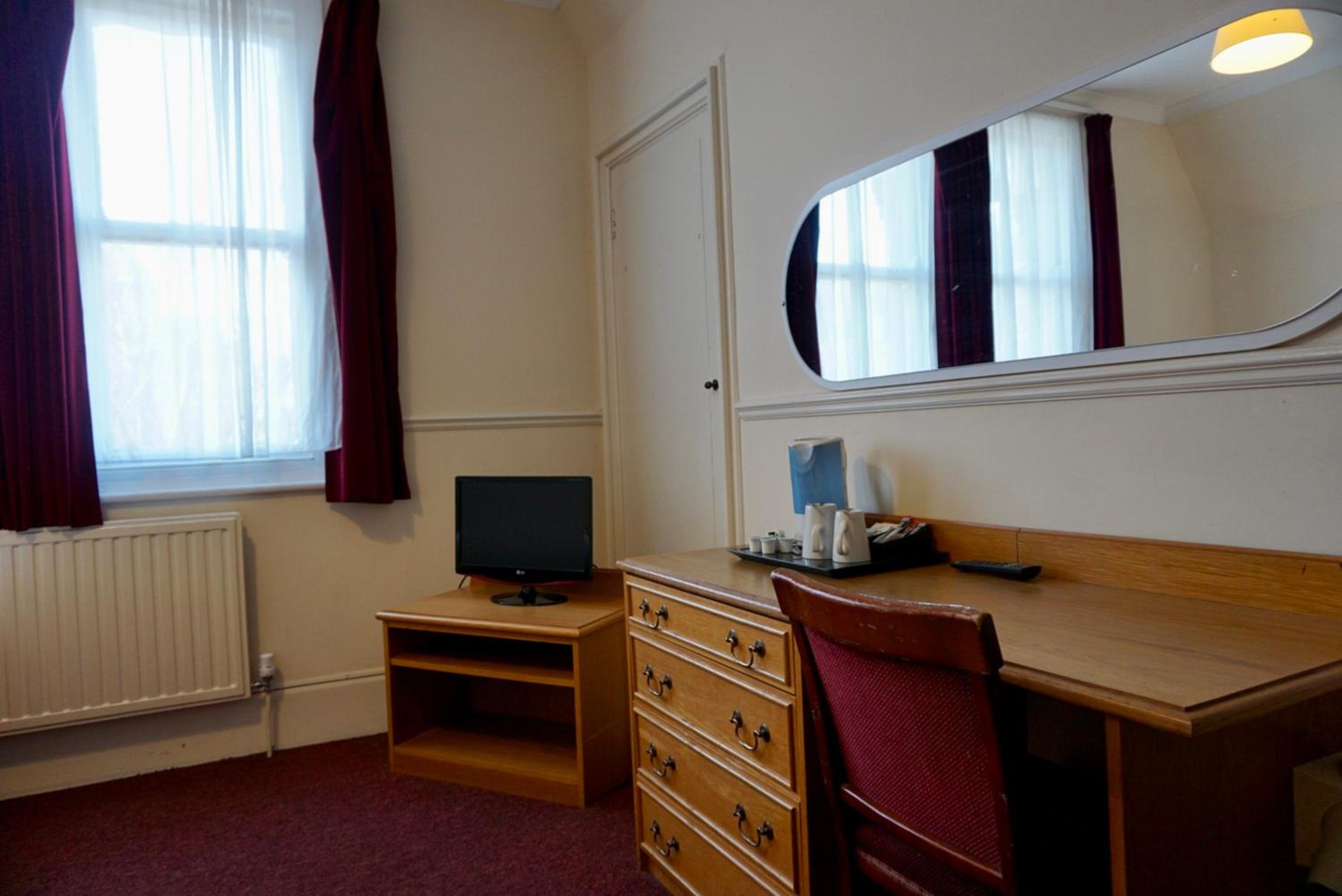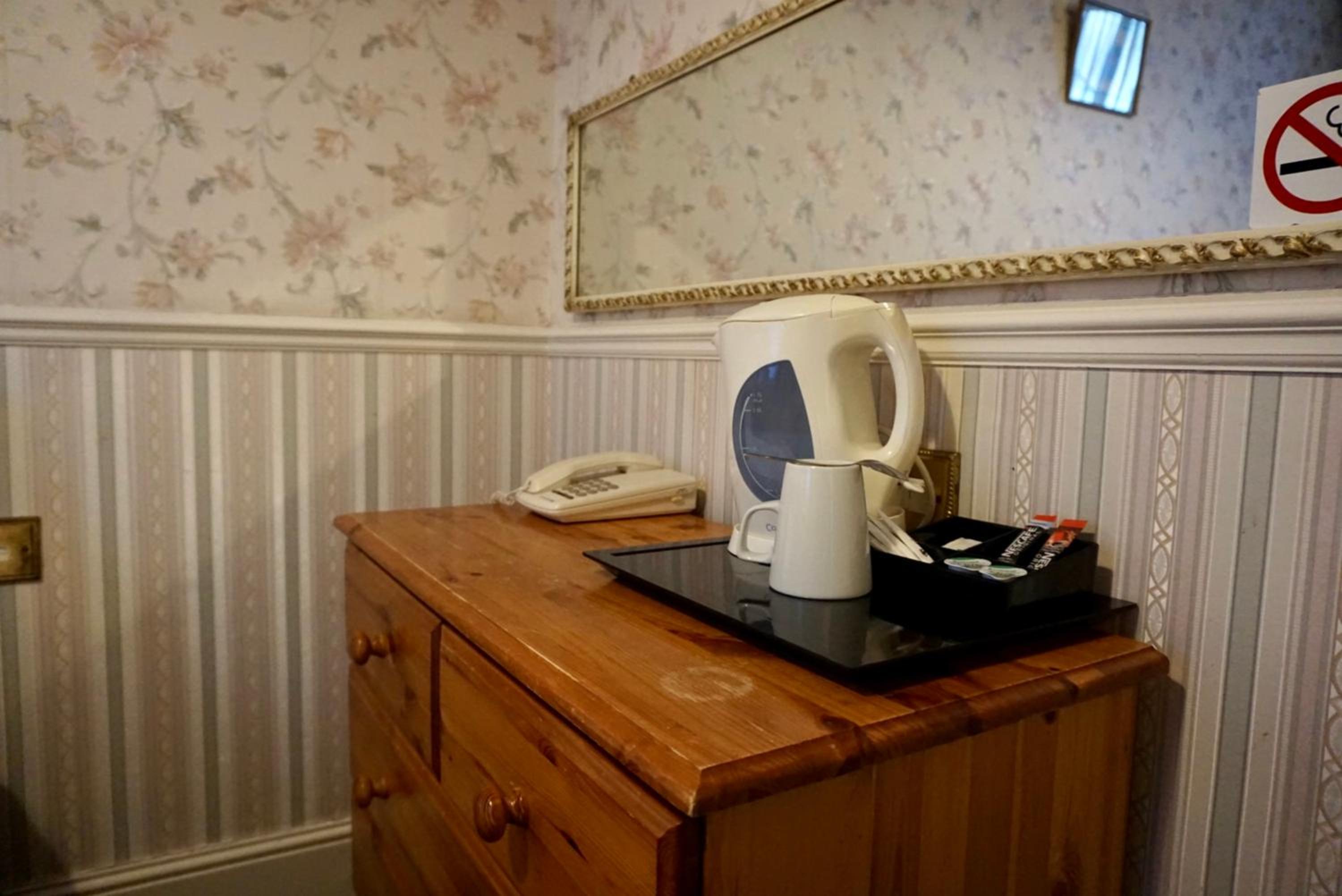 Dated and scruffy furniture, carpet and bathroom. An unpleasant smell in the room which I think came from old cloth surrounding the 4 poster bed. The worst mattress we have encountered, so painful were the springs that we slept on top of the duvet to protect ourselves. Heat in the bathroom was stifling as towel radiator would not turn off. Virtually no water from cold water tap in basin. Amusingly we were upgraded to this room which was the bridal suite, other rooms may be better.