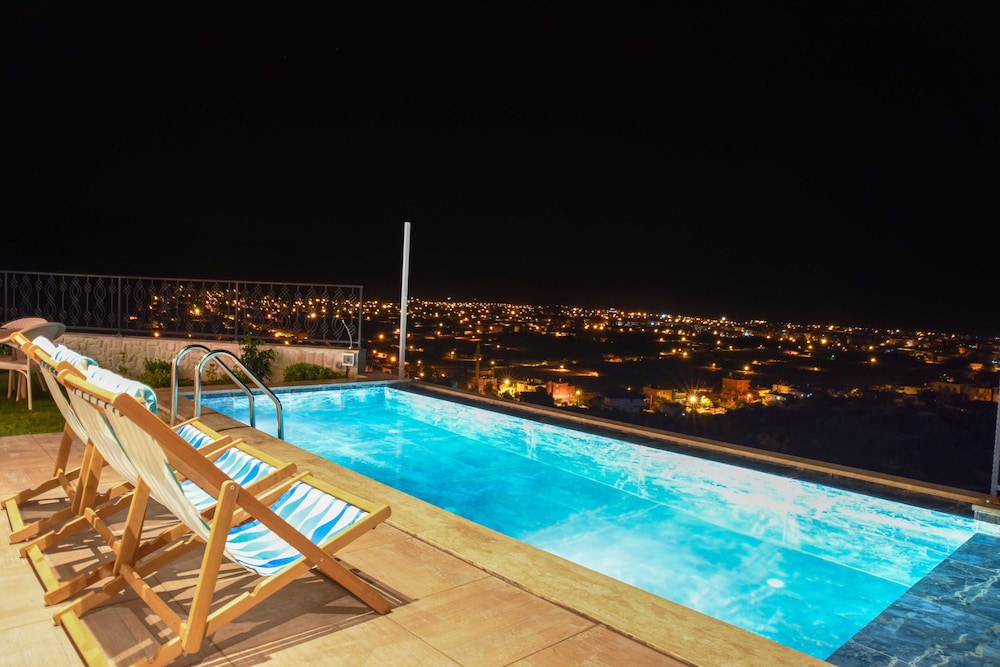 Unwind in one of our 5 air-conditioned rooms with private pools and fully equipped kitchens for a comfortable stay.
