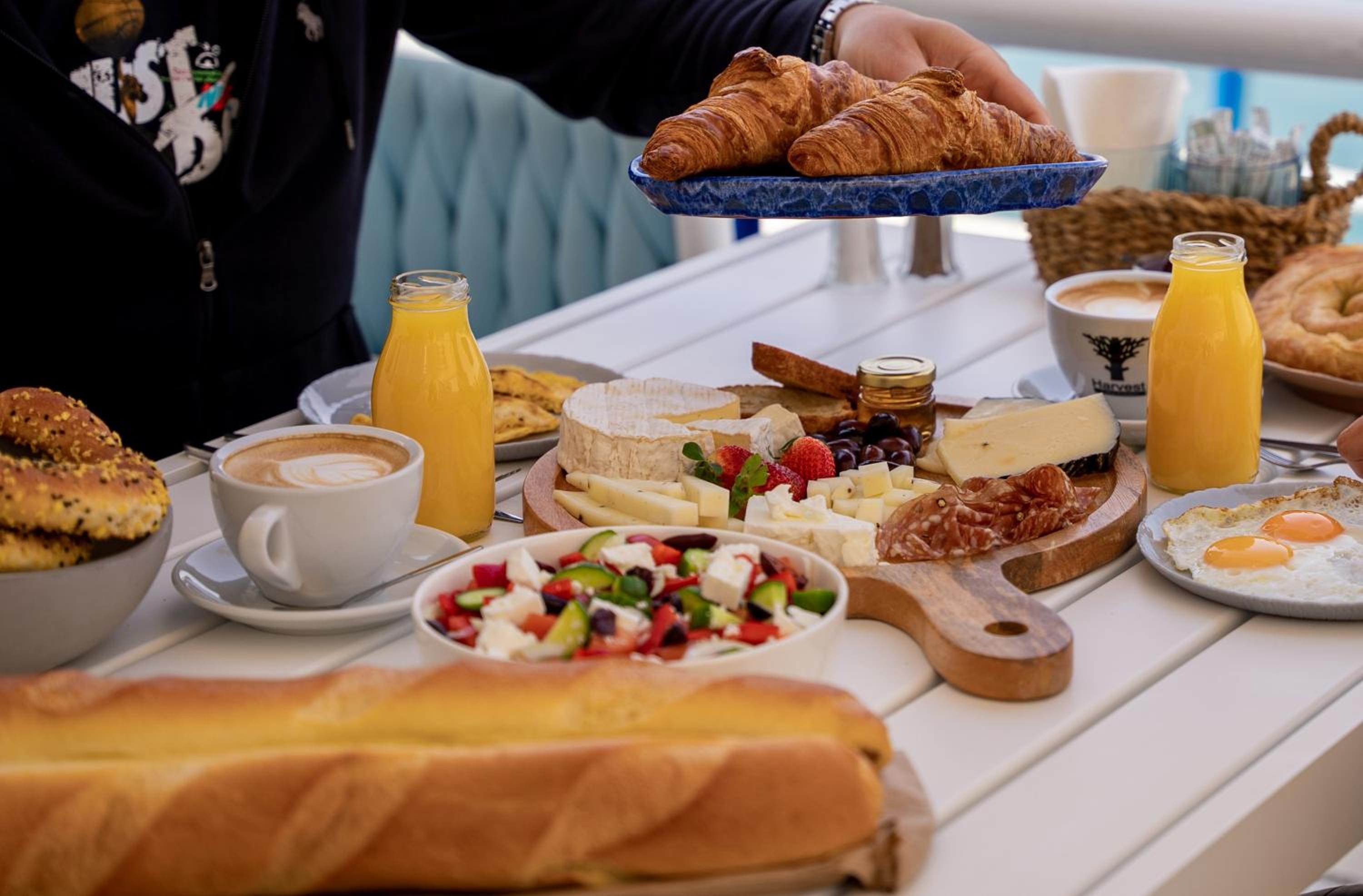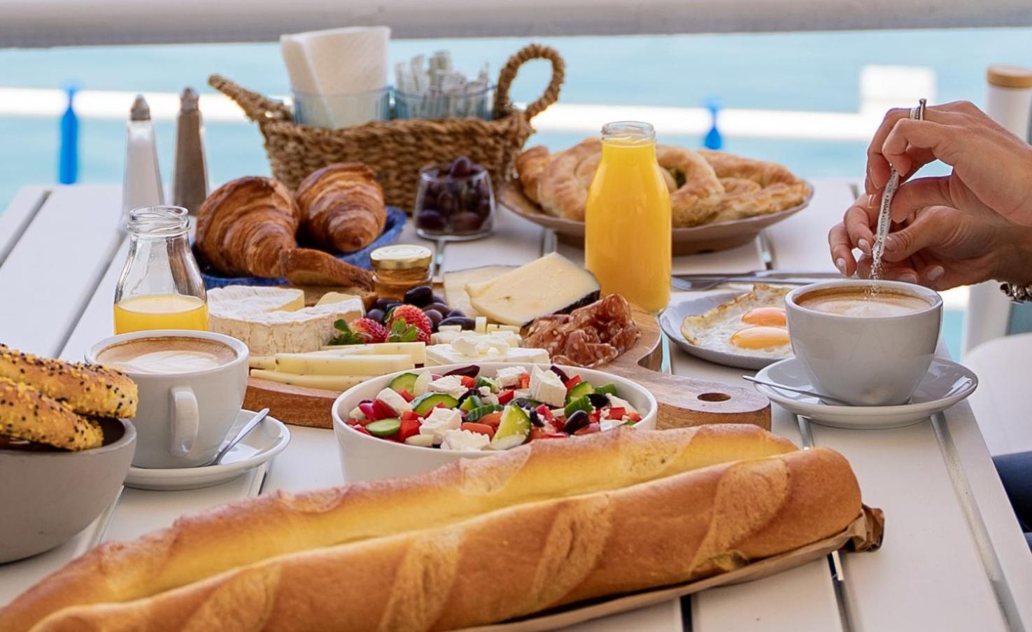 ארוחת בוקר עשירה וטעימה מול נוף עוצר נשימה.
