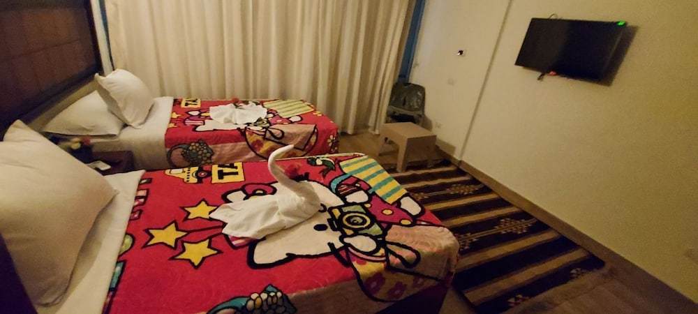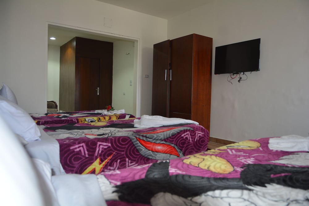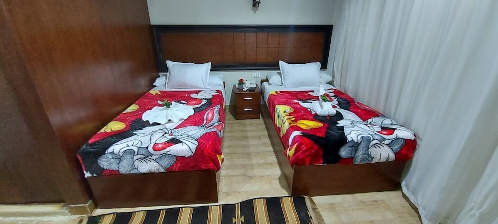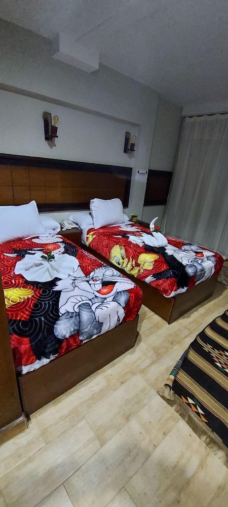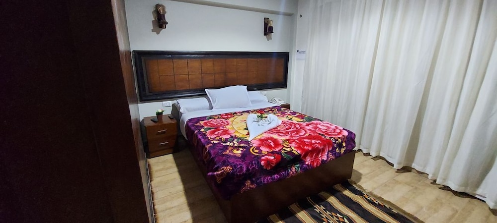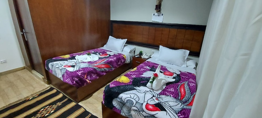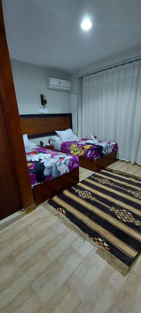 Localização ótima, embora fique no 10⁰ andar de um predio. Roupa de cama excelente. O quarto e o banheiro eram bem grandes. Havia armário, frigobar, água quente e ar condicionado. O café da manhã era fraco e limitado. A equipe era gentil. O prédio assusta um pouco, mas o hotel é acima da média para o que a gente encontra no Cairo com o mesmo preço. A região onde fica o hotel é bem movimentada e tem bom comércio. Fica perto do antigo museu do Cairo.