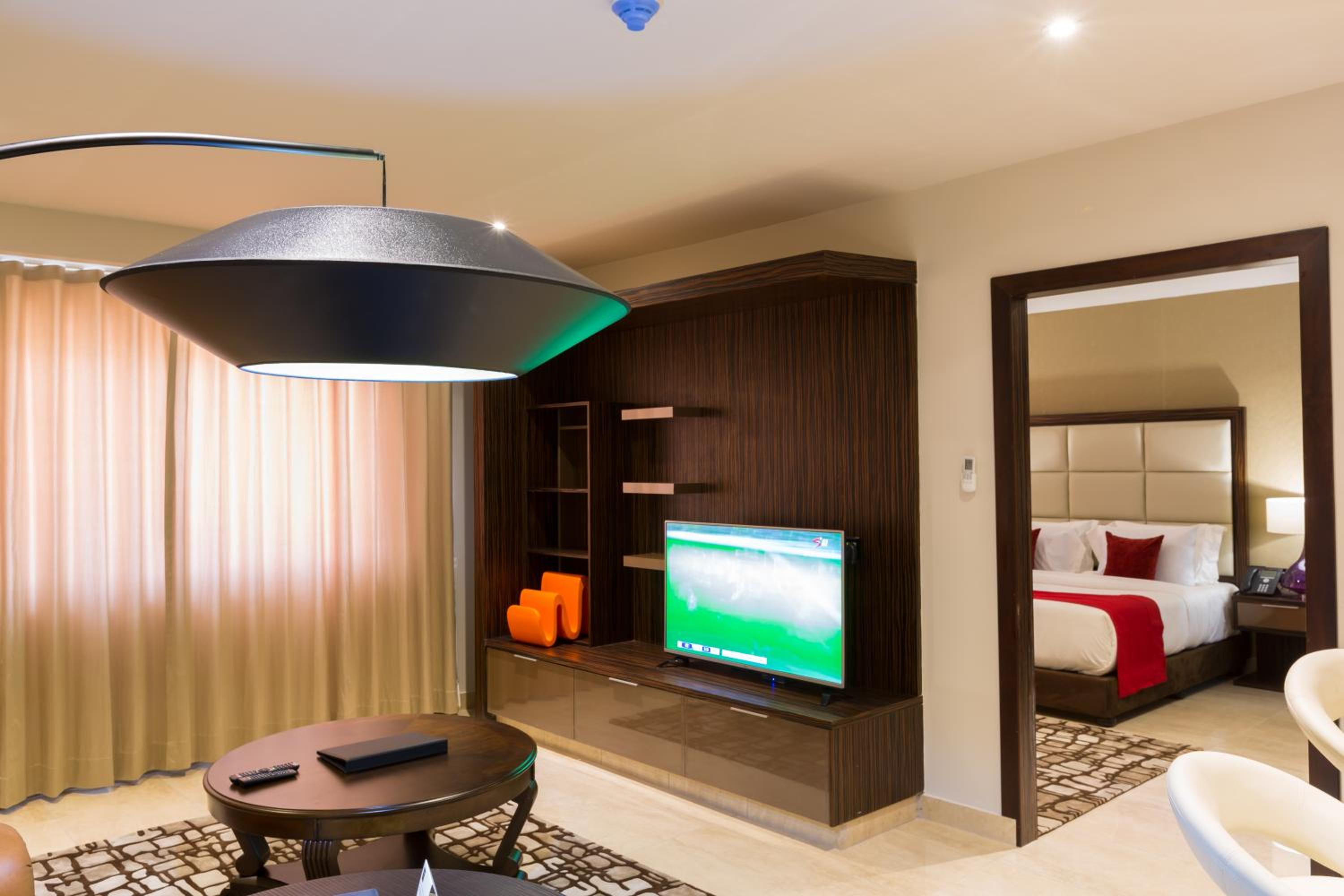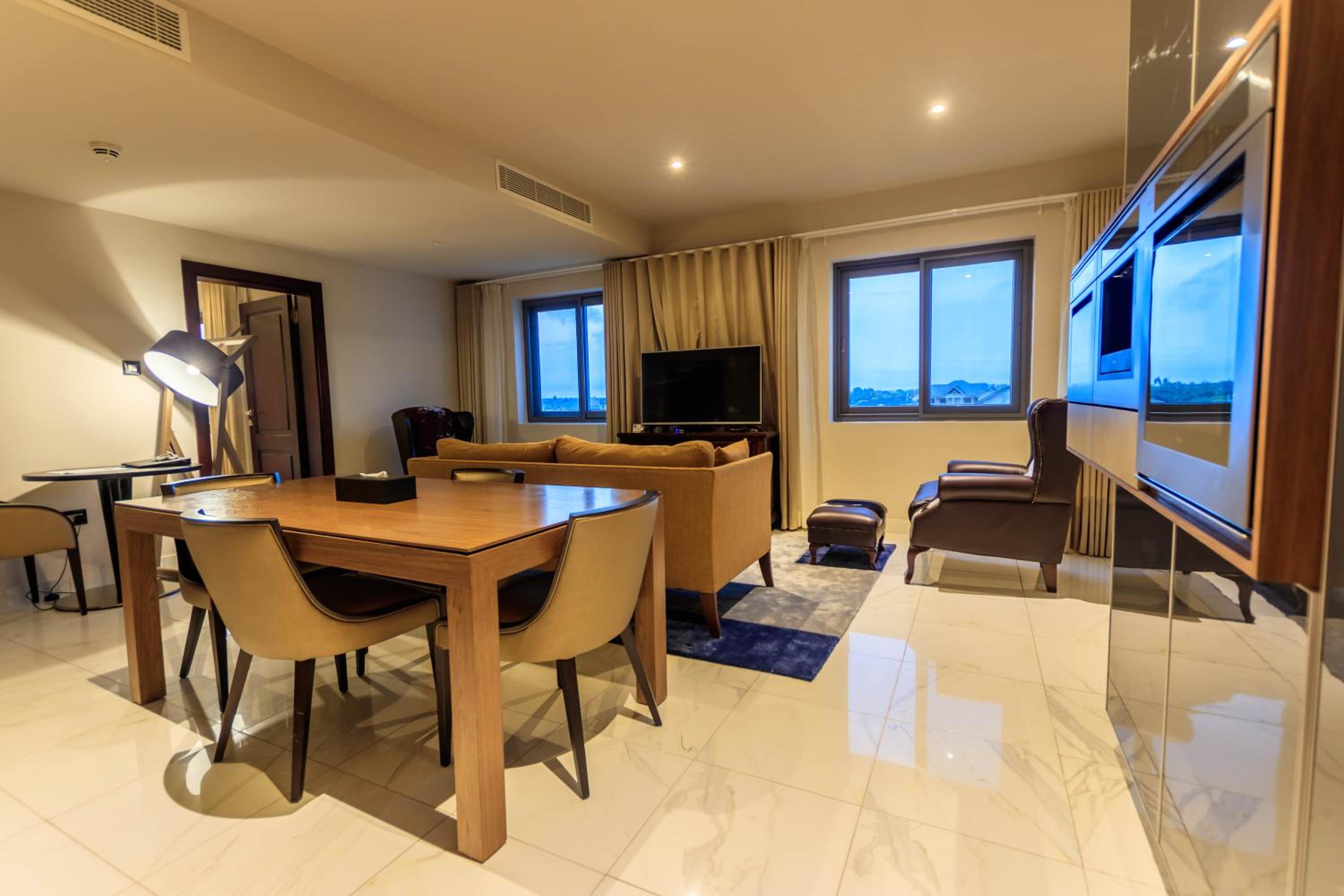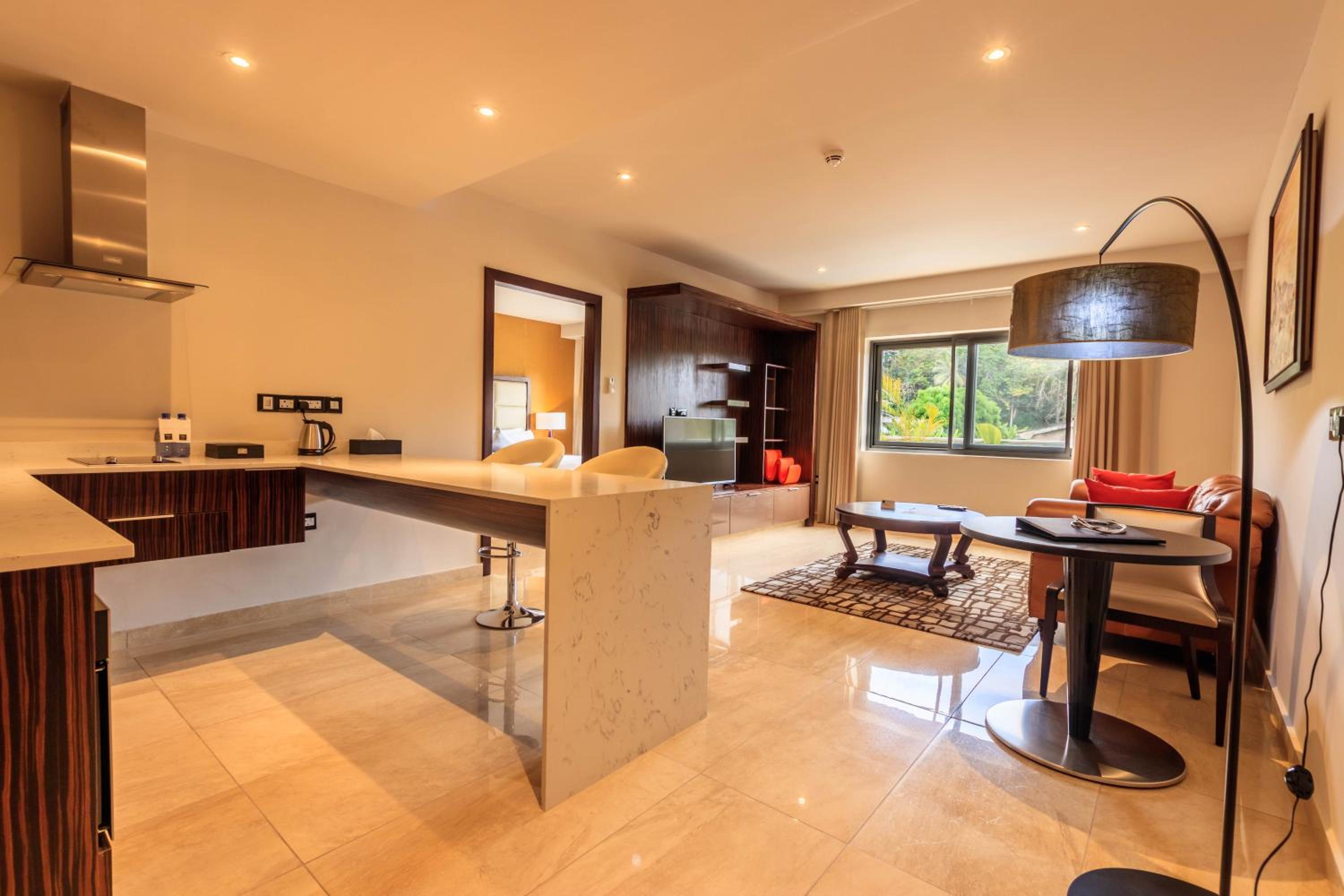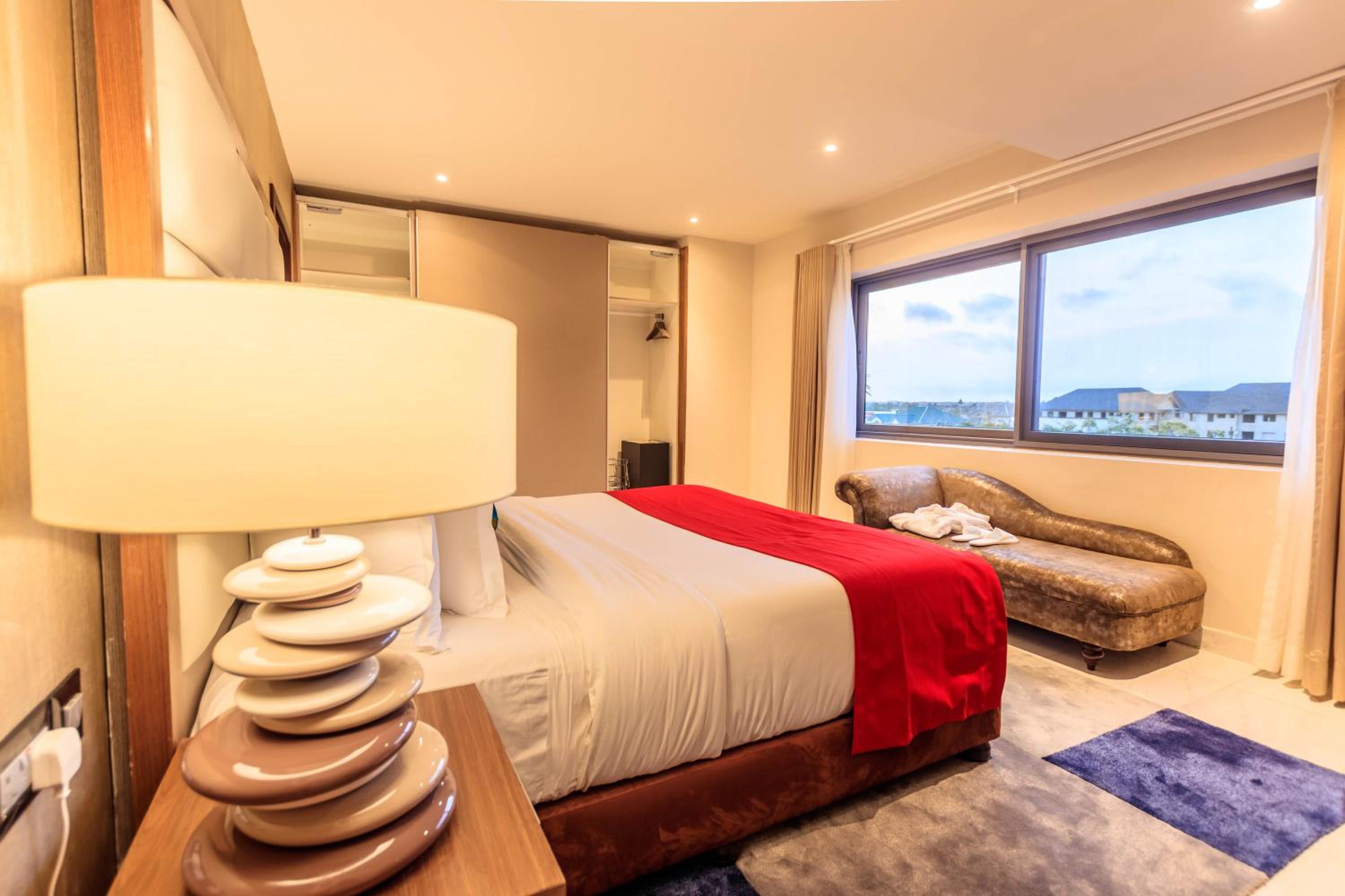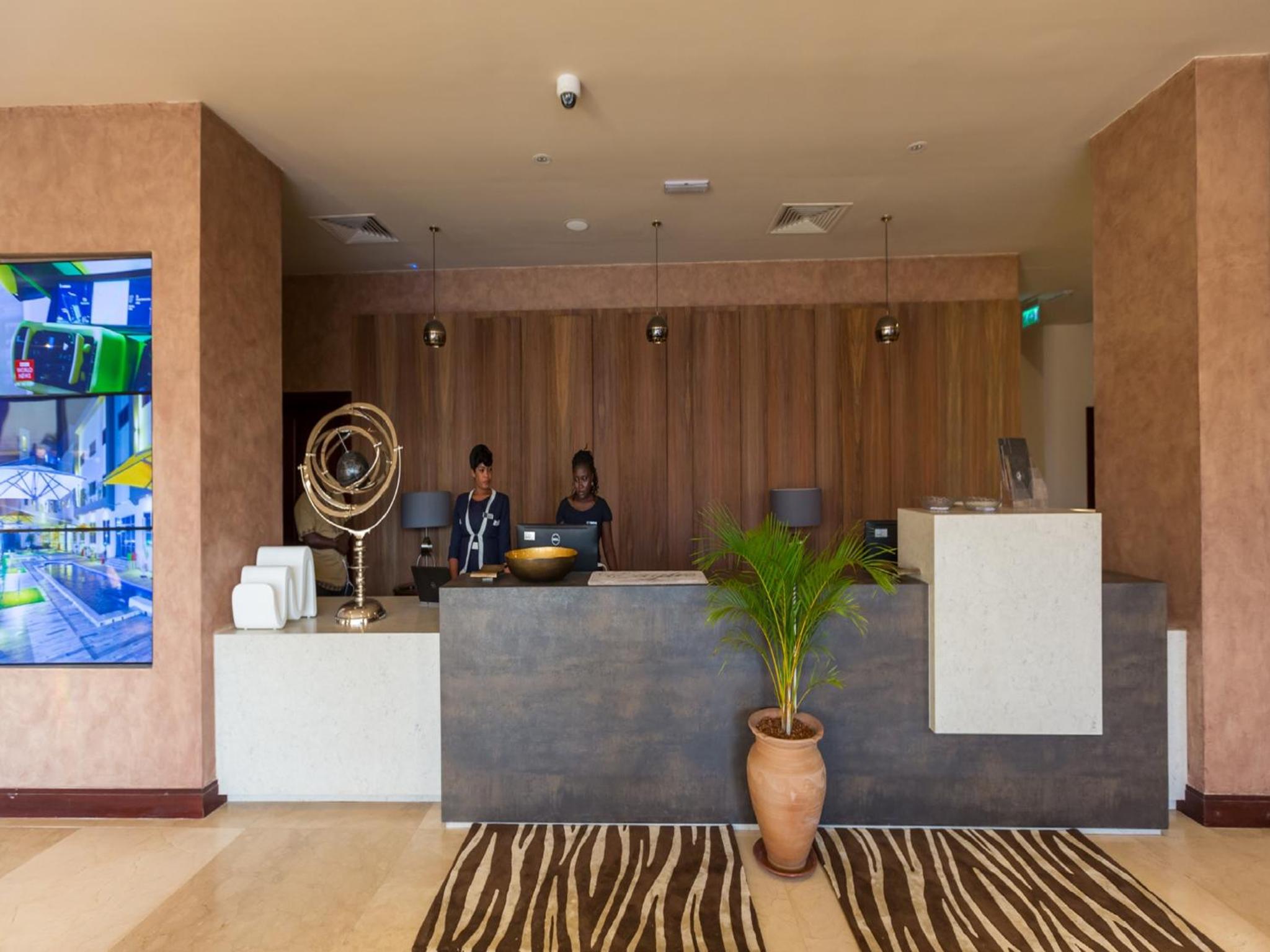 The Palms by Eagles in Takoradi offers a blend of comfort and style with free WiFi, an outdoor pool, and a fitness center. The rooms are elegantly furnished with modern amenities like flat-screen TVs, kitchenettes, and private bathrooms.