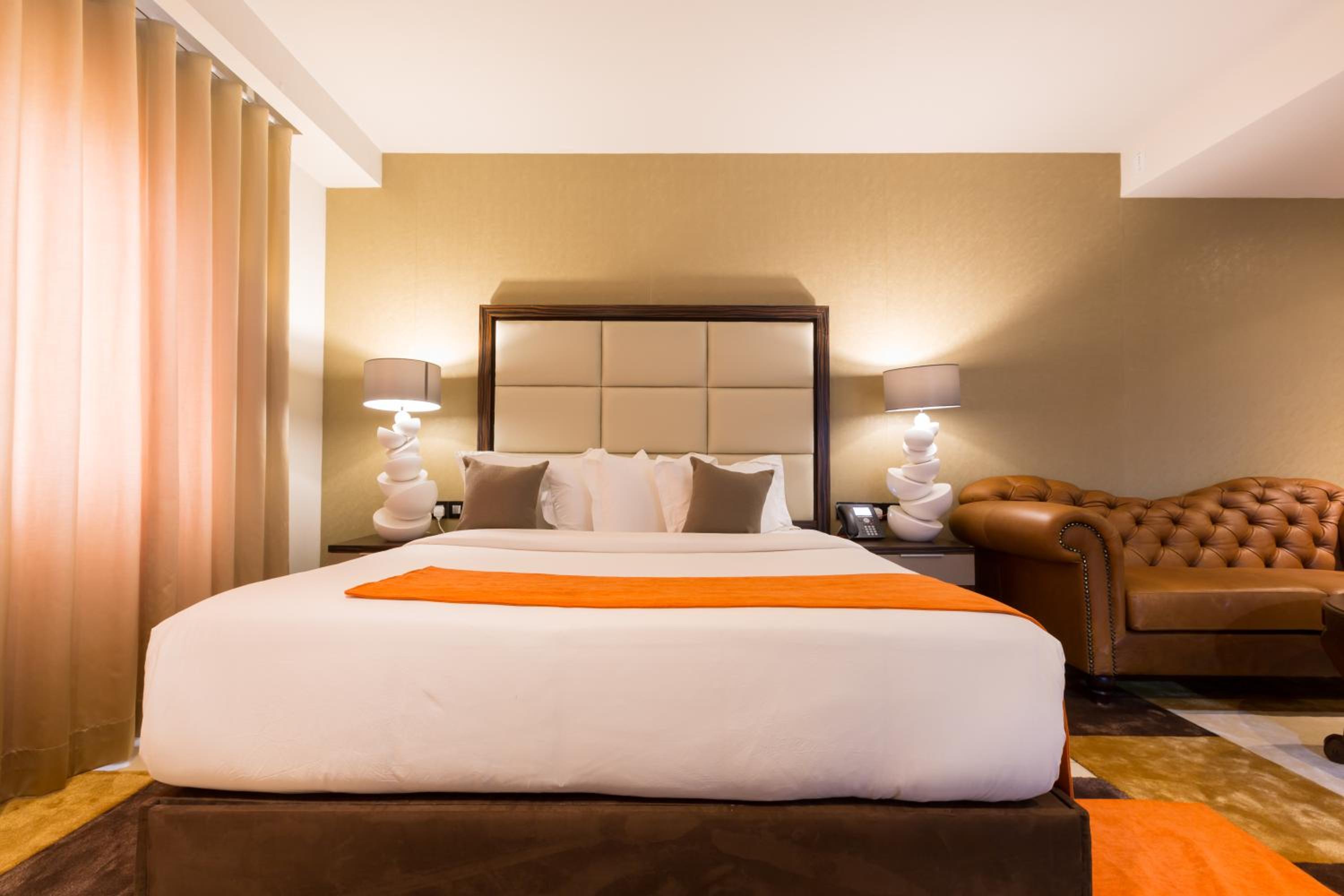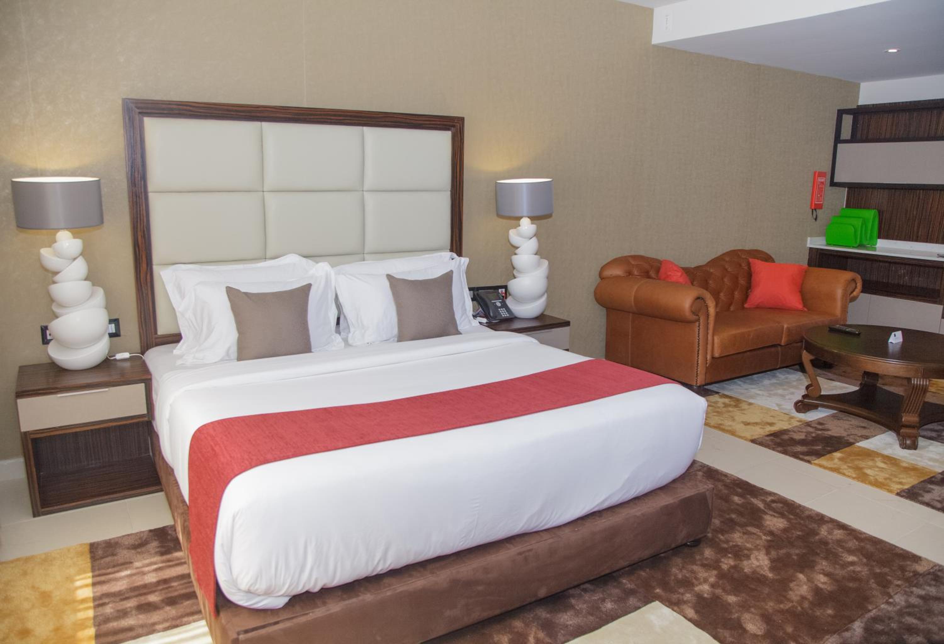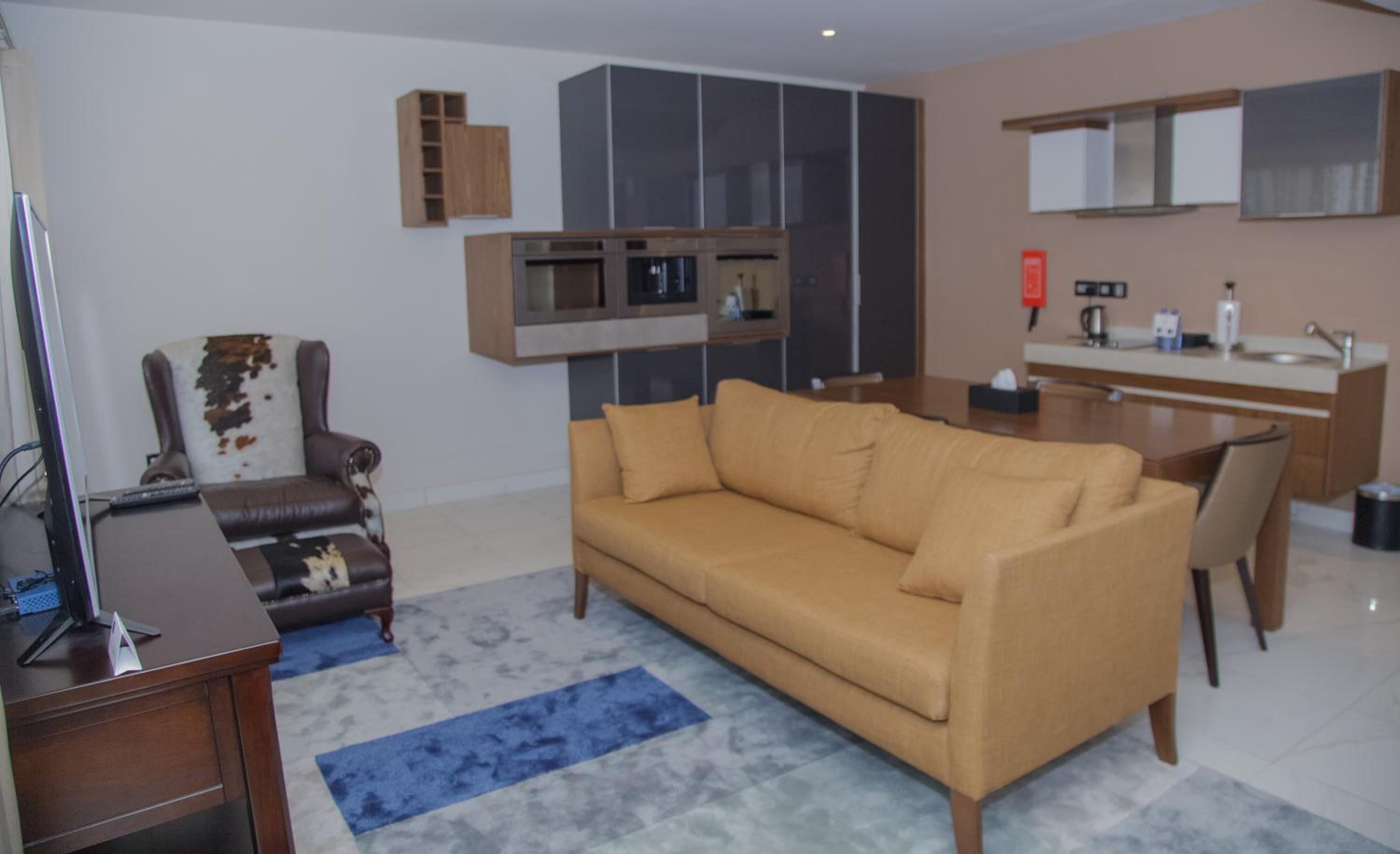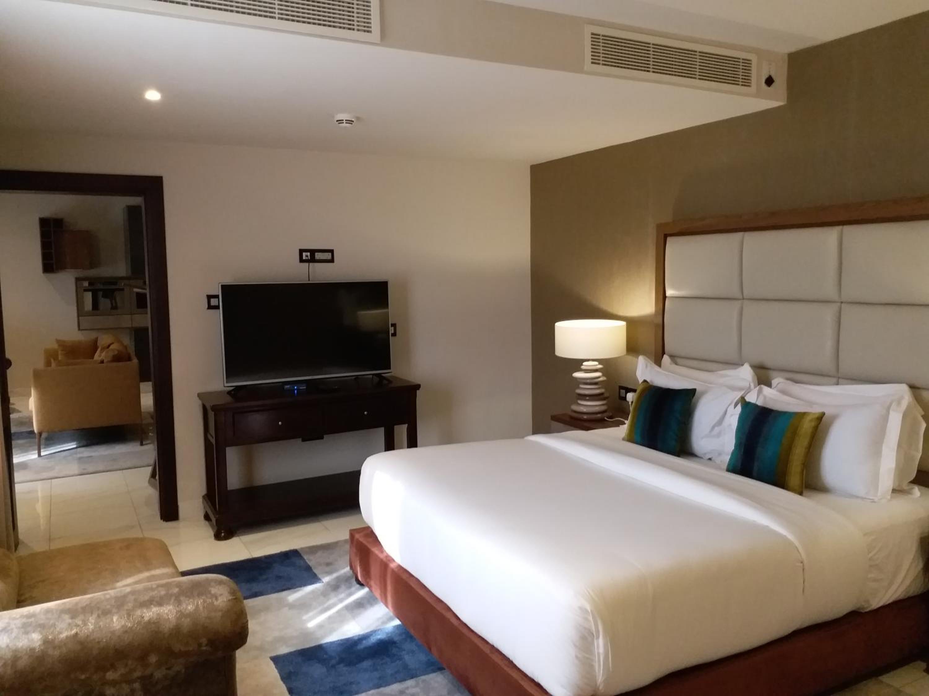 The Palms by Eagles in Takoradi offers a blend of comfort and style with free WiFi, an outdoor pool, and a fitness center. The rooms are elegantly furnished with modern amenities like flat-screen TVs, kitchenettes, and private bathrooms.