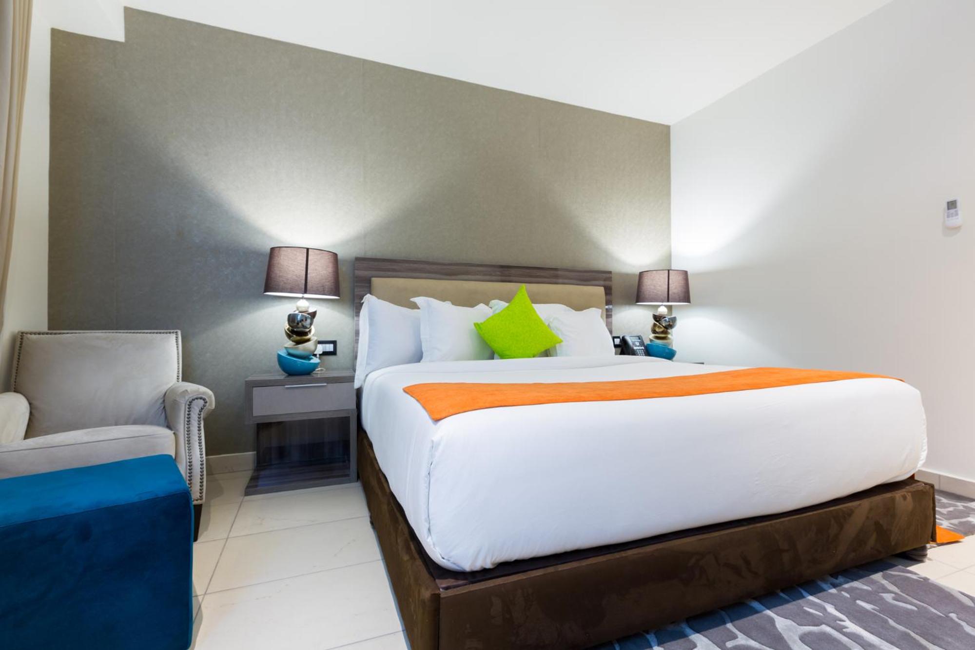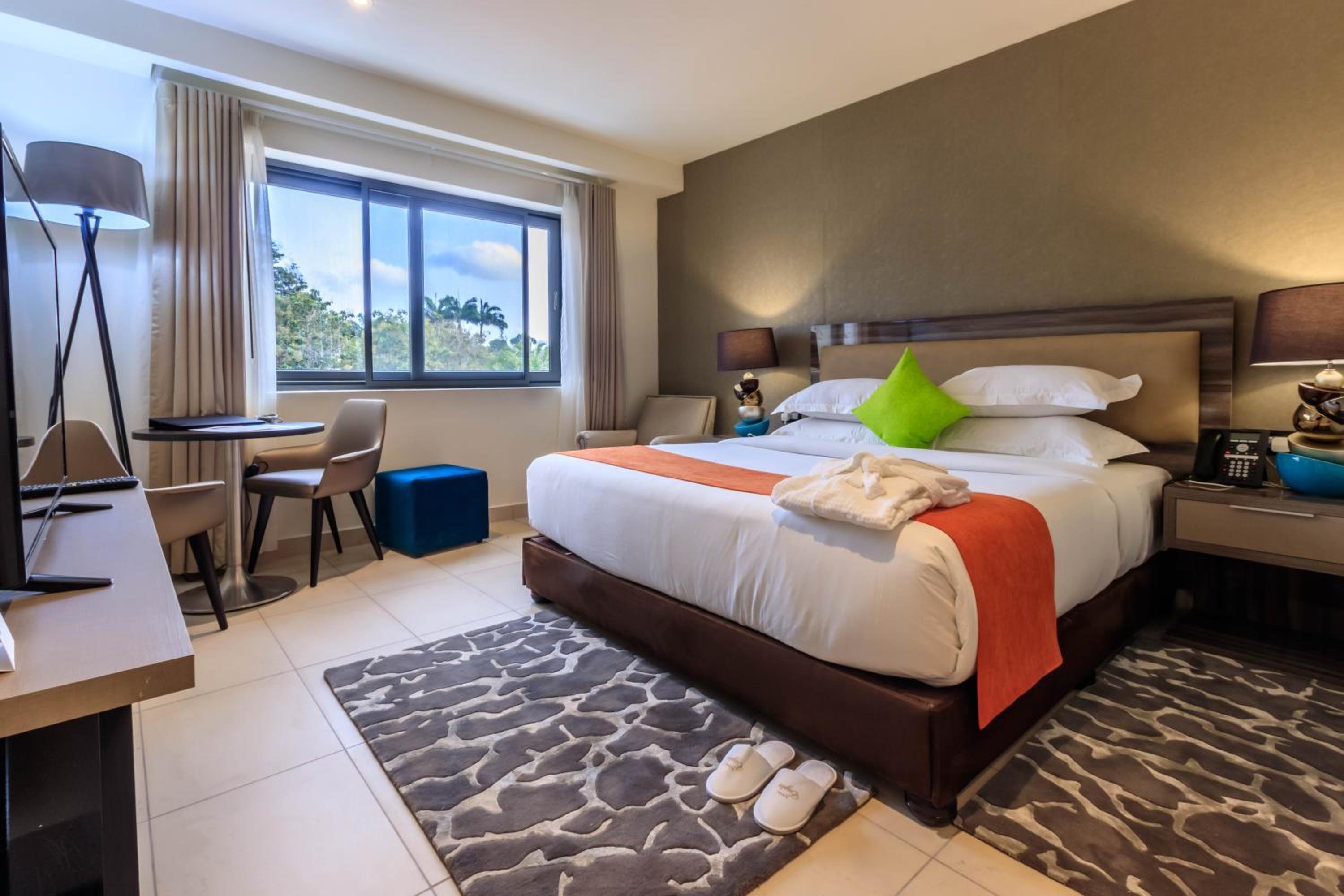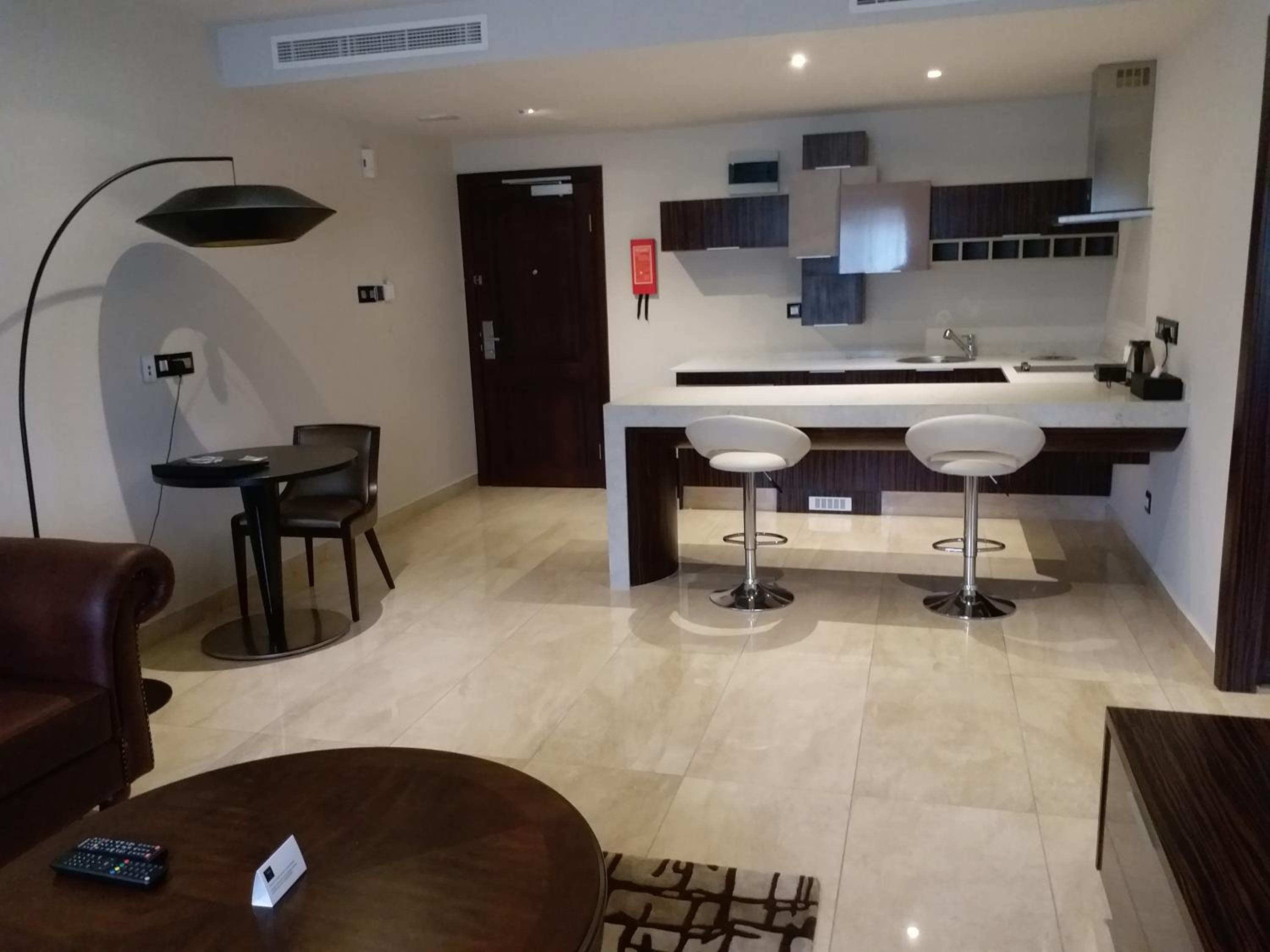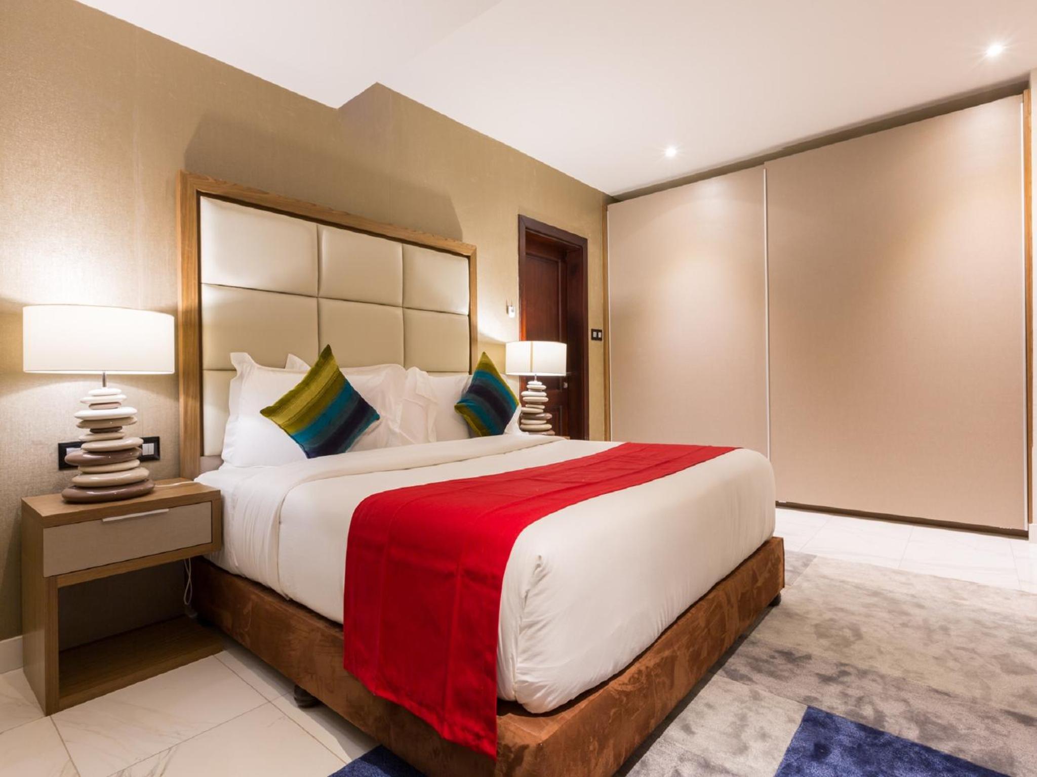 The Palms by Eagles in Takoradi offers a blend of comfort and style with free WiFi, an outdoor pool, and a fitness center. The rooms are elegantly furnished with modern amenities like flat-screen TVs, kitchenettes, and private bathrooms.