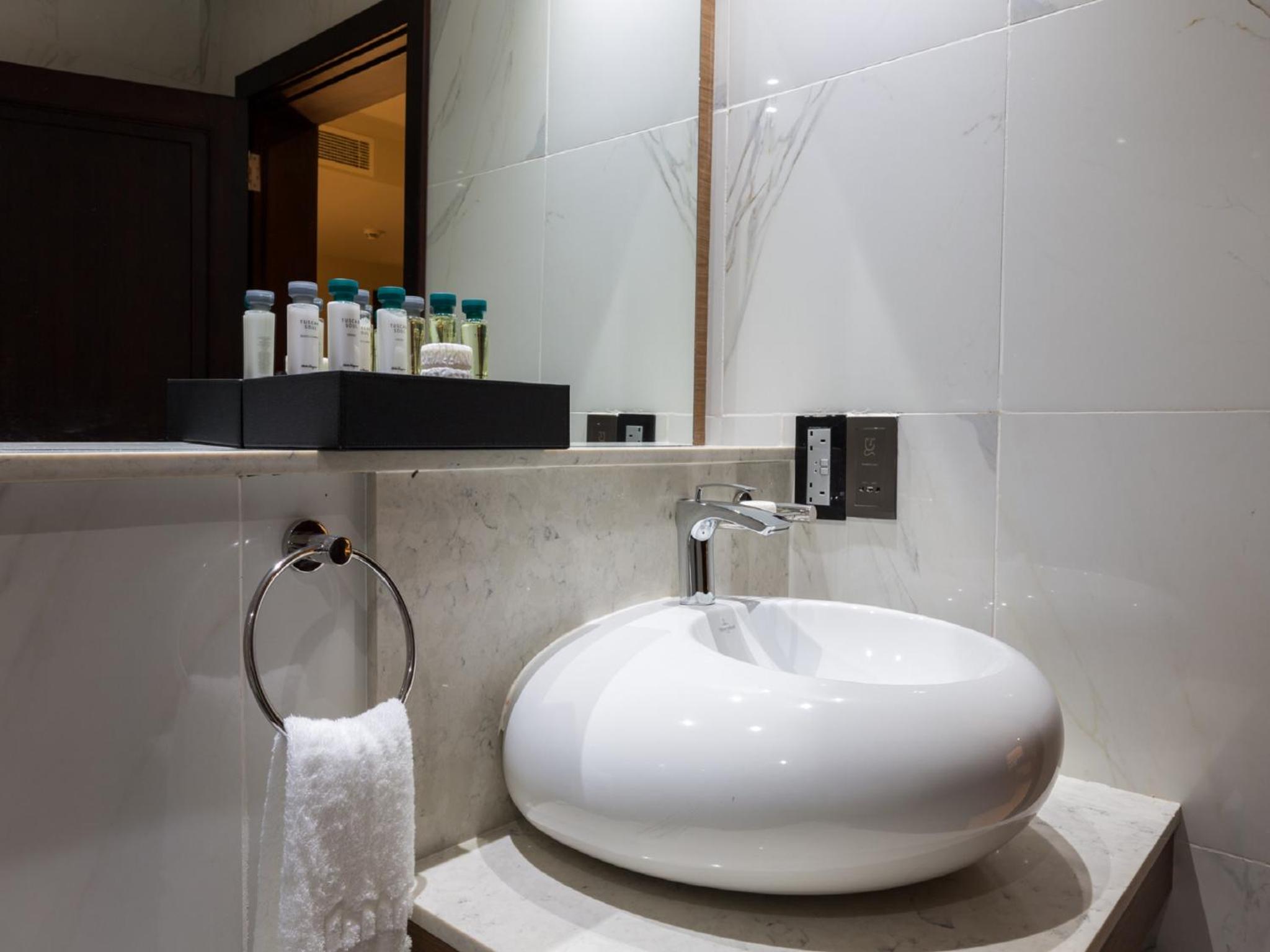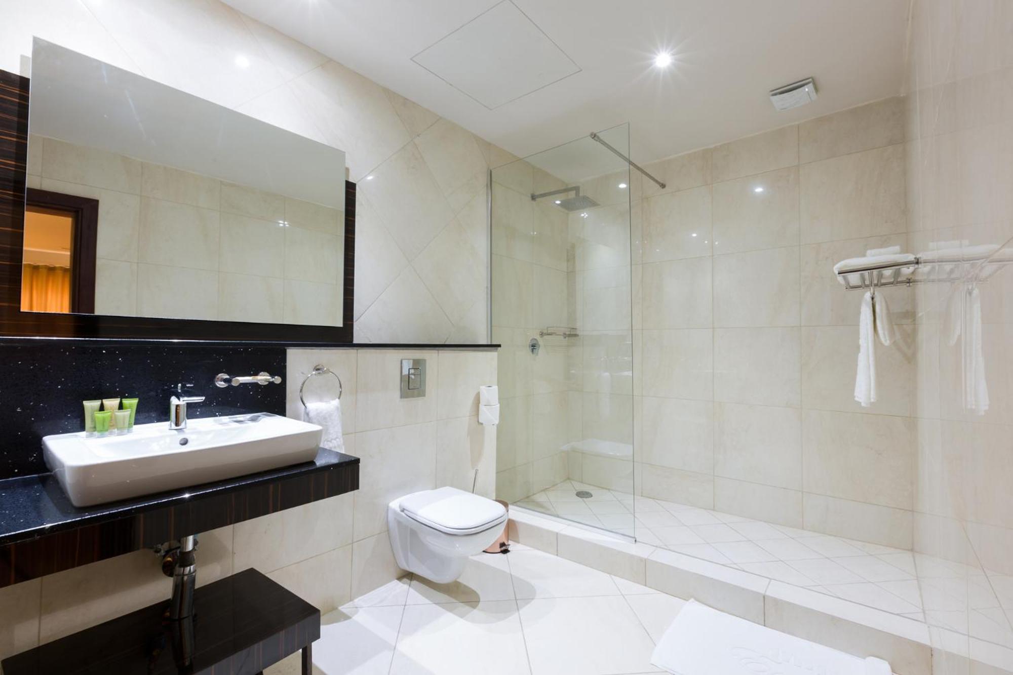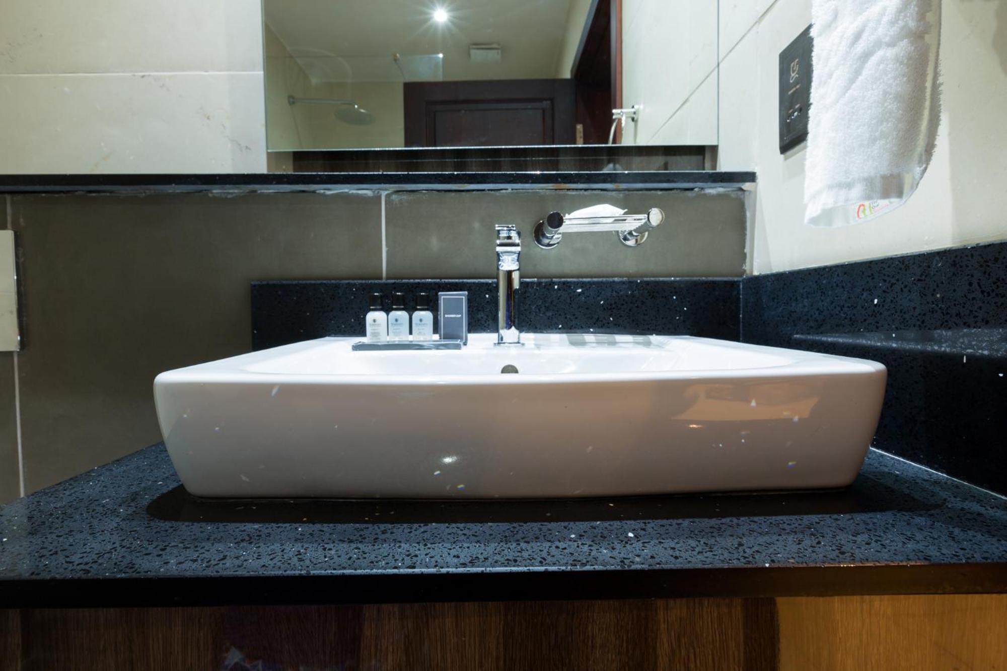 There was no shower cap and the hanging shower was defective so had to struggle to use it. Also, the shower gel system was not functioning so couldn't use it.