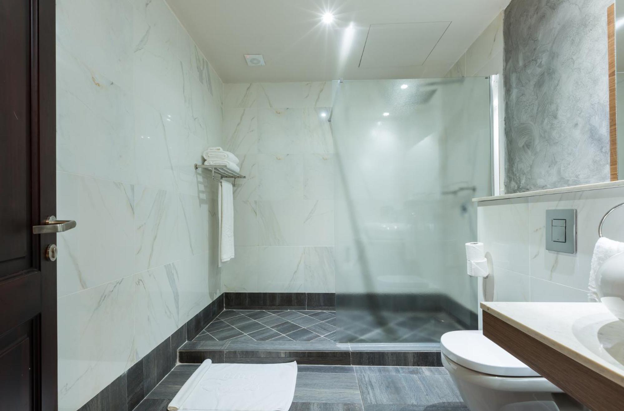 Bathroom has mildew on the bottom of the glasses in the shower and the bathroom has a lingering odor without even using it. Comparable to a bad motel in America. Light went out and took and hour and 20 minutes to come back on. I would never stay here again.