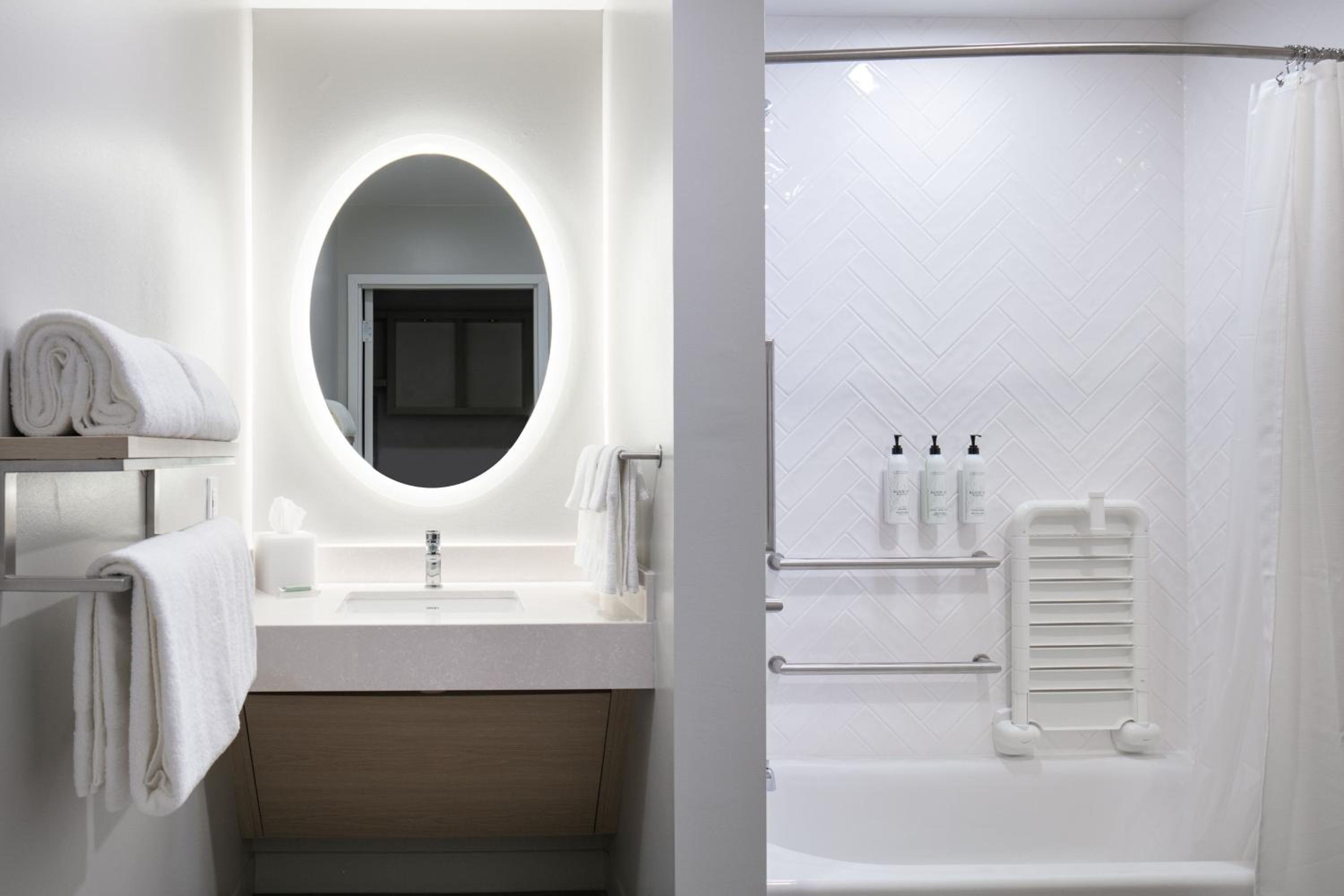 Lastly, the bathroom was subpar. I have never stayed in a Townplace suites that had bathtub/showers. They have all had really nice big walk-in showers. This tub was tiny and so slippery, you really had to be careful while you were taking a shower. There were no anti-slip strips in the tub at all. Also, there is either no exhaust fan at all, or ours didn't work. It was really uncomfortable trying to get ready in the bathroom after a shower as it was SO hot and humid.